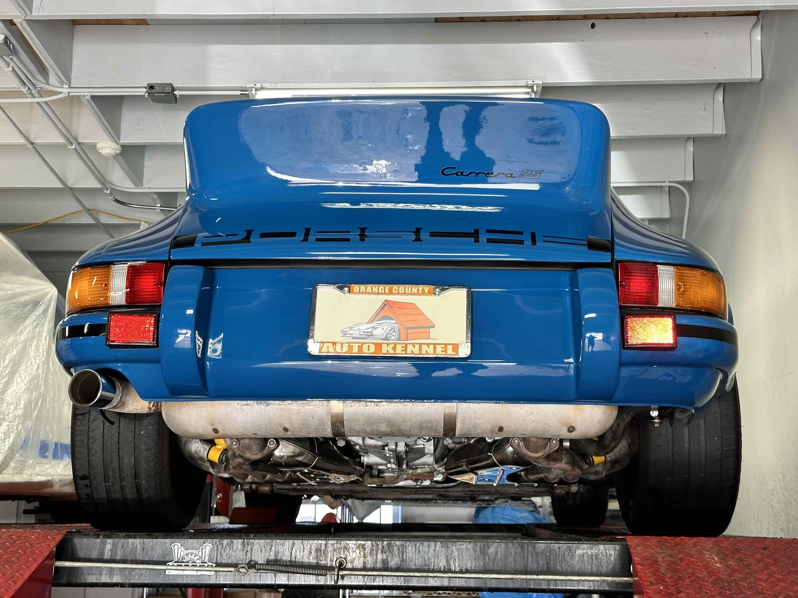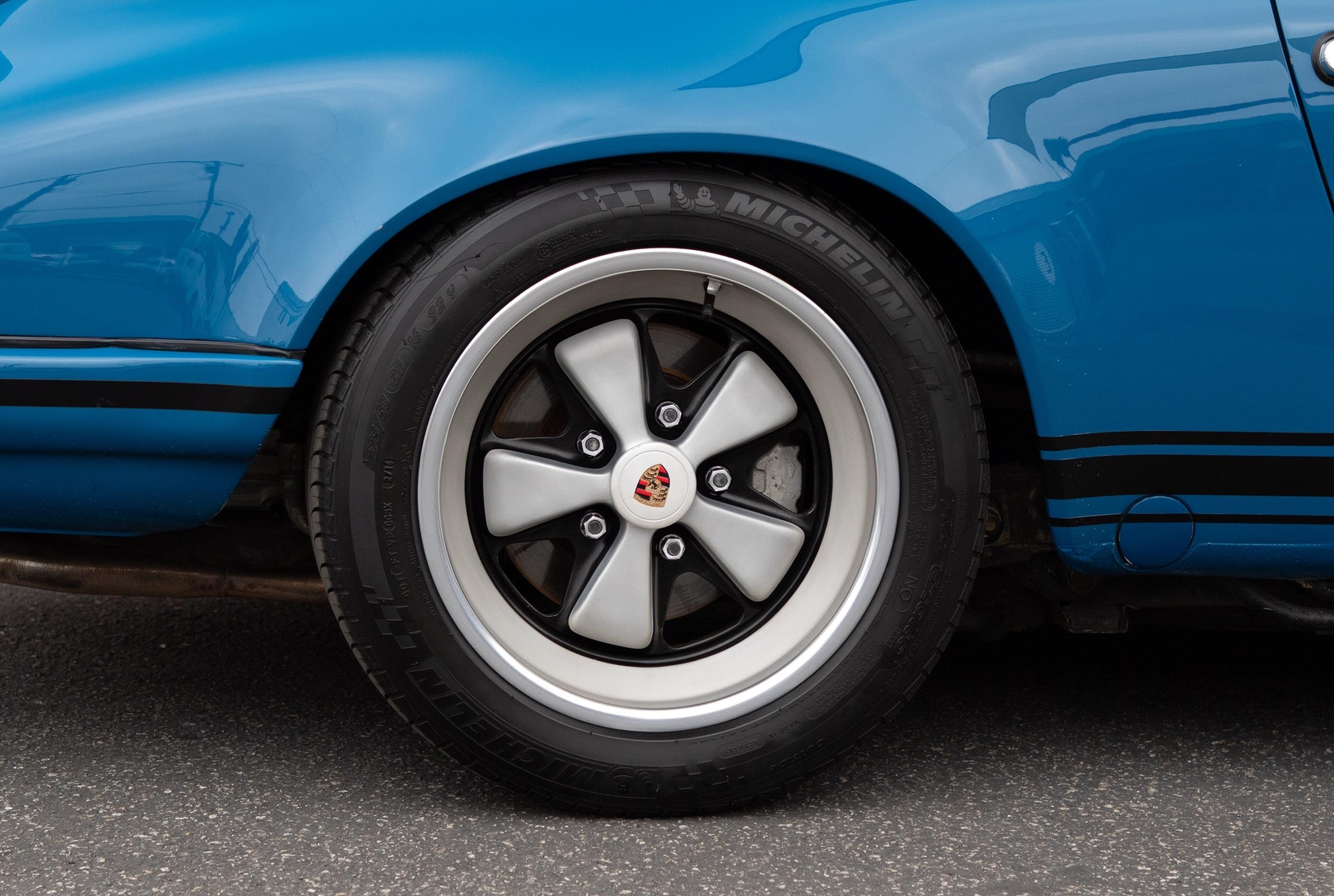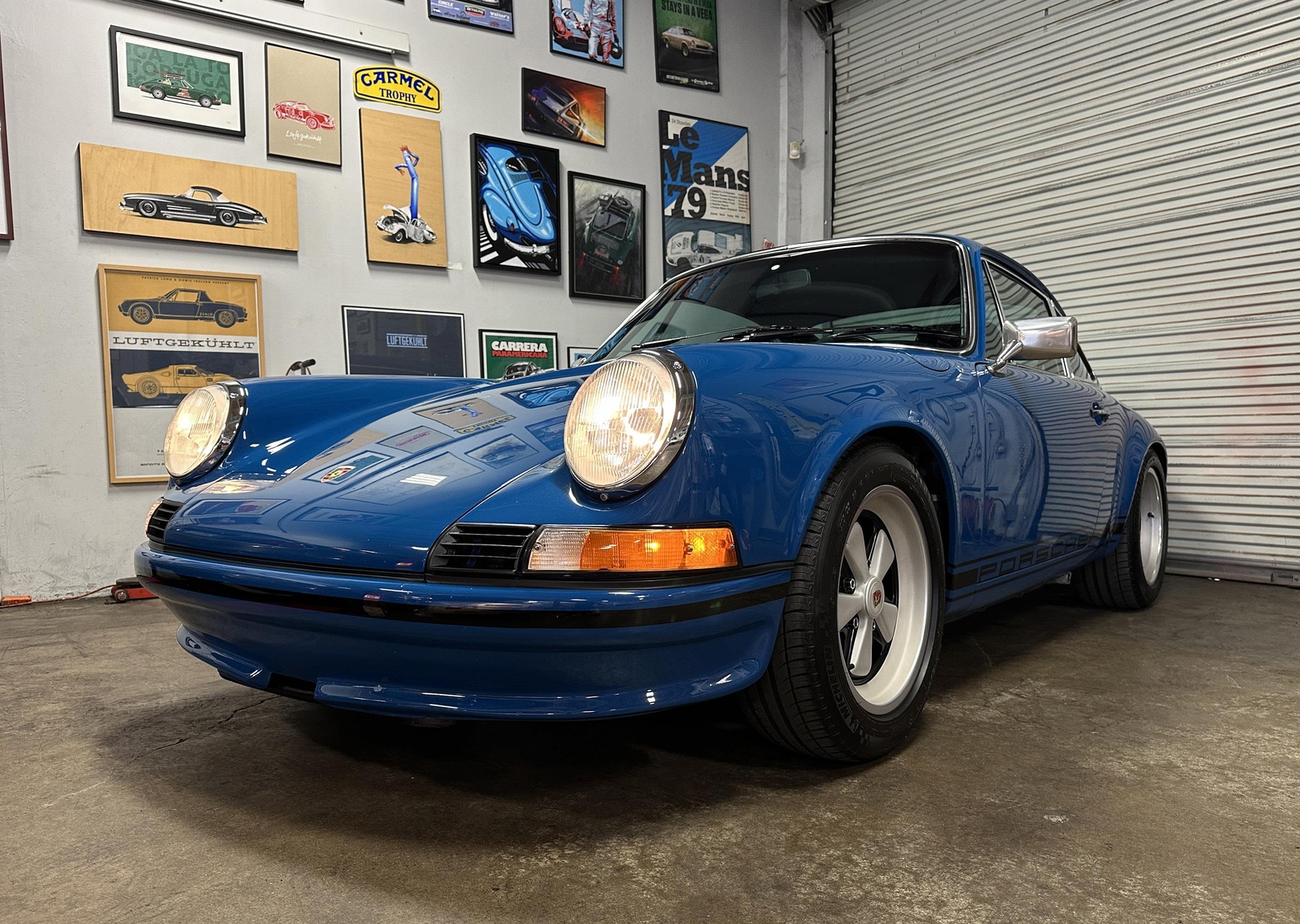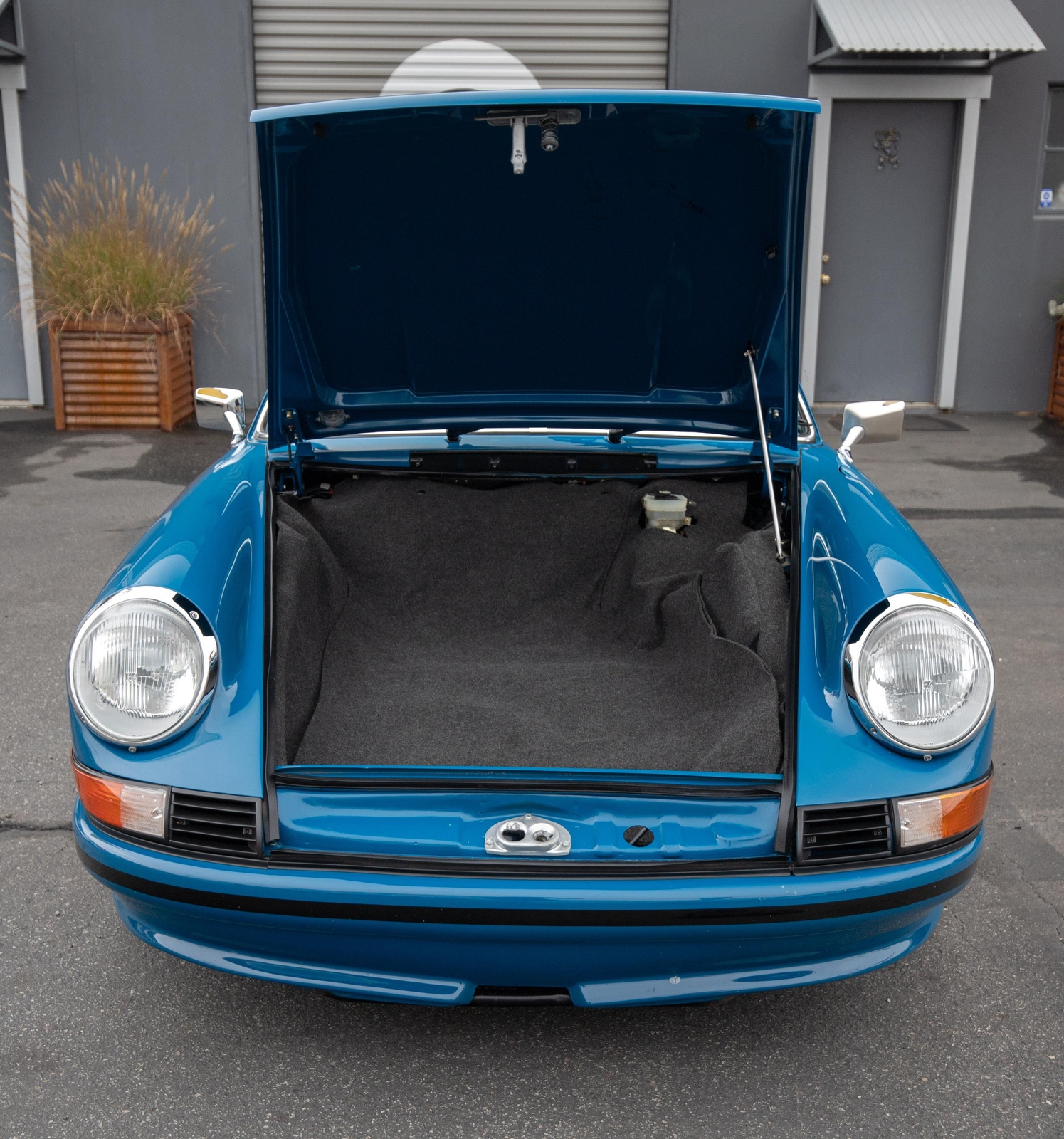 On March 4th, 2004, with 95,068 miles, Jack sold his 911 to Dave Bertrand from Brighton, Colorado. Dave enjoyed this 911 for 5-years and added an additional 18k miles. He had always wanted to build an RS conversion and was particularly interested in doing a backdated project. By 2009, the original black paint was showing some age so the long and fully documented endeavor began. He planned on using the stock drivetrain especially since he had just rebuilt the original 915 transmission. Also, the suspension was recently refurbished and a completely new factory wiring harness was installed (over $7,000 in 2005 dollars). The main focus was the steel backdate body. A year later, the project was completed in the Porsche factory color Oslo Blue. The work was done by one of the top shops in Denver. Dave reassembled the car on his own as a project (fully documented on Pelican threads). The car was finished with an RS look complete with ducktail and front/rear fiberglass RS bumpers from Getty Design. The front conversion was done with correct factory steel parts (hood and front fenders) to retain that original/correct look. The interior was still fairly stock as were the mechanicals.