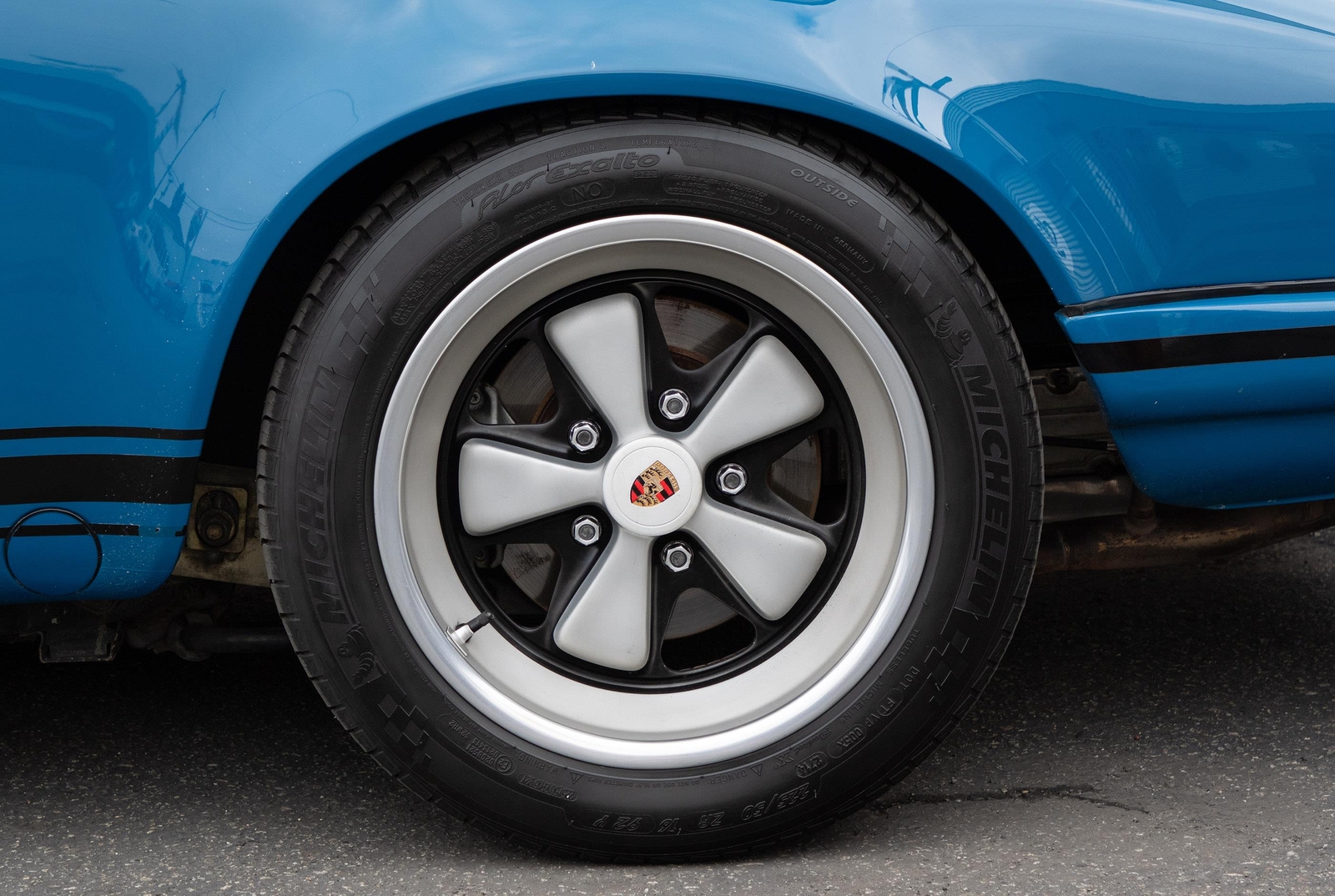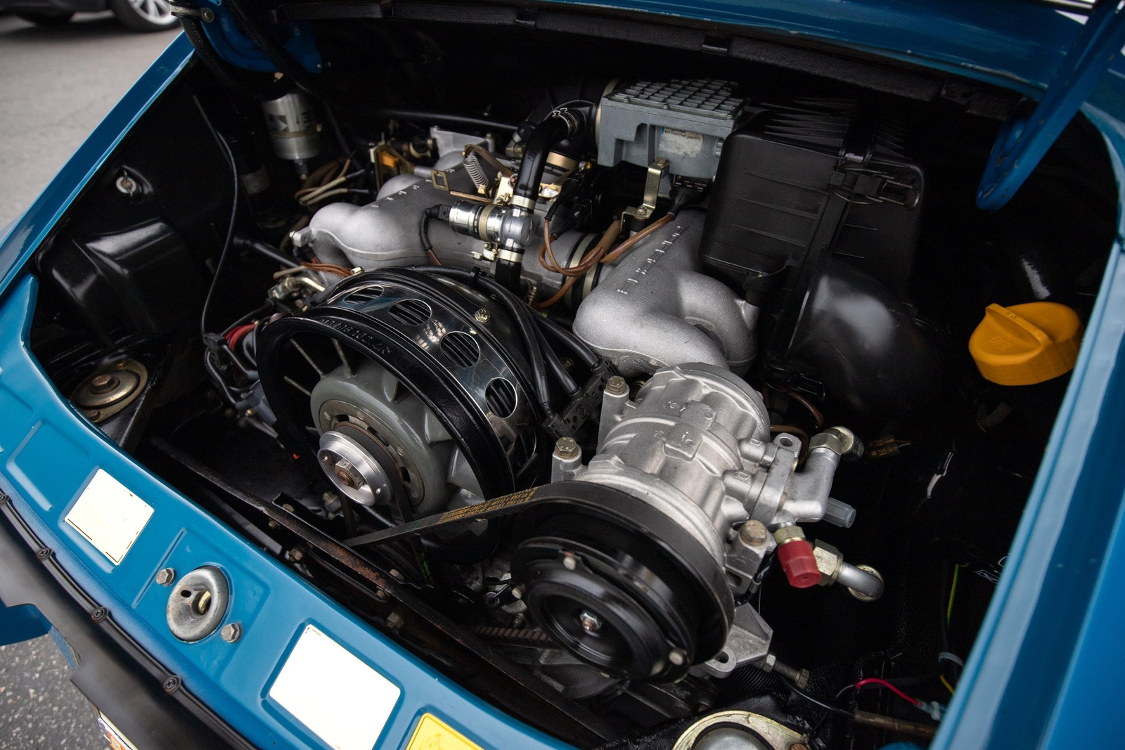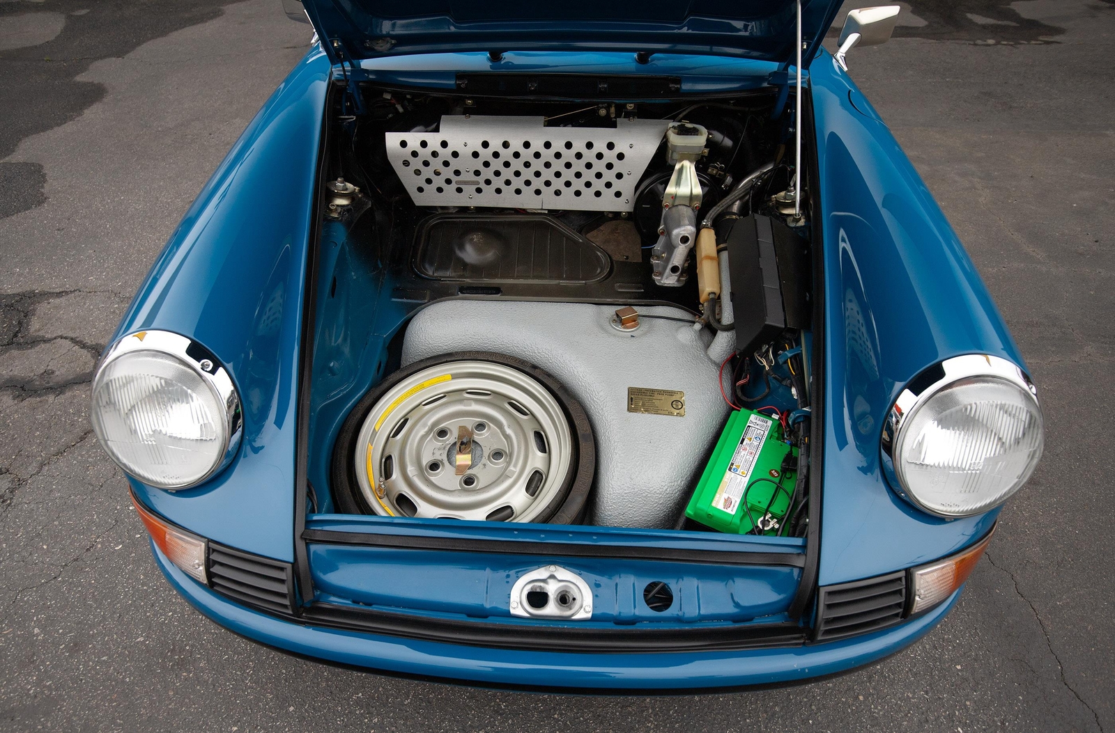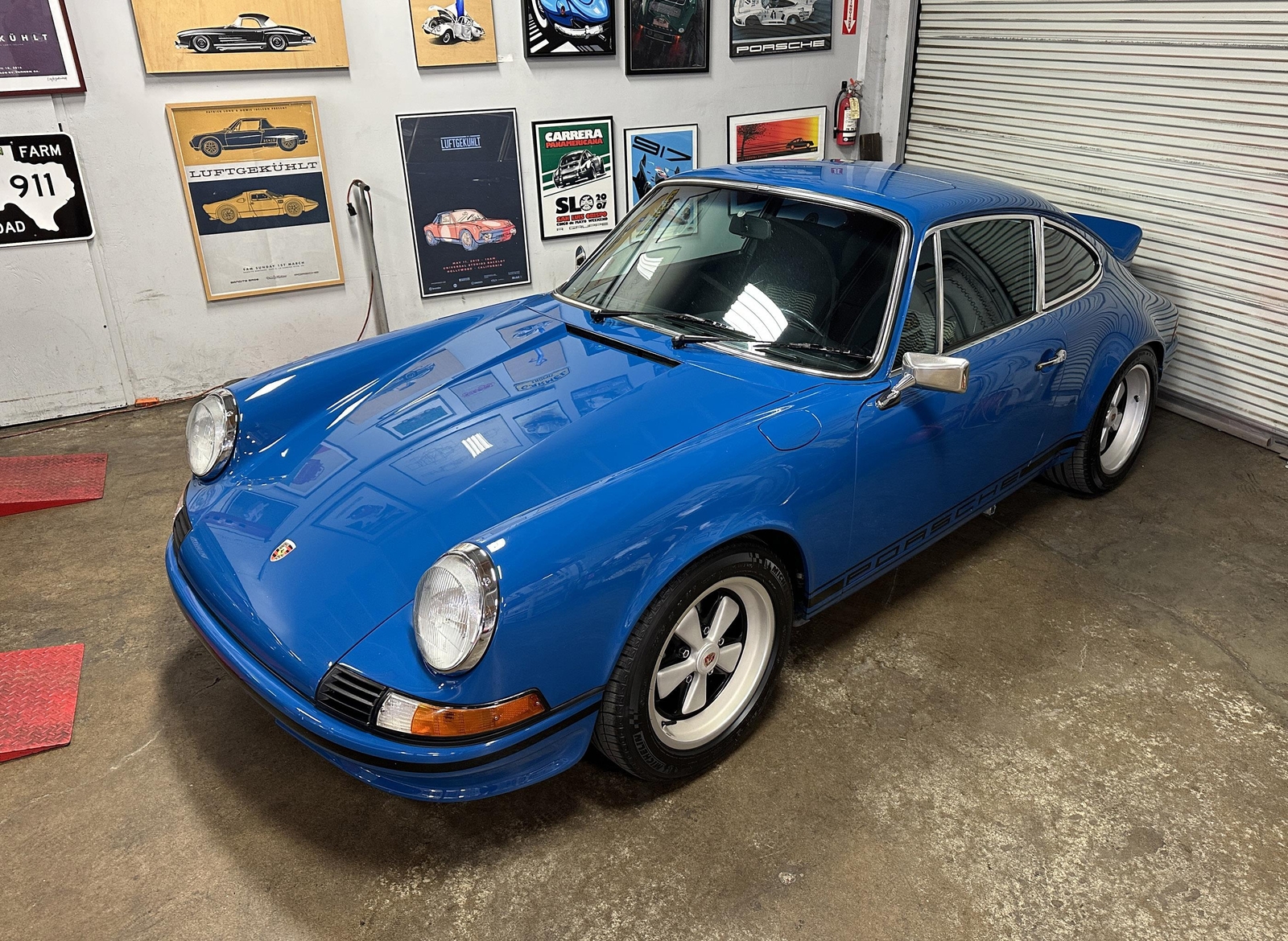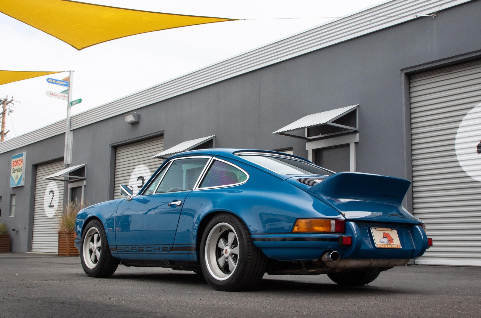 On March 4th, 2004, with 95,068 miles, Jack sold his 911 to Dave Bertrand from Brighton, Colorado. Dave enjoyed this 911 for 5-years and added an additional 18k miles. He had always wanted to build an RS conversion and was particularly interested in doing a backdated project. By 2009, the original black paint was showing some age so the long and fully documented endeavor began. He planned on using the stock drivetrain especially since he had just rebuilt the original 915 transmission. Also, the suspension was recently refurbished and a completely new factory wiring harness was installed (over $7,000 in 2005 dollars). The main focus was the steel backdate body. A year later, the project was completed in the Porsche factory color Oslo Blue. The work was done by one of the top shops in Denver. Dave reassembled the car on his own as a project (fully documented on Pelican threads). The car was finished with an RS look complete with ducktail and front/rear fiberglass RS bumpers from Getty Design. The front conversion was done with correct factory steel parts (hood and front fenders) to retain that original/correct look. The interior was still fairly stock as were the mechanicals.
