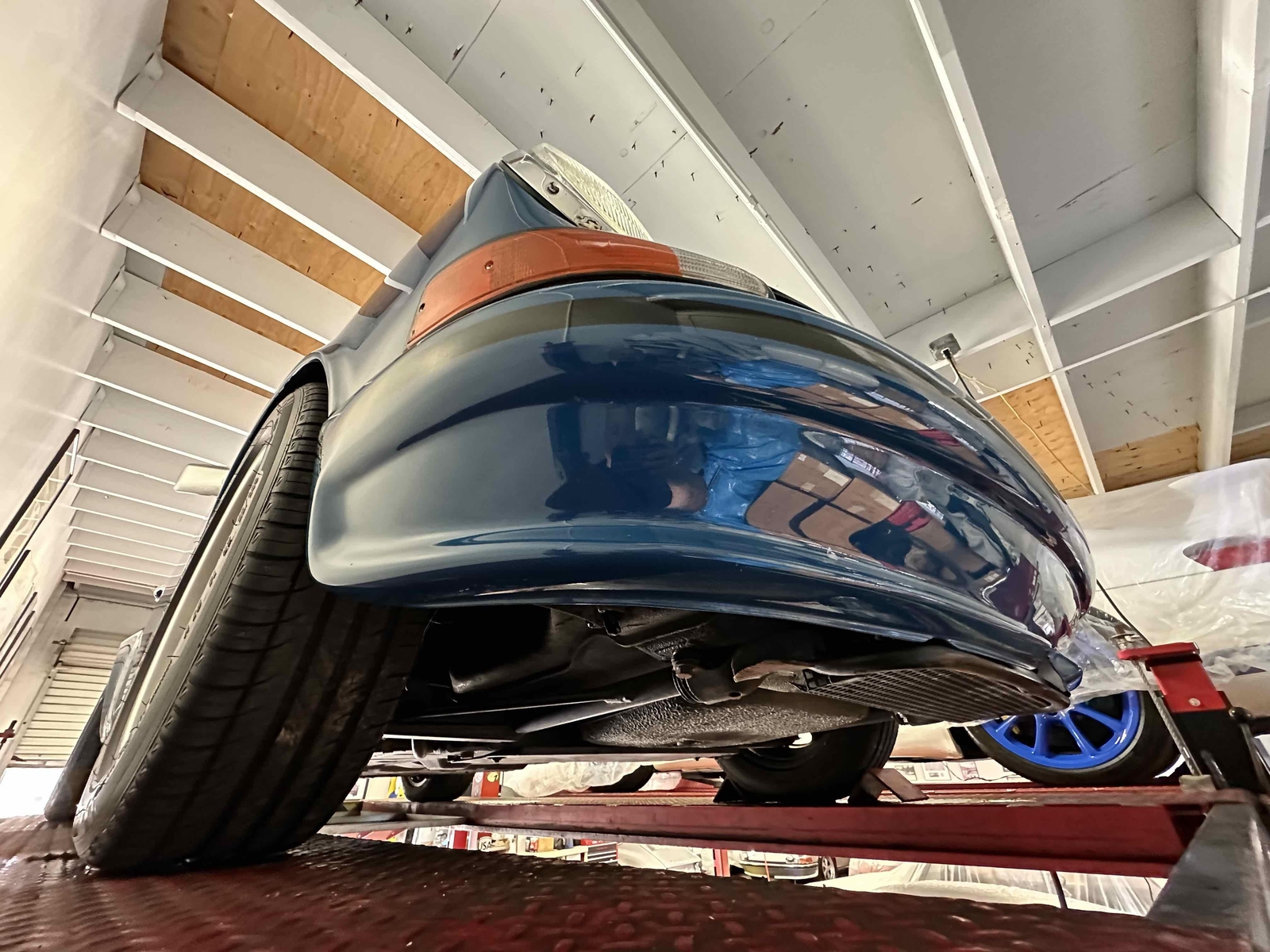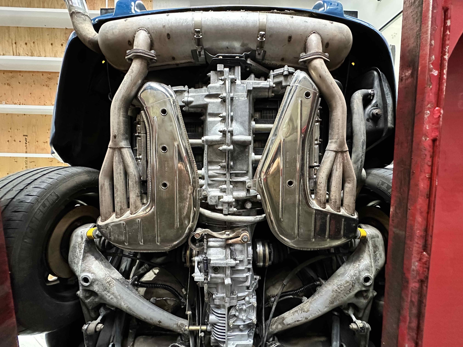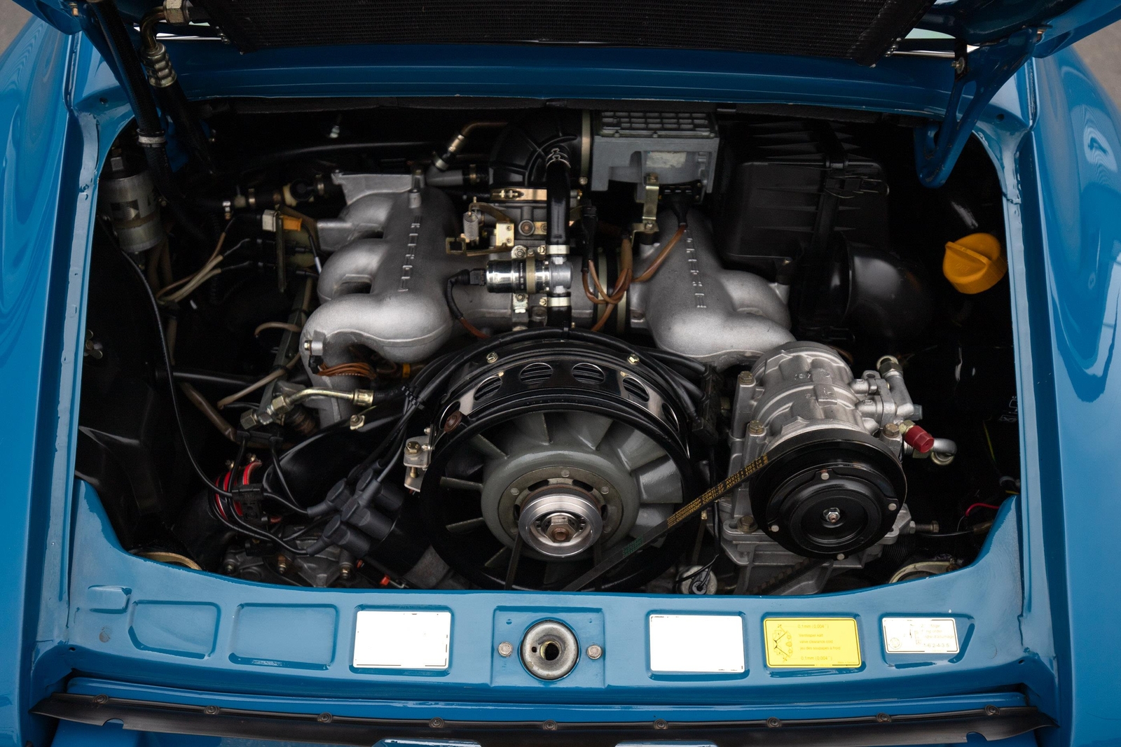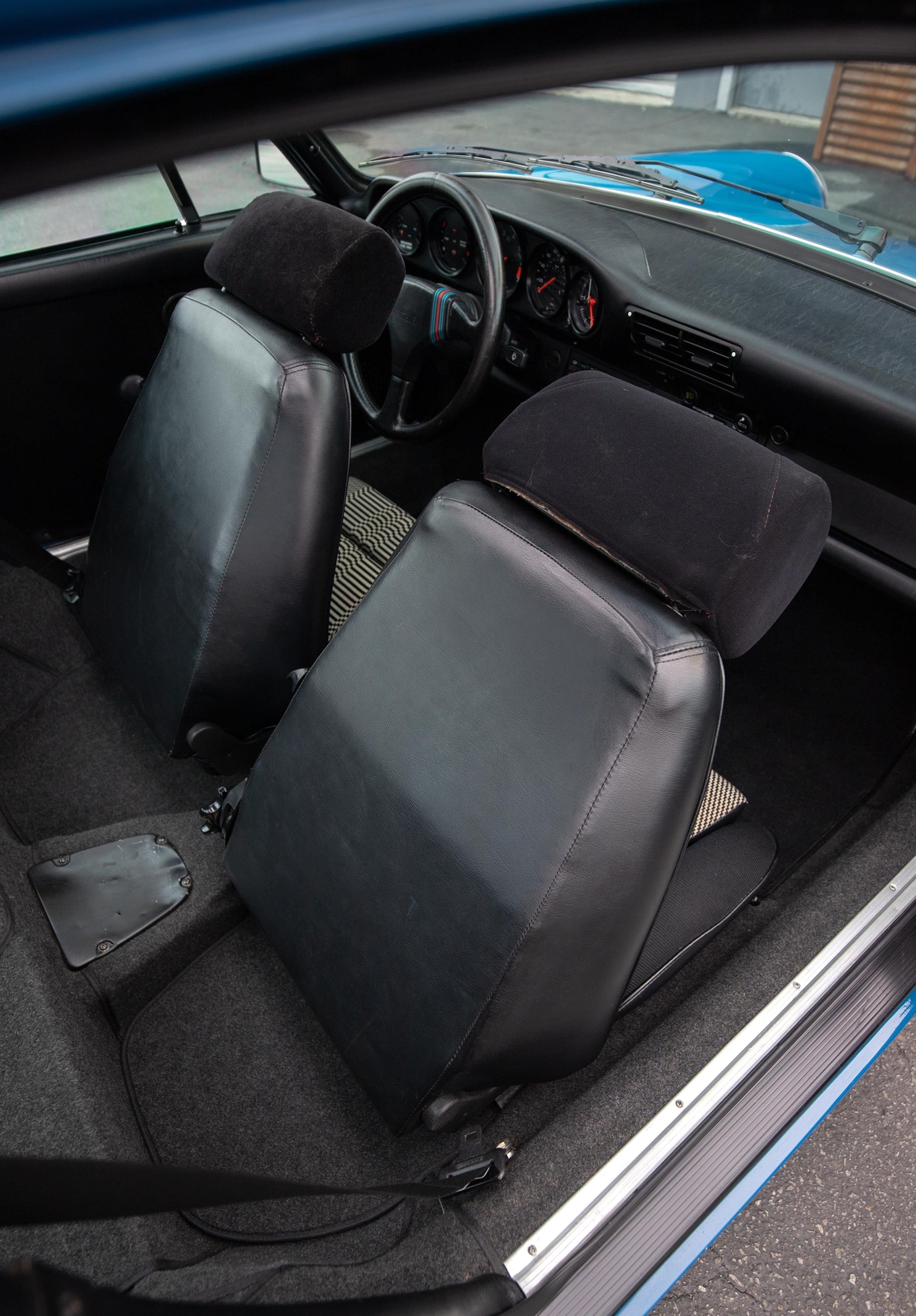 On March 4th, 2004, with 95,068 miles, Jack sold his 911 to Dave Bertrand from Brighton, Colorado. Dave enjoyed this 911 for 5-years and added an additional 18k miles. He had always wanted to build an RS conversion and was particularly interested in doing a backdated project. By 2009, the original black paint was showing some age so the long and fully documented endeavor began. He planned on using the stock drivetrain especially since he had just rebuilt the original 915 transmission. Also, the suspension was recently refurbished and a completely new factory wiring harness was installed (over $7,000 in 2005 dollars). The main focus was the steel backdate body. A year later, the project was completed in the Porsche factory color Oslo Blue. The work was done by one of the top shops in Denver. Dave reassembled the car on his own as a project (fully documented on Pelican threads). The car was finished with an RS look complete with ducktail and front/rear fiberglass RS bumpers from Getty Design. The front conversion was done with correct factory steel parts (hood and front fenders) to retain that original/correct look. The interior was still fairly stock as were the mechanicals.