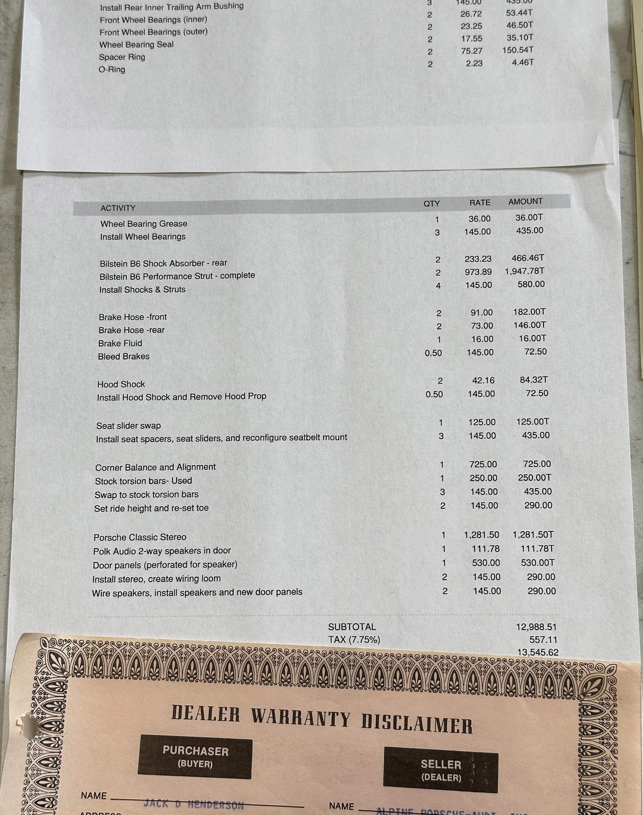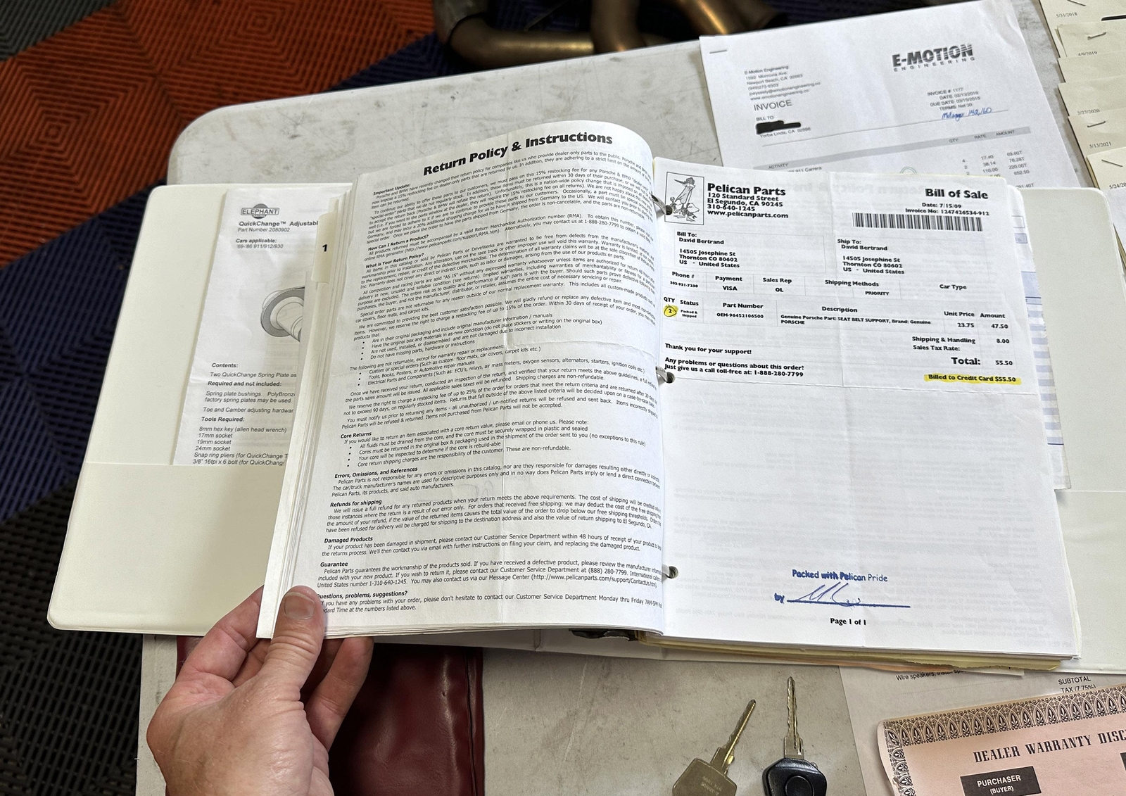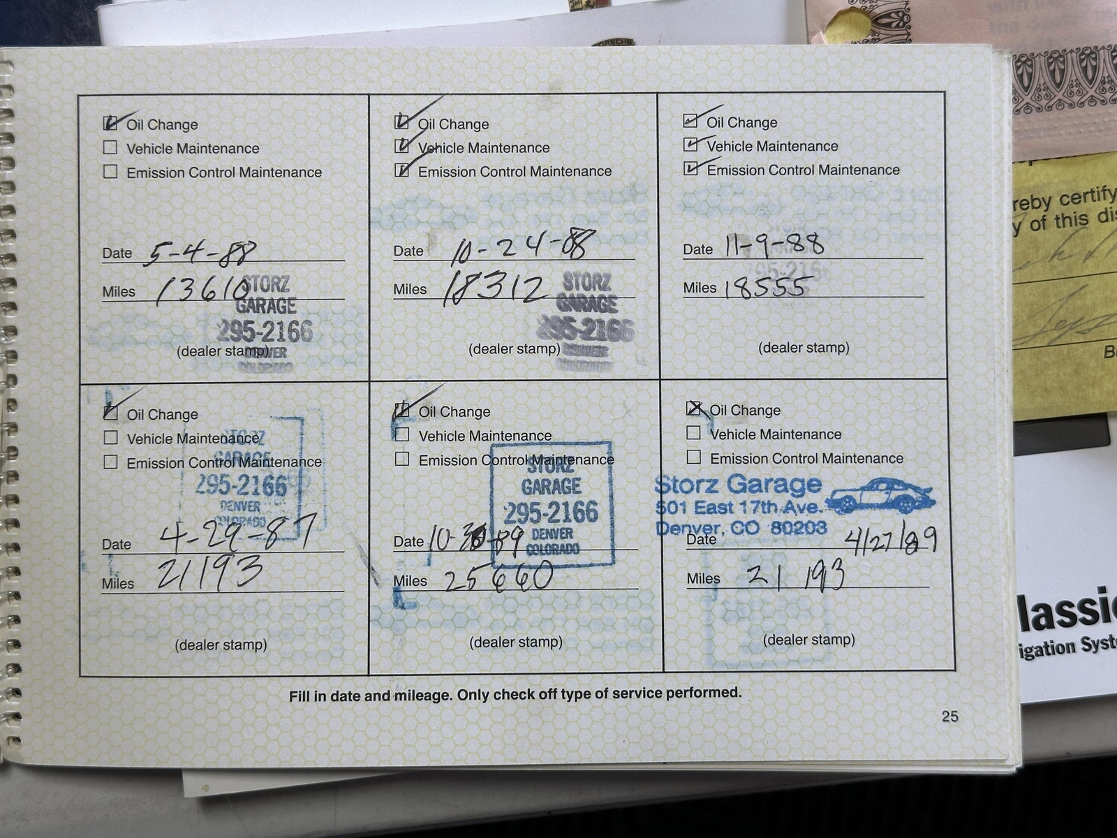 The first owner was Jack Henderson of Denver, Colorado. He kept this 911 for 18 years/95k miles. He serviced it regularly at either the local Porsche dealer or an independent specialist. He kept not only every service receipt but also had the maintenance booklet stamped. This is one of the first maintenance booklets I’ve seen stamped from new until the present day.