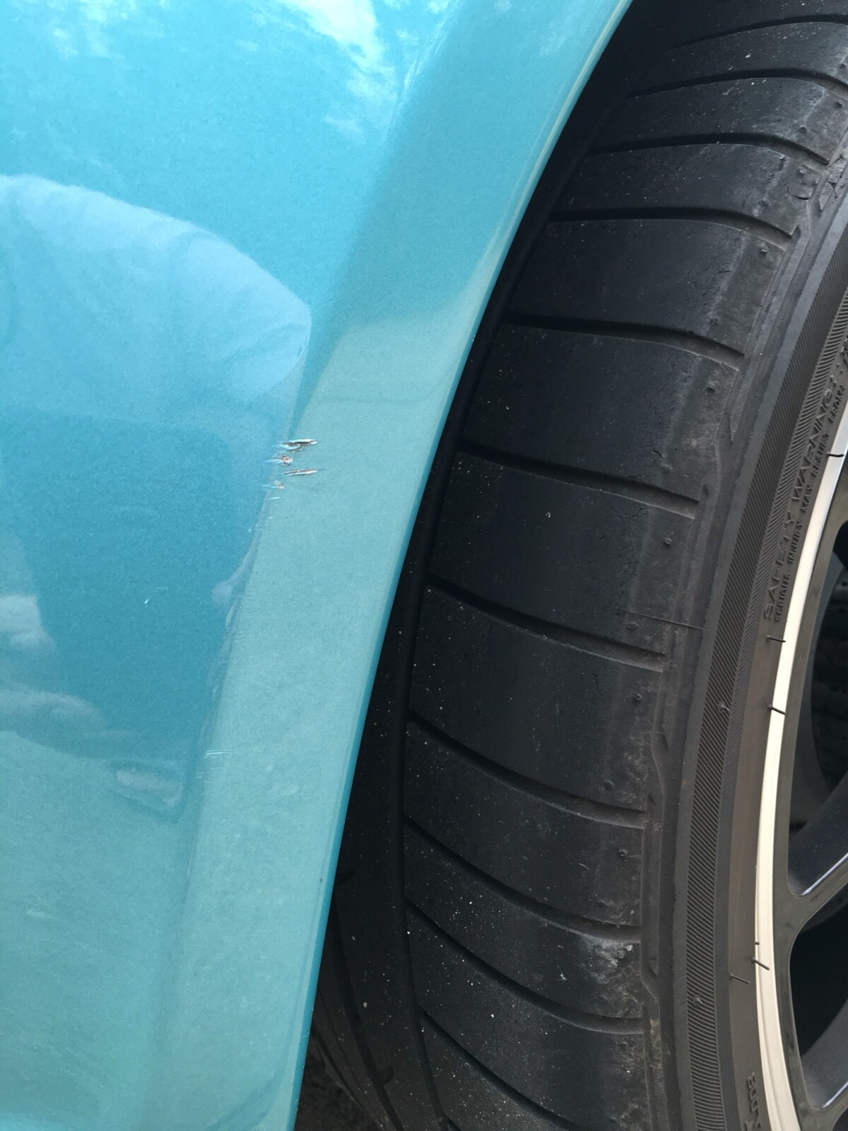 There are only two mild issues which are mild curb rash on a wheel and a small paint scratch on rear quarter panel (both from previous owner) and shown in photos.