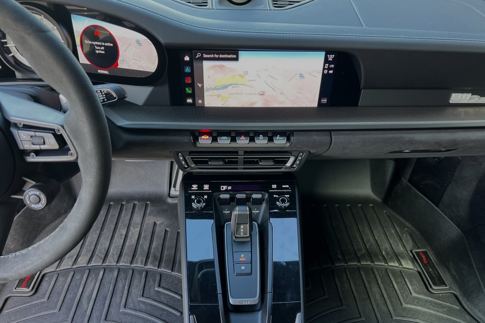 This Porsche San Luis Obispo 2023 Green Porsche 911 Dakar is well equipped and includes these features and benefits: 4-Wheel Disc Brakes, ABS brakes, Adaptive suspension, Air Conditioning, Alloy wheels, Auto-dimming door mirrors, Auto-dimming Rear-View mirror, Automatic temperature control, Brake assist, Bumpers: body-color, Delay-off headlights, Driver door bin, Driver vanity mirror, Dual front impact airbags, Dual front side impact airbags, Electronic Stability Control, Exterior Parking Camera Rear, Four wheel independent suspension, Front anti-roll bar, Front Bucket Seats, Front Center Armrest, Front dual zone A/C, Front reading lights, Fully automatic headlights, Garage door transmitter: HomeLink, Heated door mirrors, Illuminated entry, Low tire pressure warning, Navigation system: Porsche Communication Management (PCM), Occupant sensing airbag, Outside temperature display, Overhead airbag, Overhead console, Passenger door bin, Passenger vanity mirror, Porsche Communication Management, Power door mirrors, Power driver seat, Power passenger seat, Power steering, Power windows, Radio data system, Rain sensing wipers, Rear anti-roll bar, Rear fog lights, Rear window defroster, Remote keyless entry, Security system, Speed control, Spoiler, Sport steering wheel, Steering wheel mounted audio controls, Tachometer, Telescoping steering wheel, Tilt steering wheel, Traction control, Trip computer, and Variably intermittent wipers.