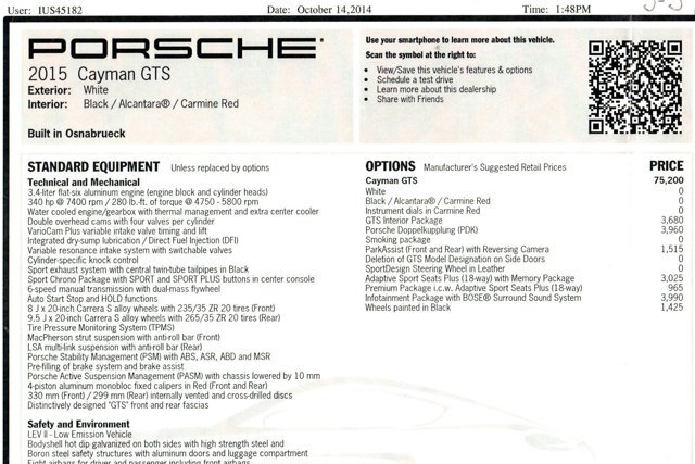 2015 Porsche Cayman GTS 20302 Miles 2dr Car Premium Unleaded H-6 3.4 L/210