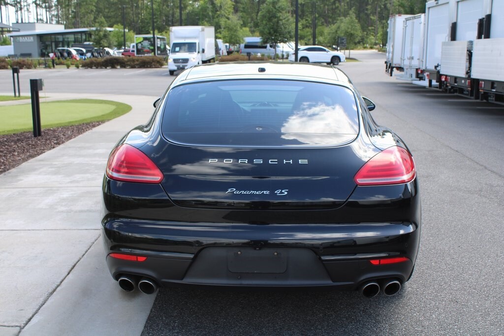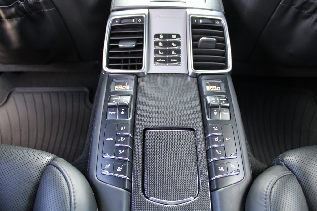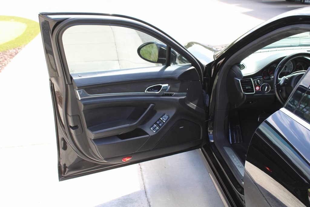 * The 2014 Panamera is unlike any other automobile with four (soft-closing) doors because a Porsche is fundamentally different from all other automobiles, period. The front, shoulders, and rear all have instantly recognizable traits such as horizontal LED running and rear lights, and Bi-Xenon headlights. The fenders are slightly higher than the hood and, at the rear, they are distinctly muscular and form the typical Porsche shoulder line. Particularly striking are the side air outlets behind the front wheels. A low, wide stance and a sleek roofline leave an overall impression that these are true sports car proportions. The most remarkable aspect of the rear is undoubtedly the two-way adaptive spoiler, which is integrated into the rear lid. When sitting inside one of the 2014 Panamera models, four things immediately stand out: the ascending center console, the four individual seats, the amount of space in the rear (where even taller passengers will find plenty of leg and headroom), and the versatility of the luggage compartment, thanks to the folding rear seats. In conjunction with seat heating, seat ventilation function