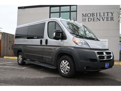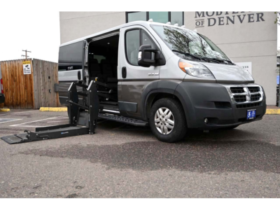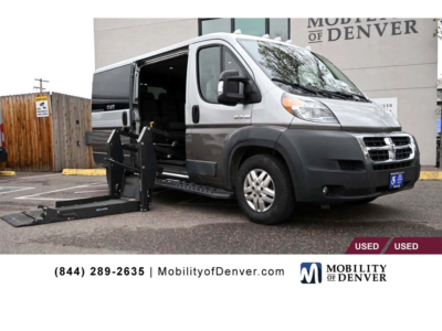 *REBUILT FROM SALVAGE TITLE* Door Opening Height: 57.5" and Lift width: 31". 2017 Ram ProMaster 1500 Low Roof Tempest X side Entry Lift Van for Sale. Converted by Tempest in AZ, this Full-Sized van has been fitted with a side-load split fold design lift for your transportation needs. It includes the rare dual slider doors, L-Track restraint rails, and retracting wheelchair restraint straps. With a 31 inch wide ramp this is the option for larger wheelchair passengers who need the space. This van is well designed for ease of loading and a comfortable spacious ride. Accommodates 6 seated passengers plus one wheelchair passenger. This exceptionally handy ProMaster runs great, has been well maintained, and is in good shape with minimal dents on the body - had roof damage. Also features; beautiful two-tone gray/gold exterior, gray leather interior, steel wheels, new tires, Uconnect 5” Display AM/FM sound system with CD player and AUX port, hot Heat and Cold AC with rear system controls, LED ceiling lights and custom interior, power windows, mirrors, and locks, keyless remote, cruise control, rear barn doors, front and side-curtain airbags, anti-lock brakes, traction and stability control, active seat belts, Braun solid platform lift, fold flat rear bench seat that turns into a bed, and rear back-up camera. Smooth and efficient 3.6L 6-cylinder Chrysler motor with front wheel drive, and much more. This vehicle is currently available for sale at Mobility of Denver, located at: 2311 S Platte River Drive, Denver CO 80223. We don't charge a Dealer Handling Fee and are now your mobility one-stop-shop. Just give us a call as we offer it all: sales, service, parts, and rentals. Open M-F 9am - 6pm. Sat by appt. Call 303-351-7904.