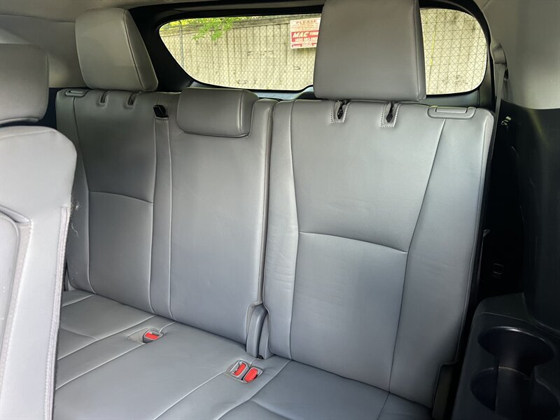 INSTALLED FEATURES: Air filtration, Front air conditioning: automatic climate control, Front air conditioning zones: dual, Rear air conditioning: automatic climate control / independently controlled, Rear air conditioning zones: single, Rear vents: third row, Airbag deactivation: occupant sensing passenger, Front airbags: dual, Knee airbags: driver, Seat cushion airbags: passenger front, Side airbags: front, Side curtain airbags: front / rear / third row, Antenna type: diversity / mast, Auxiliary audio input: Bluetooth / USB / iPod/iPhone, Radio: AM/FM / HD radio / touch screen display / voice operated, Radio data system, Satellite radio: SiriusXM, Speed sensitive volume control, Total speakers: 6, ABS: 4-wheel, Braking assist, Electronic brakeforce distribution, Electronic parking brake: auto off, Front brake diameter: 13.3, Front brake type: ventilated disc, Power brakes, Rear brake diameter: 13.3, Rear brake type: disc, Armrests: rear outboard seats, Door trim: simulated alloy, Floor material: carpet, Interior accents: metallic-tone, Shift knob trim: leather, Steering wheel trim: leather, Adaptive cruise control, Adaptive stop and go cruise control: semi-automatic, Assist handle: front / rear, Autonomous lane guidance: lane centering, Cargo area light, Center console: front console with armrest and storage / organizer tray, Conversation mirror, Courtesy lights: door, Cupholders: front / rear / third row, Easy entry: manual rear seat, Multi-function remote: panic alarm / proximity entry system / trunk release, One-touch windows: 4, Overhead console: front, Power outlet(s): USB front / USB-C front / USB-C rear / two 12V front, Power steering: variable/speed-proportional, Power windows: lockout button, Push-button start, Reading lights: front / rear, Rearview mirror: auto-dimming, Steering wheel: tilt and telescopic, Steering wheel mounted controls: audio / cruise control / multi-function / phone / voice control, Storage: accessory hook / cargo tie-down anchors and hooks / door pockets / front seatback / grocery bag holder / in dash / in floor / sunglasses holder, Sunshade: side window, Universal remote transmitter: Homelink - garage door opener, Vanity mirrors: dual illuminating, Wireless charging station: front, 4WD type: on demand, Axle ratio: 3.00, Drive mode selector, Auto start/stop, Battery saver, Door handle color: body-color, Exhaust tip color: stainless steel, Fender lip moldings: black, Front bumper color: body-color, Grille color: black / silver surround, Mirror color: body-color, Mudguards: front / rear, Rear bumper color: black, Rear spoiler: roofline, Rear spoiler color: body-color, Rear trunk/liftgate: liftgate / power operated, Rocker panel color: body-color, Window trim: chrome, Connected in-car apps: Amazon Alexa / Google POIs / Google search, Infotainment screen size: 8 in., Smartphone integration: Android Auto / Apple CarPlay, Clock, Digital odometer, External temperature display, Fuel economy display: MPG / range, Gauge: tachometer, Instrument cluster screen size: 7 in., Multi-function display, Trip odometer, Warnings and reminders: coolant temperature warning / lamp failure / low fuel level / low oil pressure / maintenance due, Daytime running lights: LED, Exterior entry lights: approach lamps, Front fog lights: LED, Headlights: LED / auto delay off / auto high beam dimmer / auto on/off, Taillights: LED, Side mirror adjustments: manual folding / power, Side mirrors: heated / integrated turn signals, Moonroof / Sunroof: anti-trapping / one-touch open/close / power glass / sliding sunshade / tilt/slide, Roof rails: silver, Automatic emergency braking: front / front pedestrian, Blind spot safety: sensor/alert, Camera system: rearview, Camera system washer: rear, Check rear seat reminder, Child safety door locks, Child seat anchors: LATCH system, Cross traffic alert: rear, Crumple zones: front / rear, Impact absorbing seats: dual front, Impact sensor: alert system / door unlock / fuel cut-off, Lane deviation sensors, Lane keeping assist, Pre-collision warning system: audible warning / pedestrian detection / visual warning, Rearview monitor: in dash, Safety brake pedal system, Traffic sign recognition, Emergency locking retractors: front / rear / third row, Front seatbelts: 3-point, Rear seatbelts: 3-point, Seatbelt force limiters: front, Seatbelt pretensioners: front, Seatbelt warning sensor: front, Third row seatbelts: 3-point, Driver seat: heated, Driver seat power adjustments: height / lumbar / reclining / 10, Front headrests: adjustable / 2, Front seat type: bucket, Passenger seat: heated, Passenger seat power adjustments: reclining / 4, Rear headrests: adjustable / 2, Rear seat: sliding, Rear seat folding: flat, Rear seat manual adjustments: reclining, Rear seat type: captains chairs, Third row headrests: adjustable / 3, Third row seat folding: flat / split, Third row seat type: 40-60 split bench, Upholstery: leatherette, Anti-theft system: alarm / vehicle immobilizer, Power door locks: anti-lockout / auto-locking, Hill holder control, Off-road driving assist: hill descent, Stability control, Traction control, Trailer stability control, Steering ratio: 14.2, Front shock type: gas, Front spring type: coil, Front stabilizer bar, Front struts: MacPherson, Front suspension classification: independent, Front suspension type: lower control arms, Rear shock type: gas, Rear spring type: coil, Rear stabilizer bar, Rear suspension classification: independent, Rear suspension type: multi-link, Driver assistance app: roadside assistance, Electronic messaging assistance: voice operated / with read function, Hands-free phone call integration: voice operated, Smart device app compatibility: Toyota Connected Services, Smart device app function: engine start / lock operation / maintenance scheduling / maintenance status / vehicle location, Wi-Fi: hotspot, Wireless data link: Bluetooth, Spare tire mount location: underbody, Spare tire size: temporary, Spare wheel type: steel, Tire 