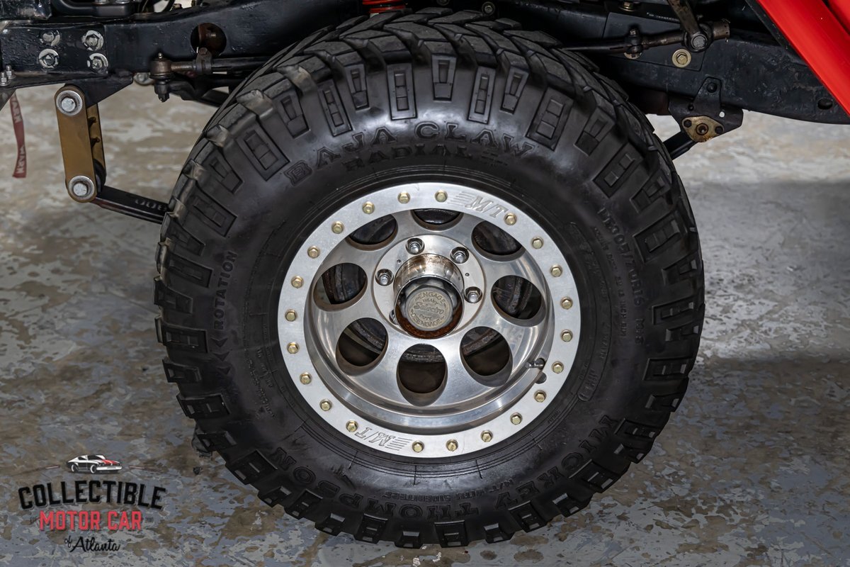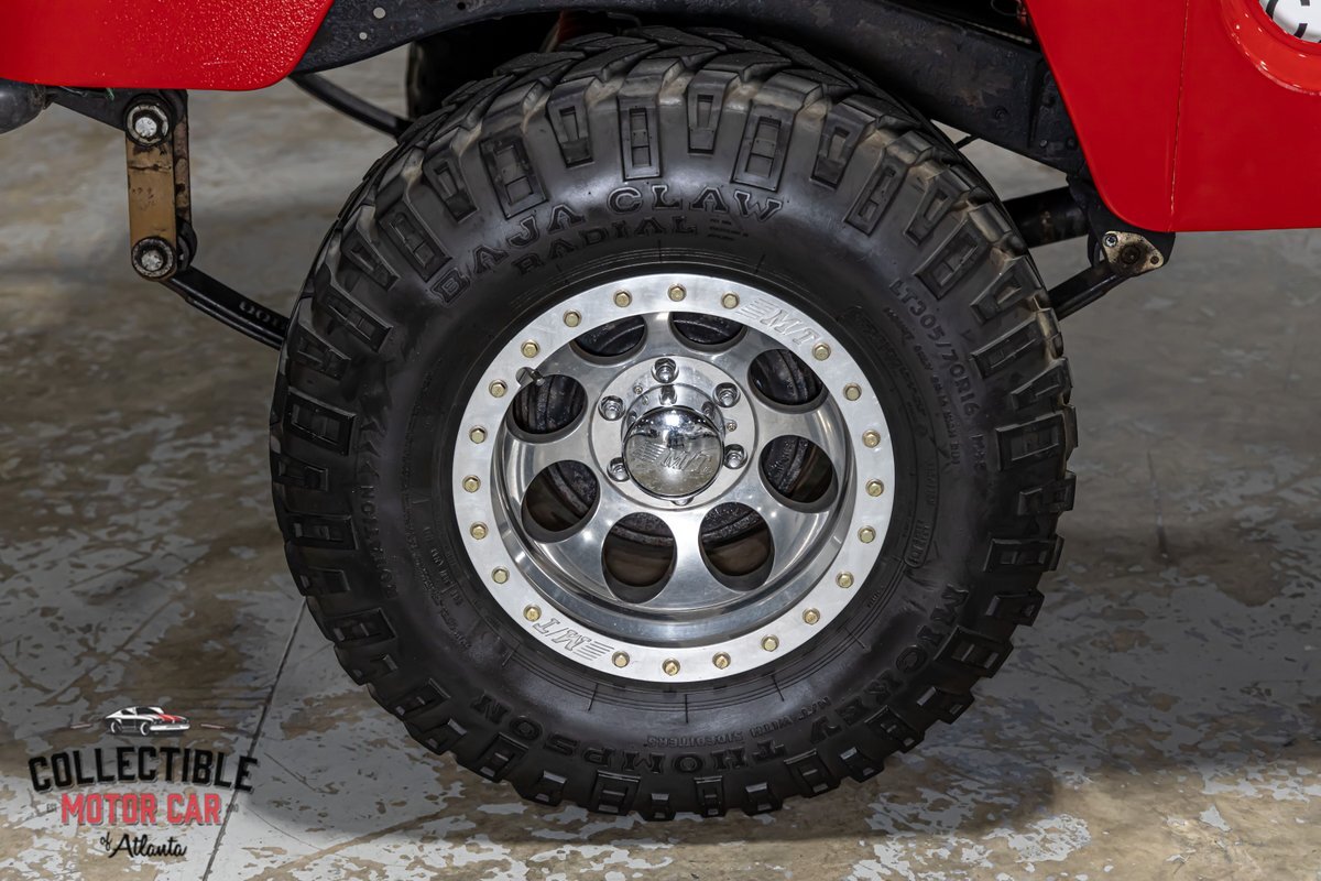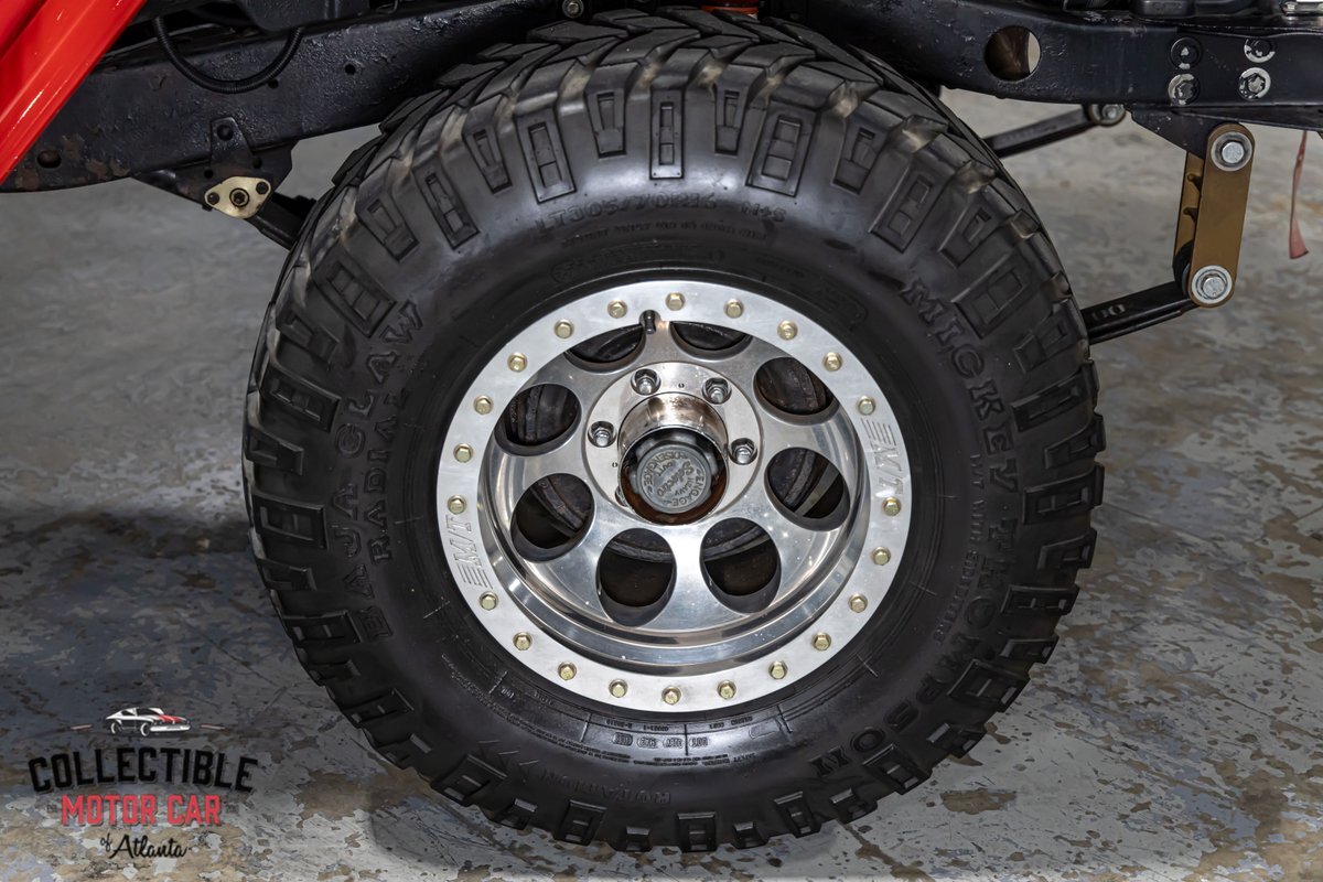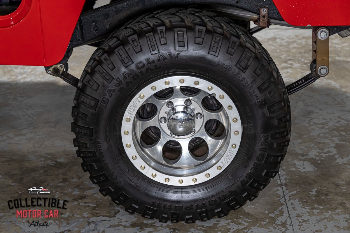 This FJ40 has been thoughtfully upgraded to enhance both its capability and comfort. Power steering and power brakes make navigating the trails a breeze, while a BDS 4-inch lift provides the perfect lift for conquering diverse terrains. The M/T alloy wheels and M/T Baja Claw tires, including a matching spare, ensure a firm grip on any surface.