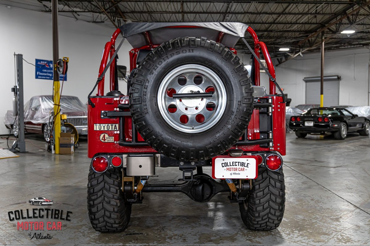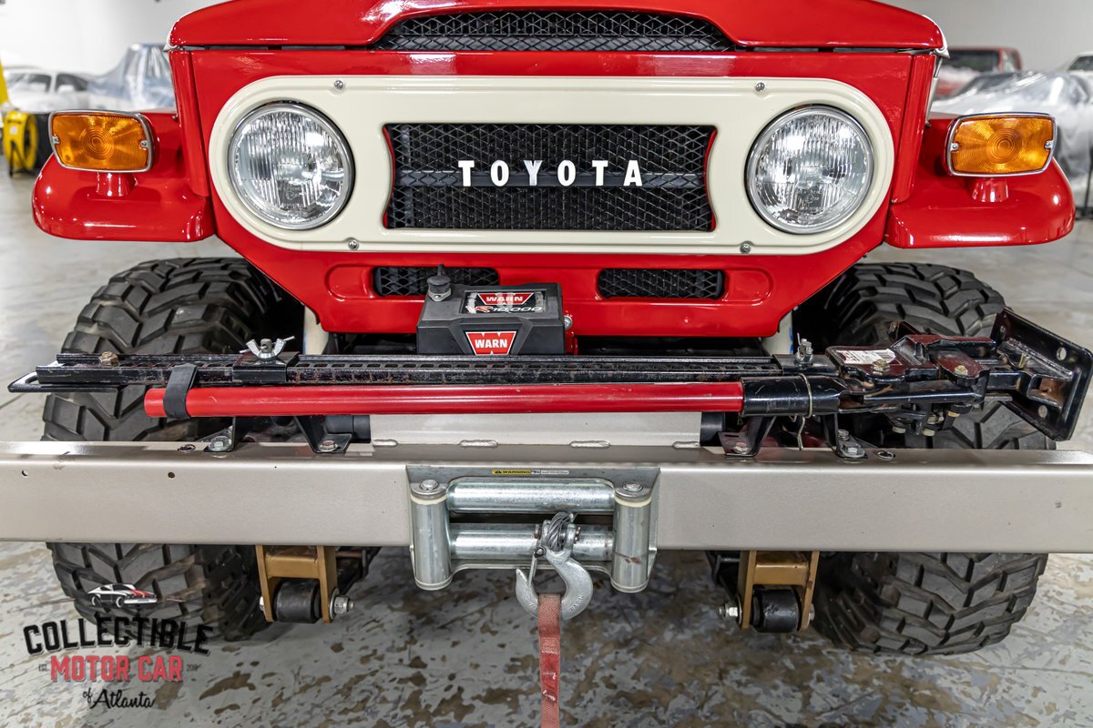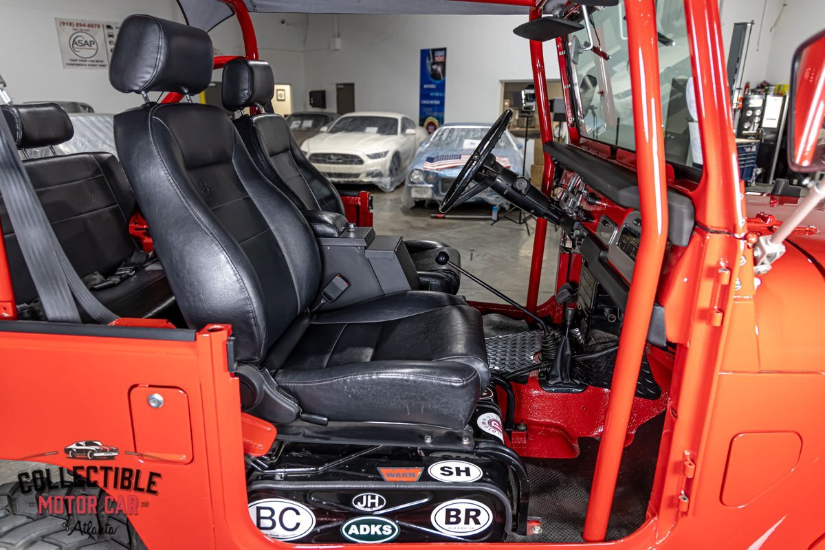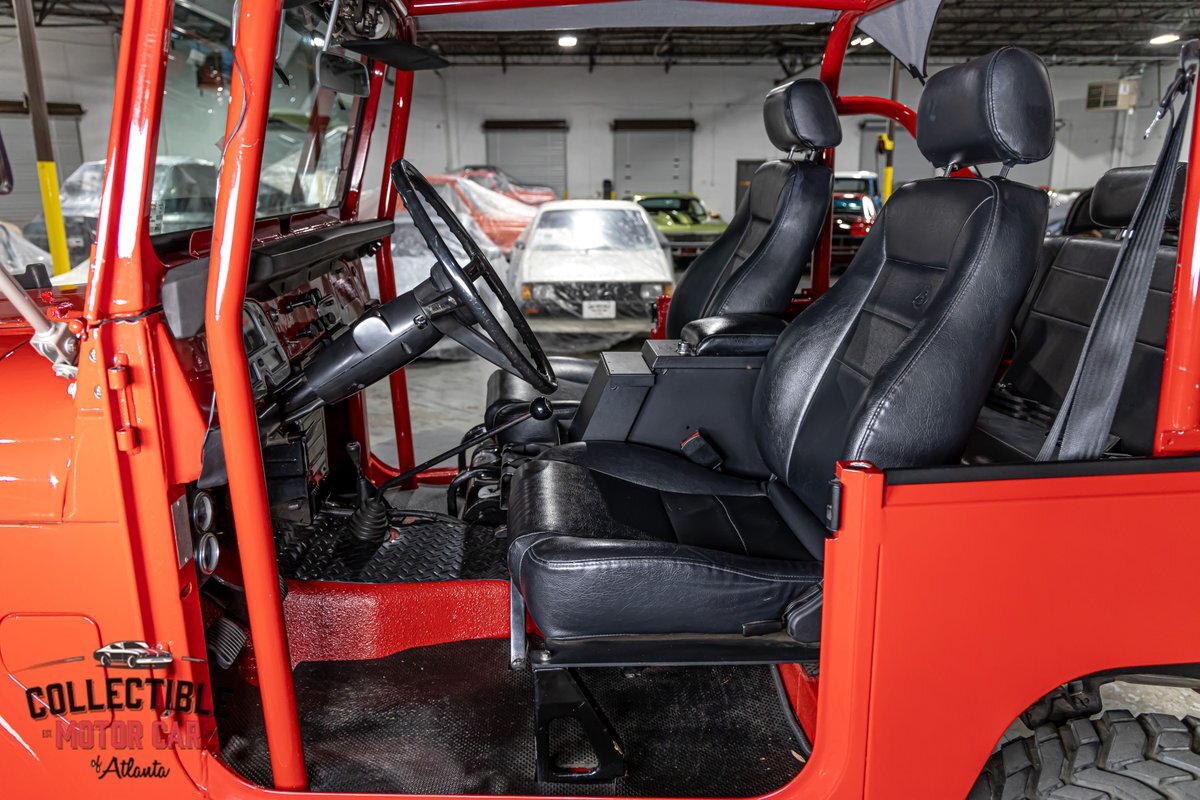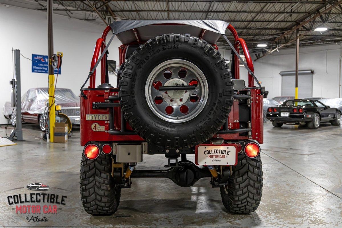 This FJ40 has been thoughtfully upgraded to enhance both its capability and comfort. Power steering and power brakes make navigating the trails a breeze, while a BDS 4-inch lift provides the perfect lift for conquering diverse terrains. The M/T alloy wheels and M/T Baja Claw tires, including a matching spare, ensure a firm grip on any surface.