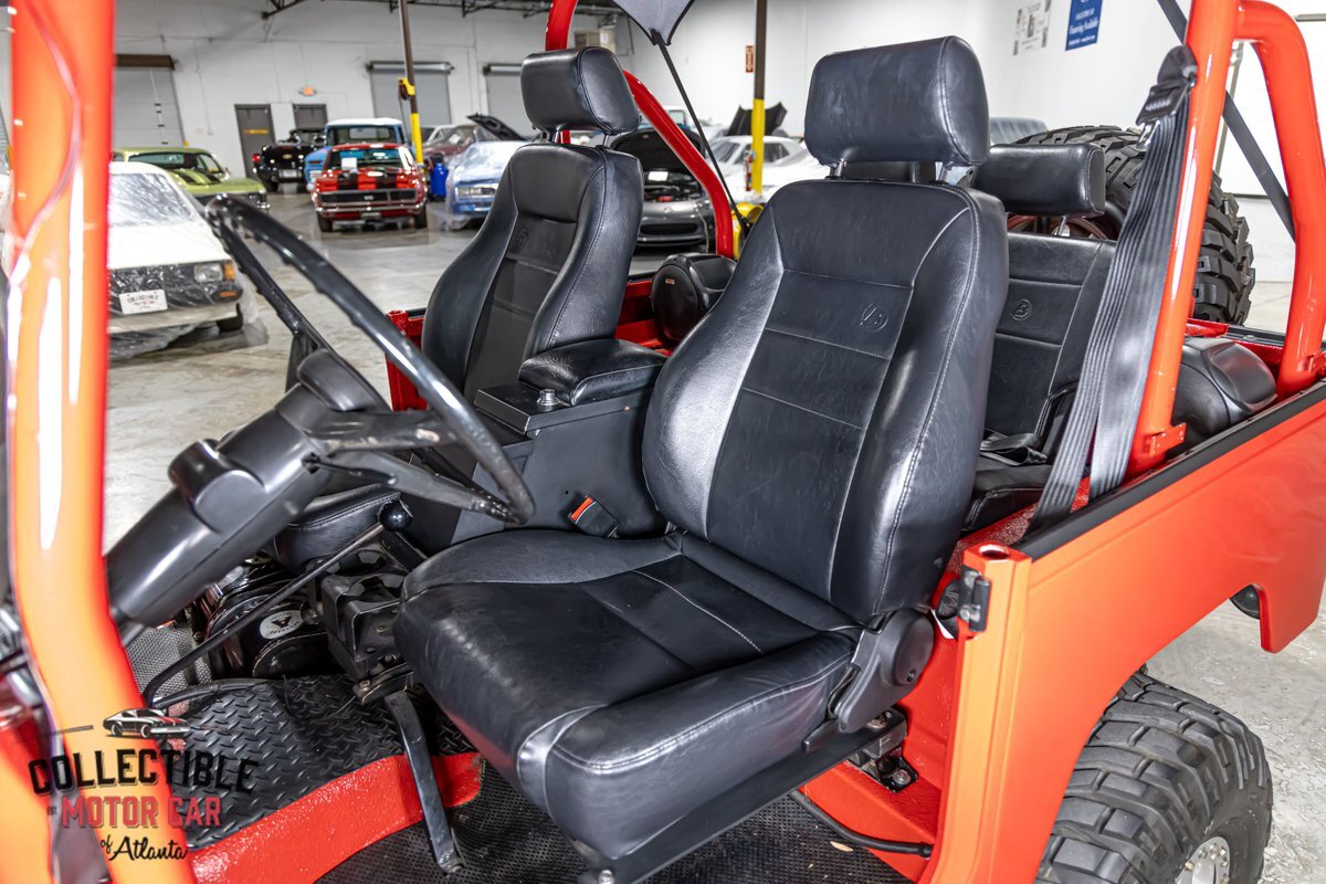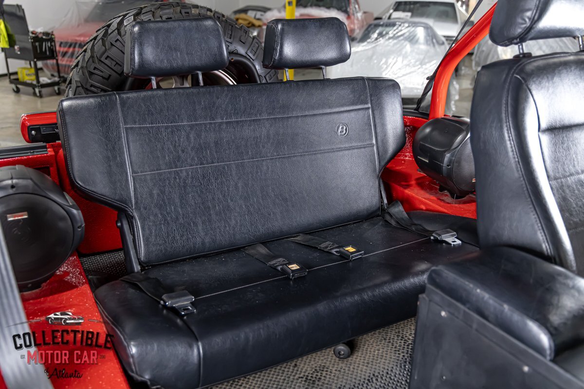 Step inside to discover Bestop seats that provide both comfort and durability. A custom powder-coated roll cage adds an extra layer of safety and style. A full soft top completes the package, offering protection from the elements without sacrificing the open-air experience.