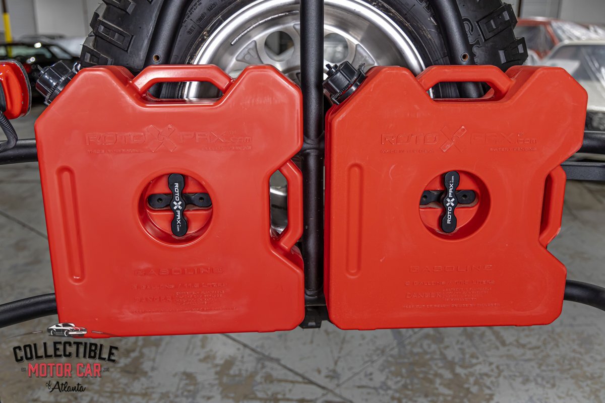 Practicality meets preparedness with a front bumper boasting a 10,000lb winch and a high-lift jack for those off-road challenges. The custom rear bumper features an integrated tire carrier and jerry cans, ensuring you're ready for extended journeys into the great unknown.