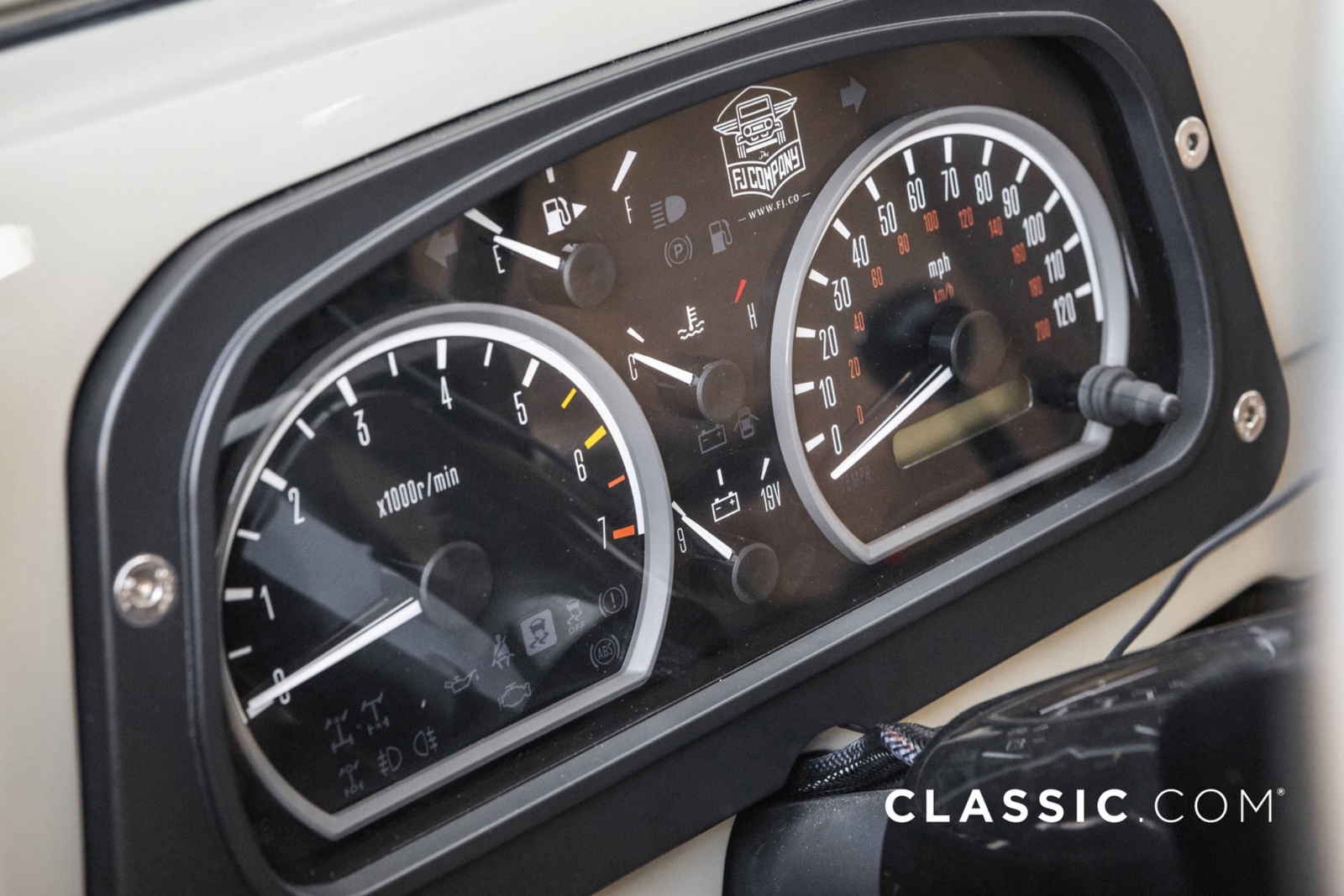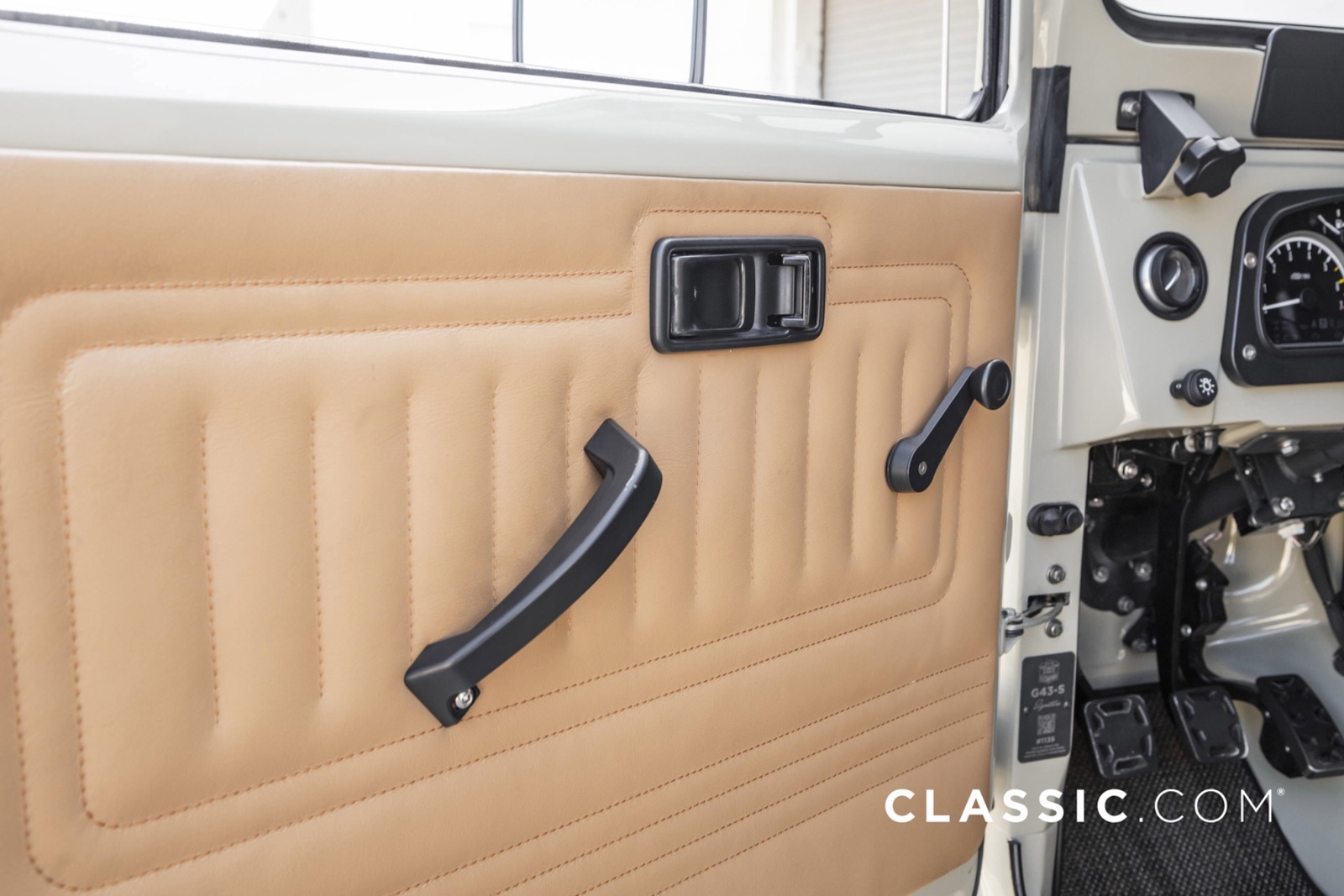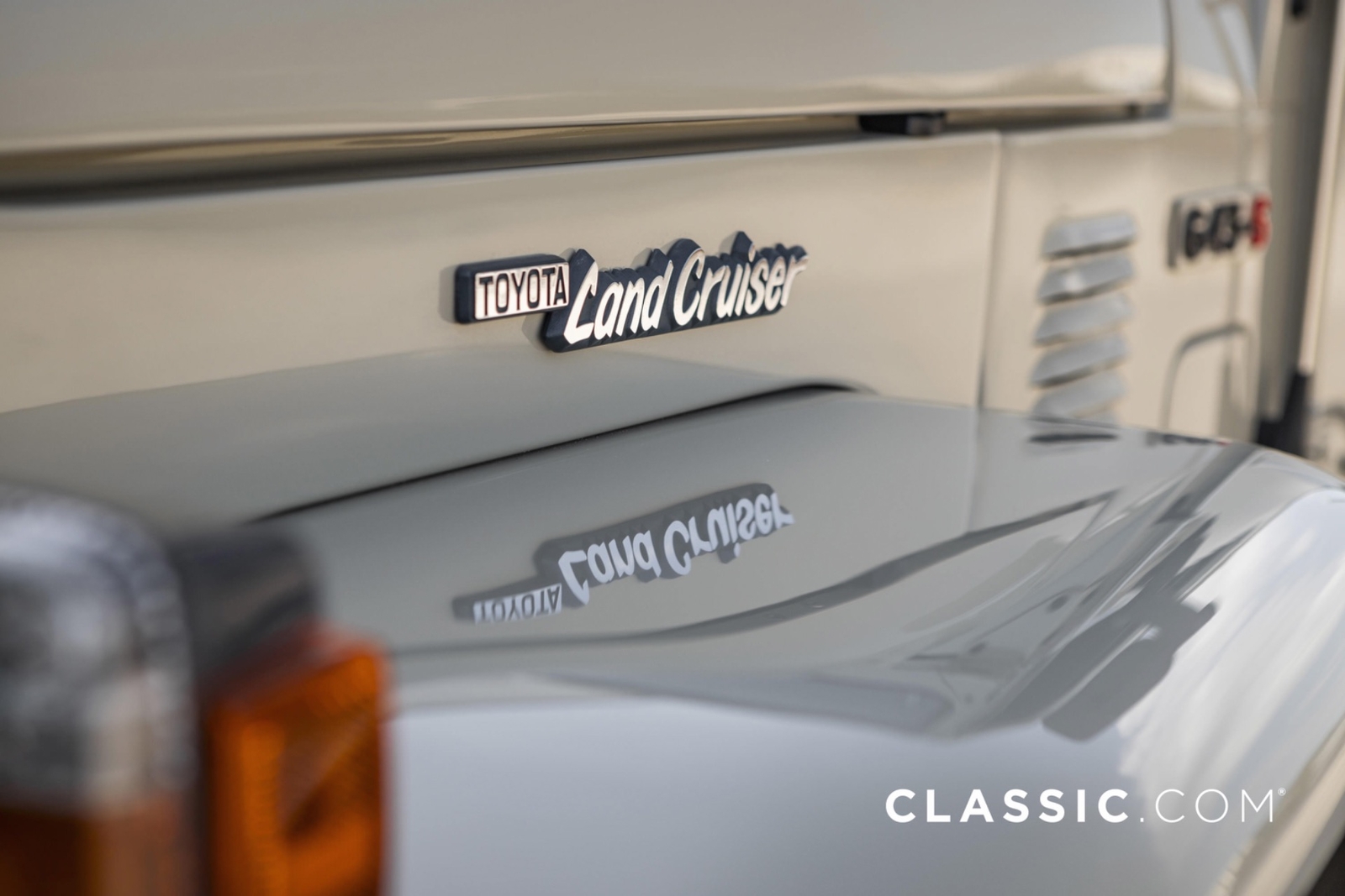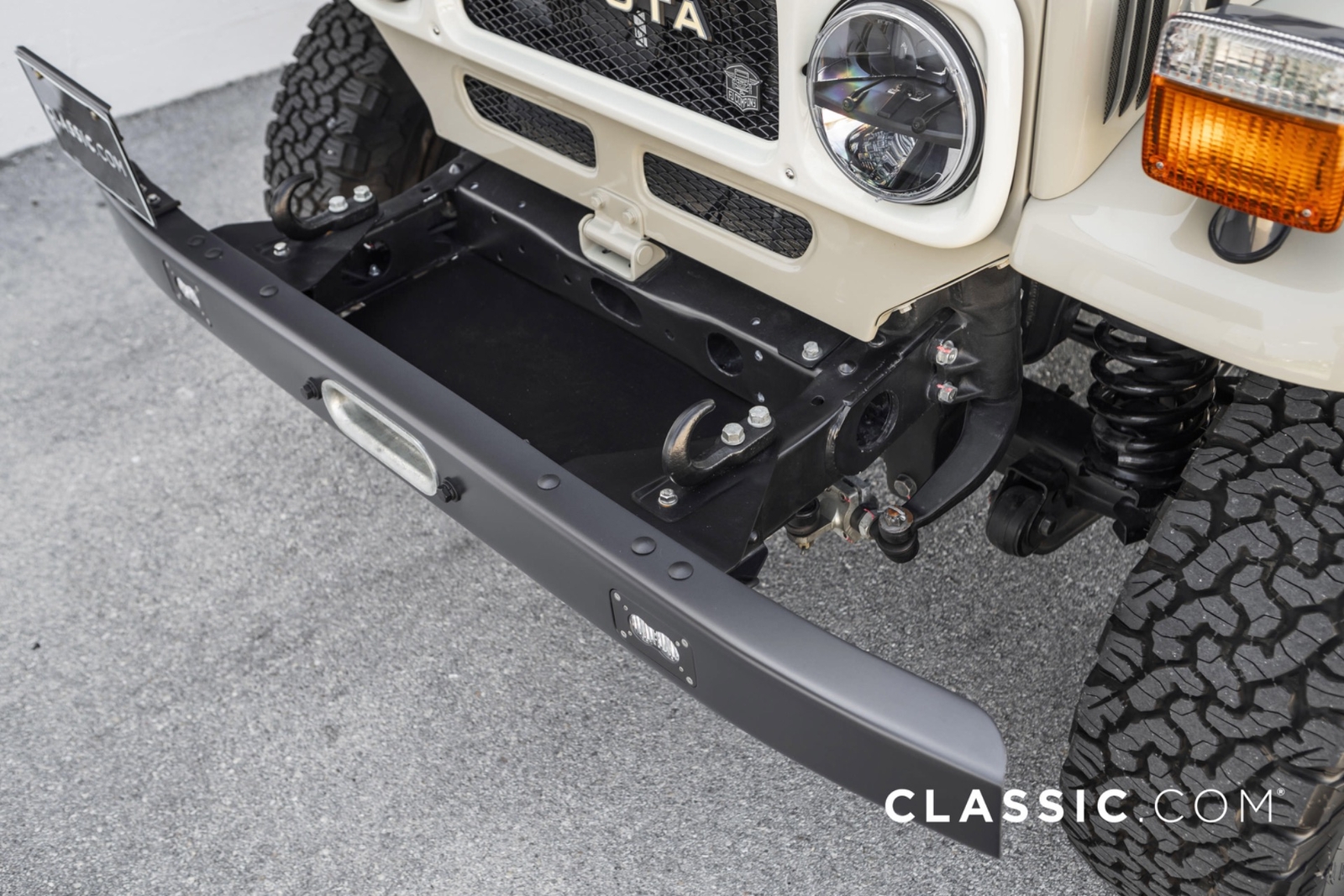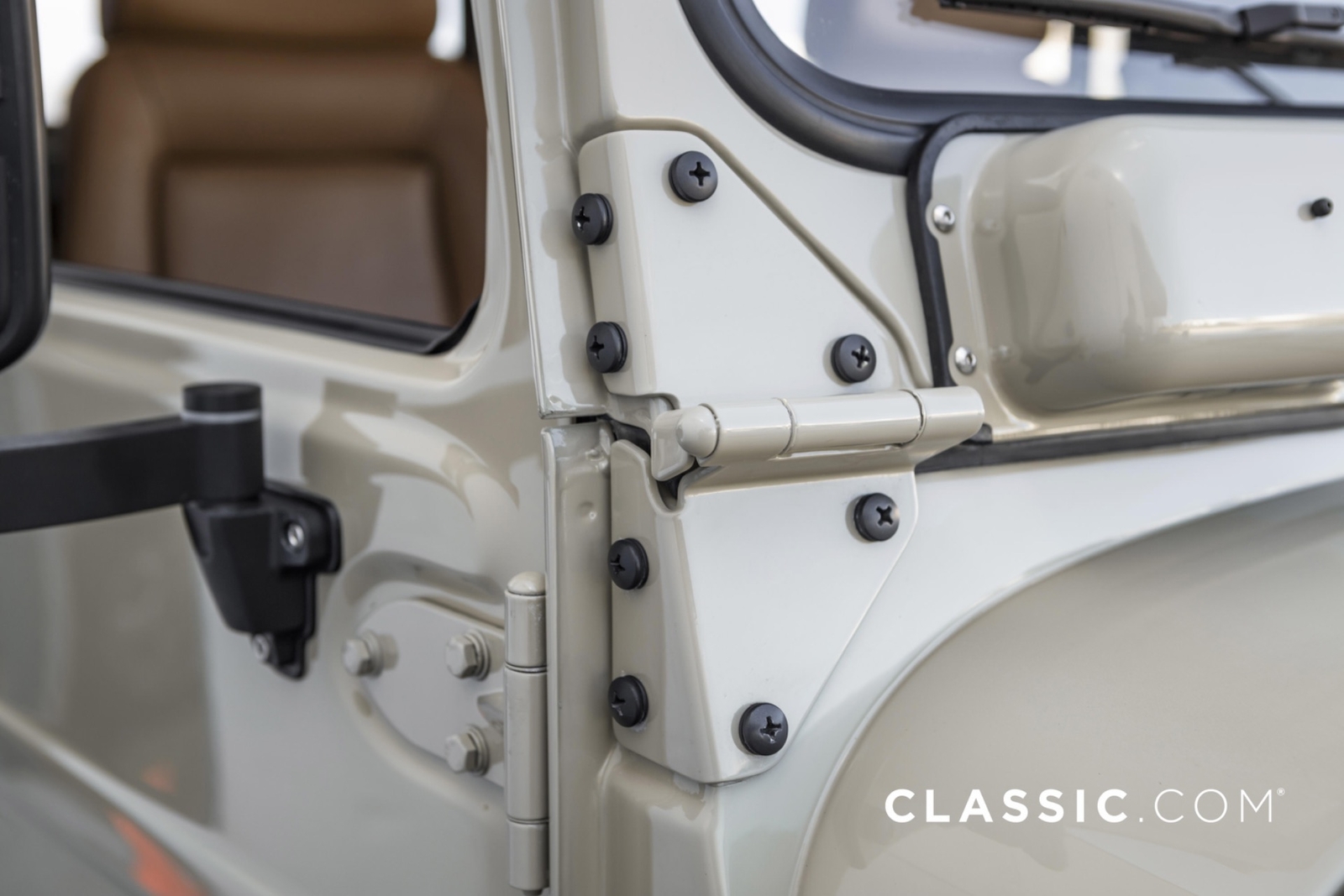 This custom 1980 Toyota Land Cruiser seamlessly blends timeless style with modern technology. This truck was originally a stock FJ43 that underwent a comprehensive custom build by The FJ Company in 2020-2021 and evolved into their G43-S Heritage model and now has just 1,890 km since that time. This transformation involved the integration of all new and modern mechanical components, propelling this classic into the contemporary era and enhancing its ride and capability. Power is created by a custom Toyota 4.0L V6 1GR-FE engine, with an optional Magnuson Supercharger, coupling to all four wheels through a robust five-speed manual transmission. The paint is a subtle yet captivating Beige (464) paired with brown leather Recaro seats that offer style and comfort.