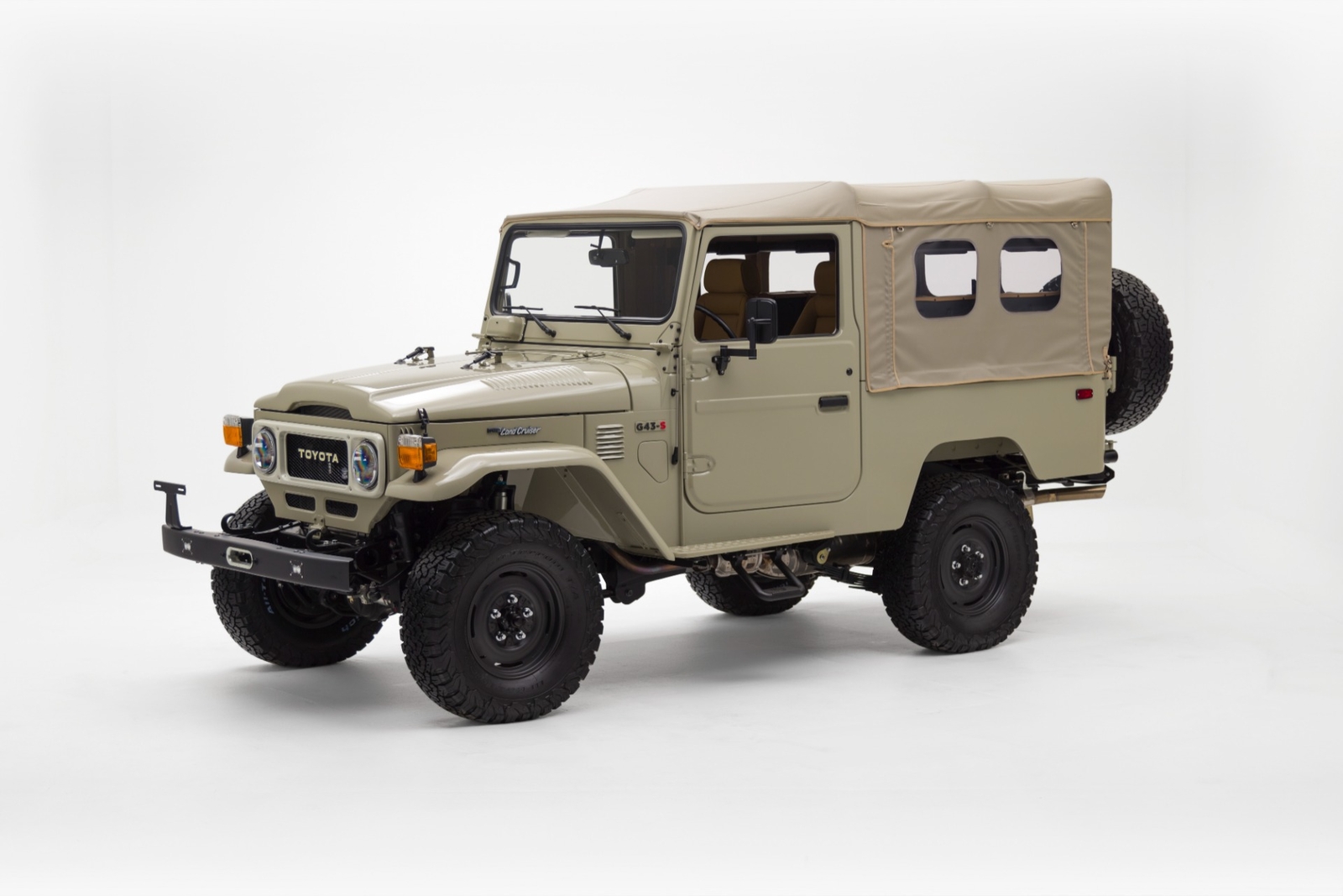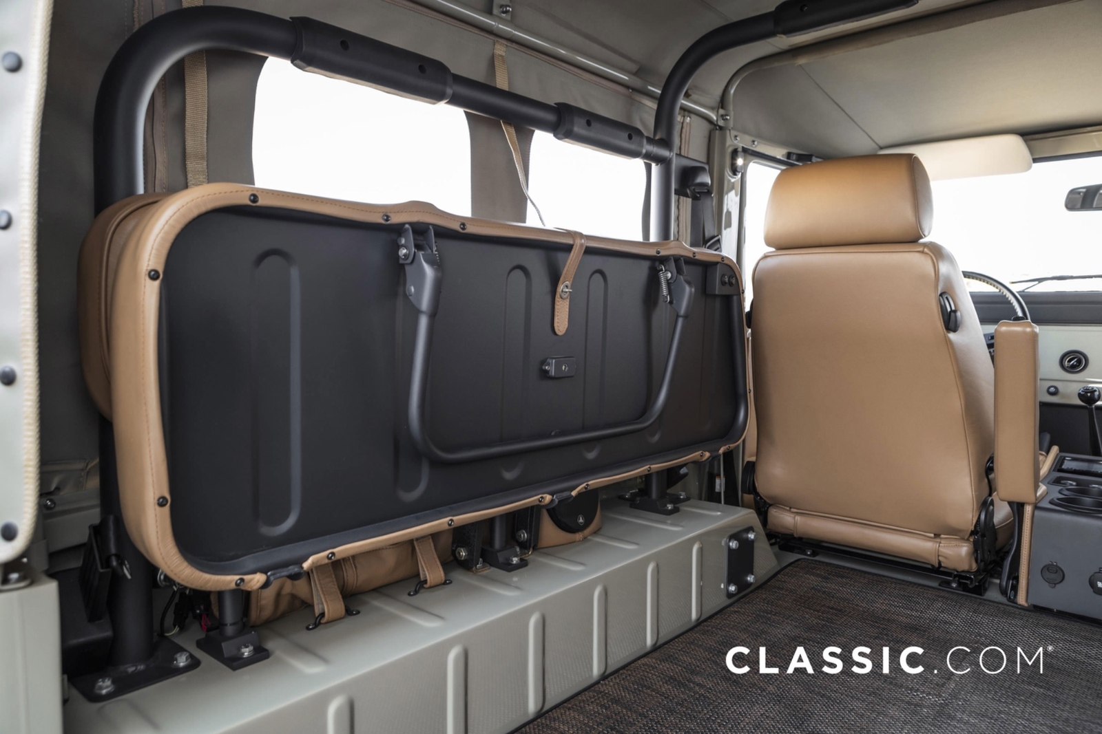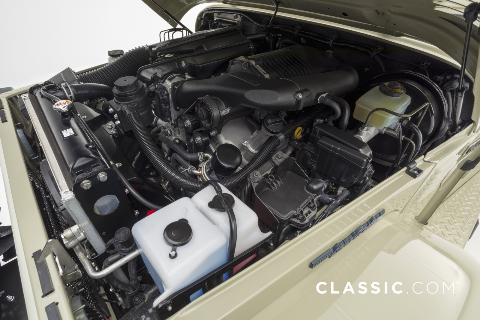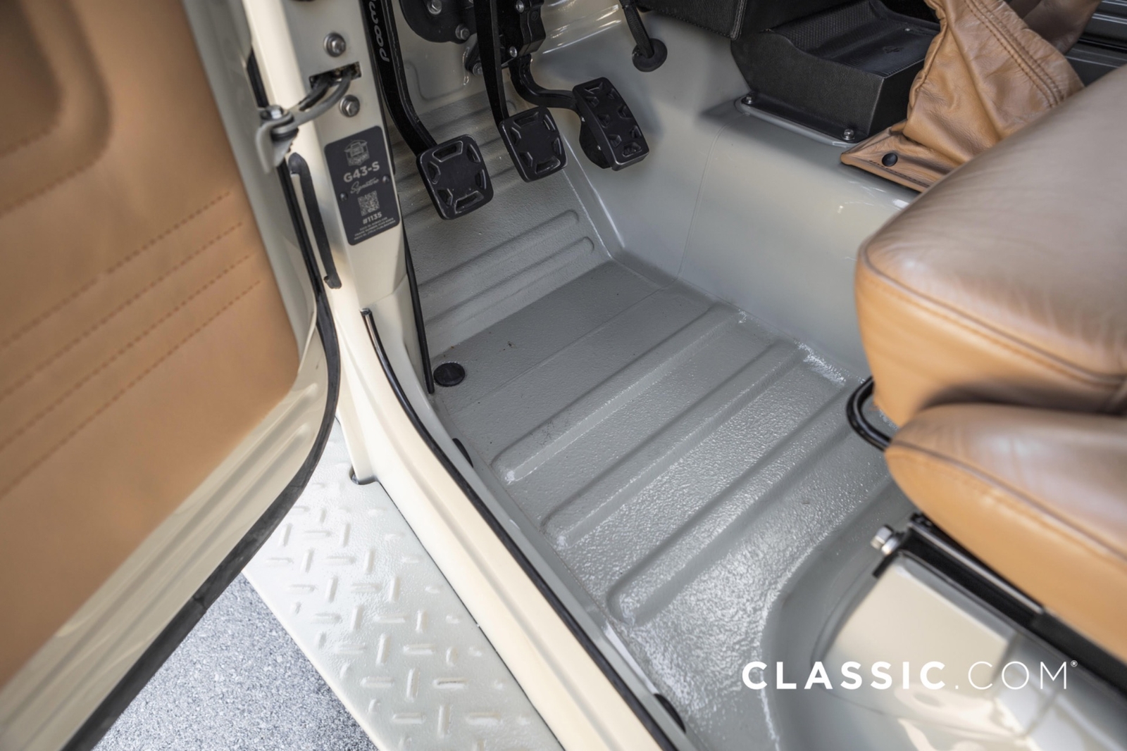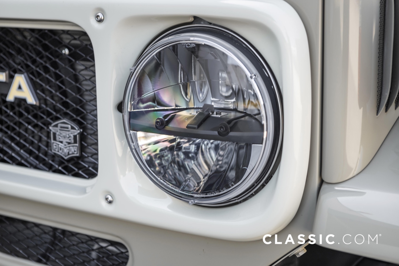 This custom 1980 Toyota Land Cruiser seamlessly blends timeless style with modern technology. This truck was originally a stock FJ43 that underwent a comprehensive custom build by The FJ Company in 2020-2021 and evolved into their G43-S Heritage model and now has just 1,890 km since that time. This transformation involved the integration of all new and modern mechanical components, propelling this classic into the contemporary era and enhancing its ride and capability. Power is created by a custom Toyota 4.0L V6 1GR-FE engine, with an optional Magnuson Supercharger, coupling to all four wheels through a robust five-speed manual transmission. The paint is a subtle yet captivating Beige (464) paired with brown leather Recaro seats that offer style and comfort.