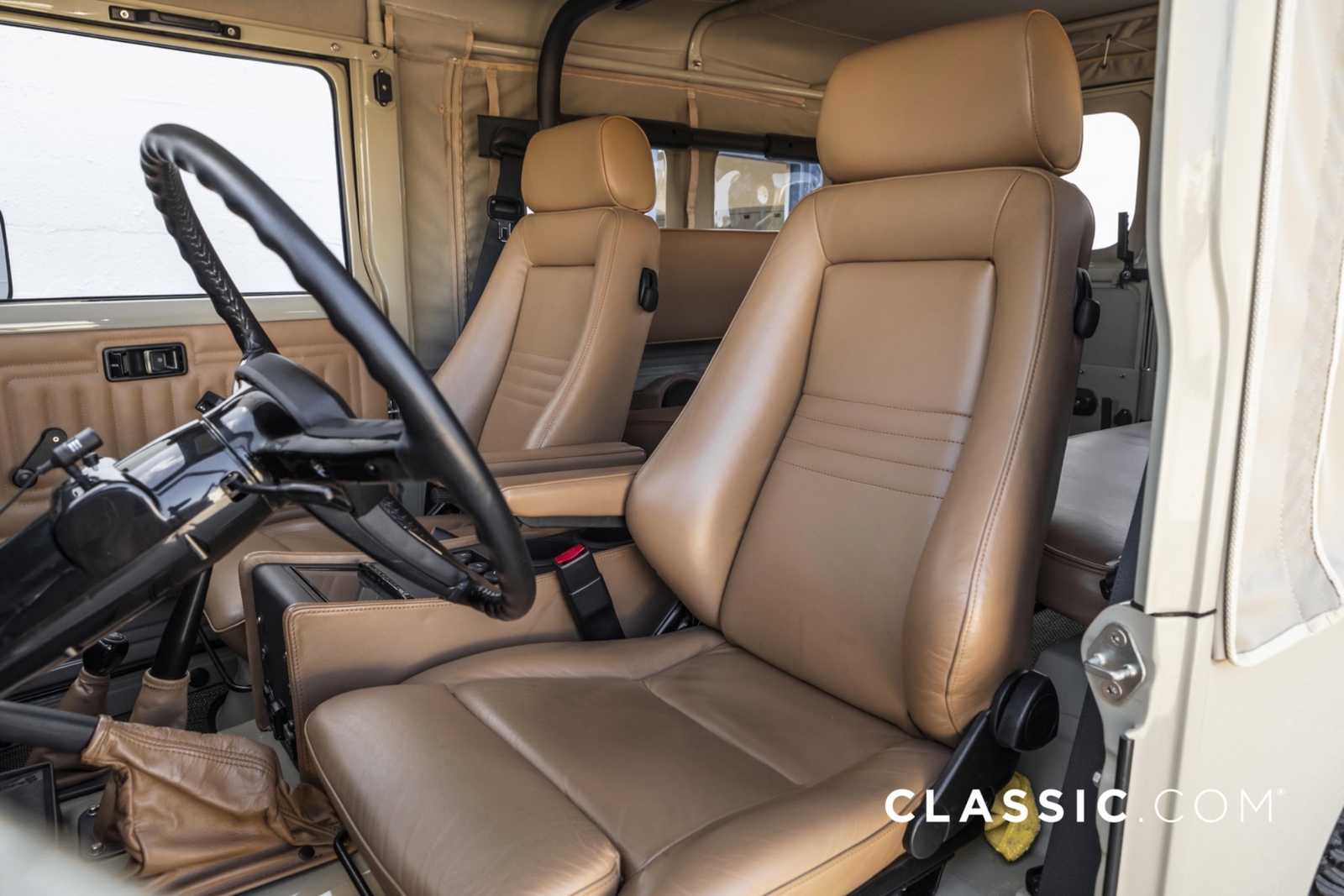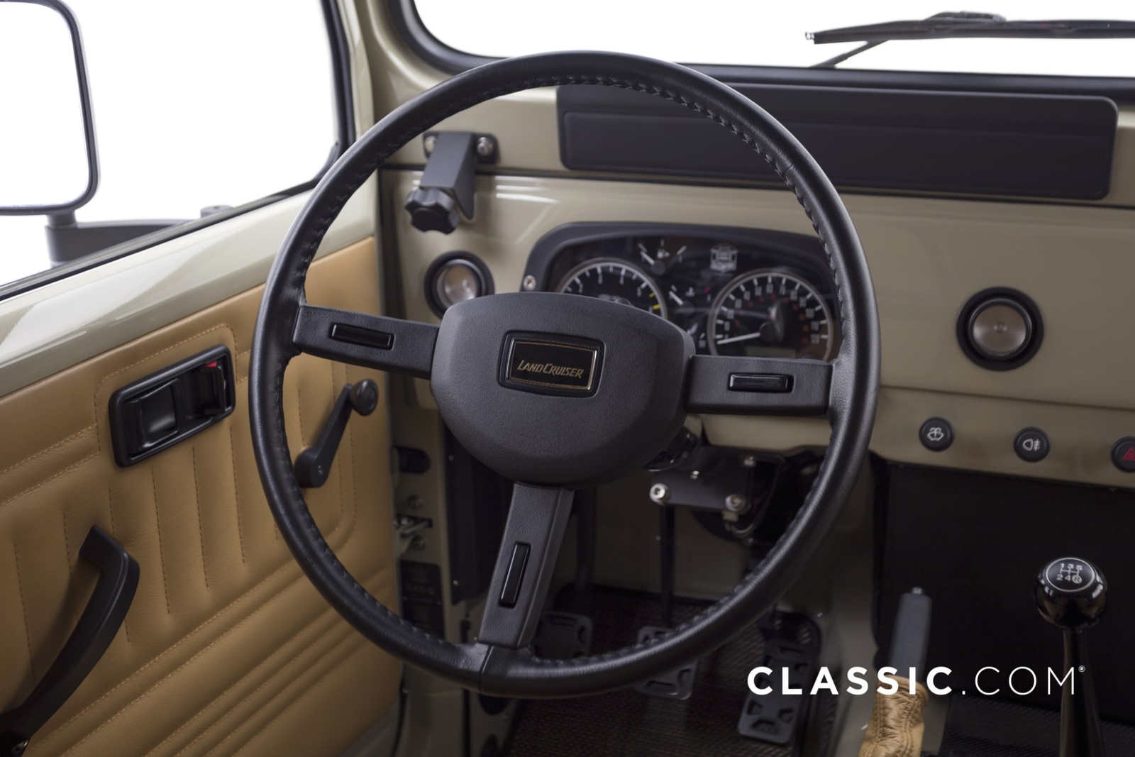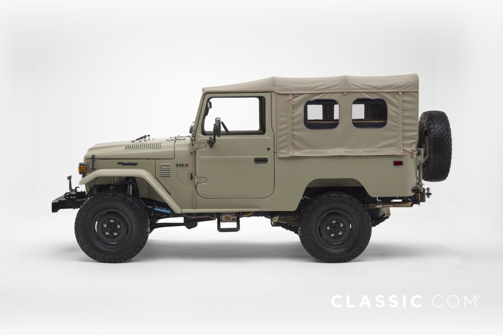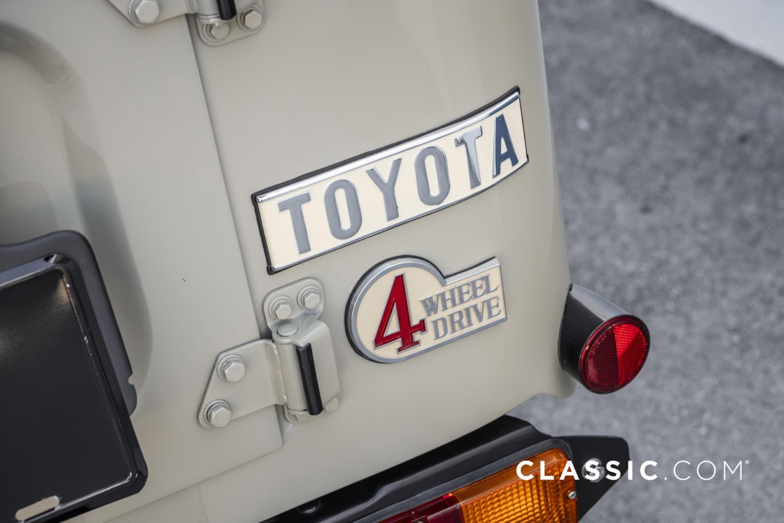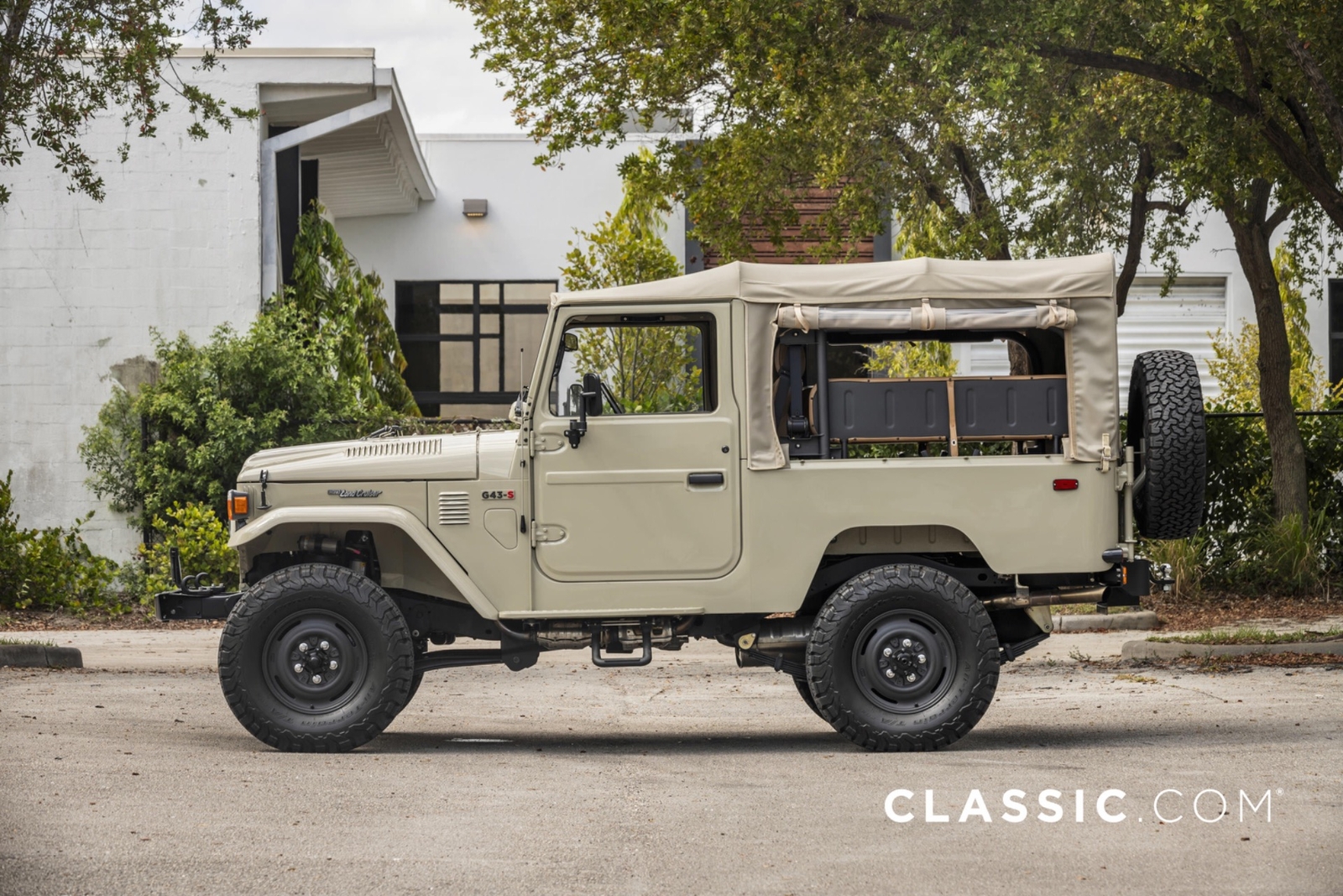 This custom 1980 Toyota Land Cruiser seamlessly blends timeless style with modern technology. This truck was originally a stock FJ43 that underwent a comprehensive custom build by The FJ Company in 2020-2021 and evolved into their G43-S Heritage model and now has just 1,890 km since that time. This transformation involved the integration of all new and modern mechanical components, propelling this classic into the contemporary era and enhancing its ride and capability. Power is created by a custom Toyota 4.0L V6 1GR-FE engine, with an optional Magnuson Supercharger, coupling to all four wheels through a robust five-speed manual transmission. The paint is a subtle yet captivating Beige (464) paired with brown leather Recaro seats that offer style and comfort.