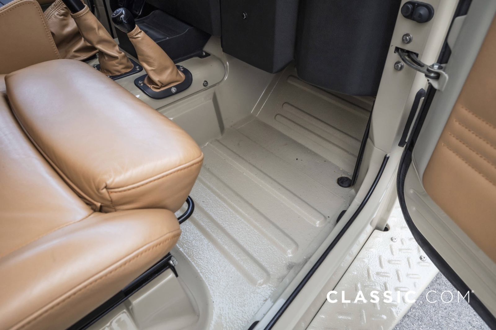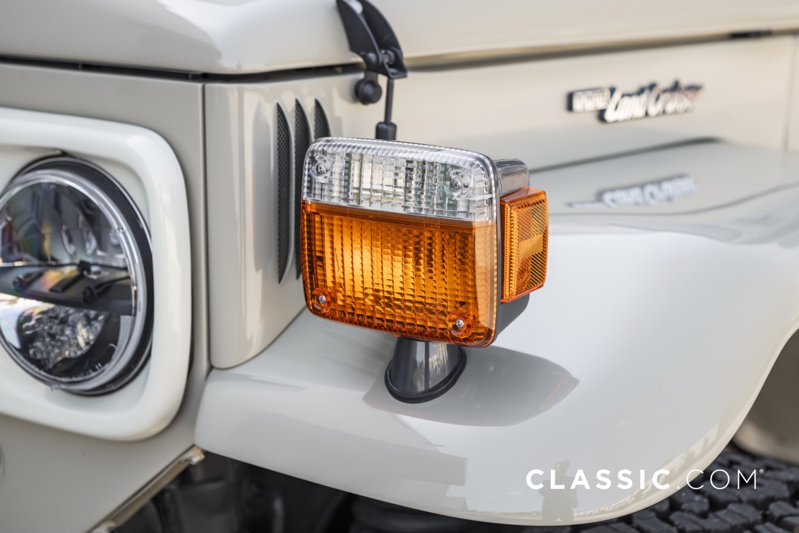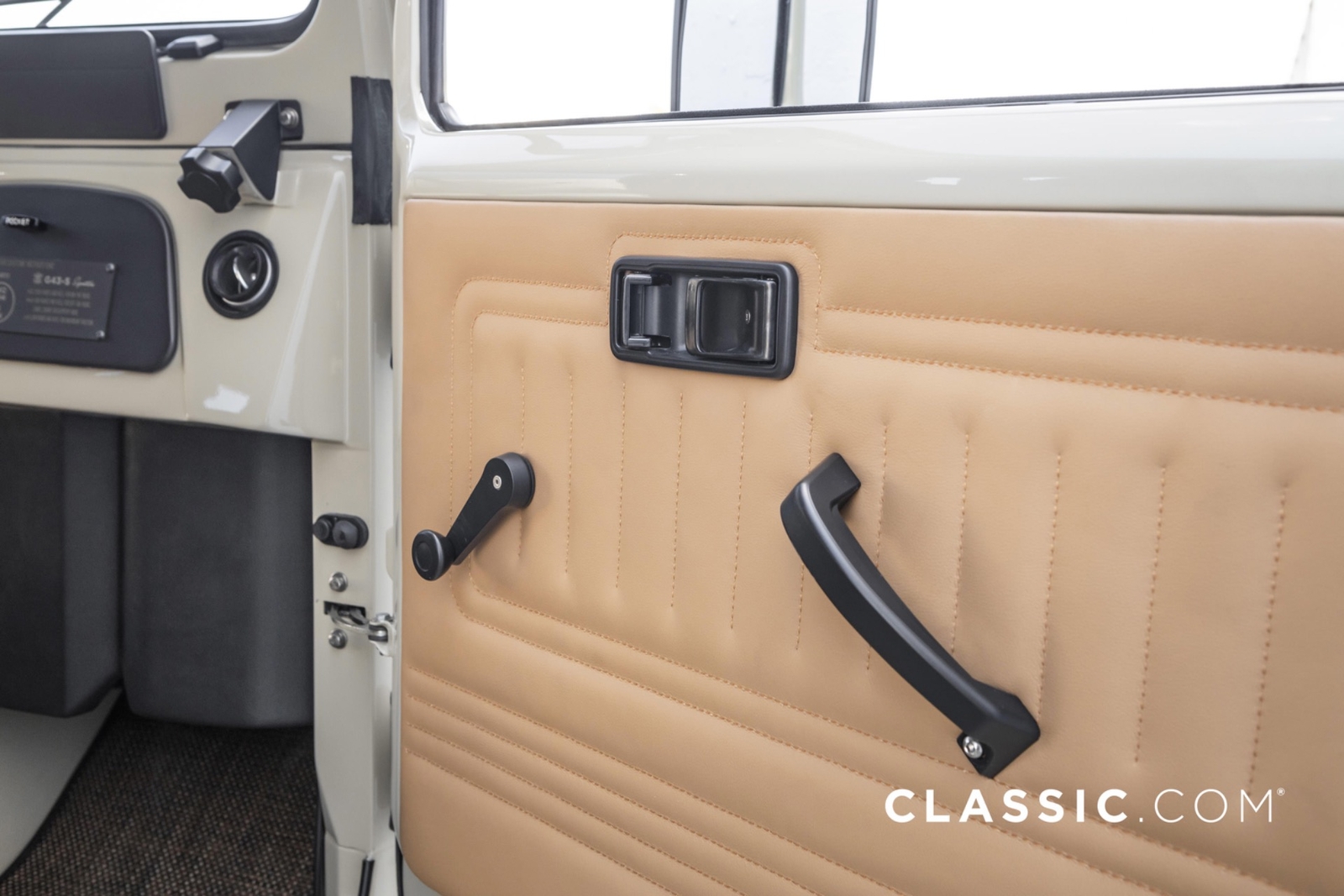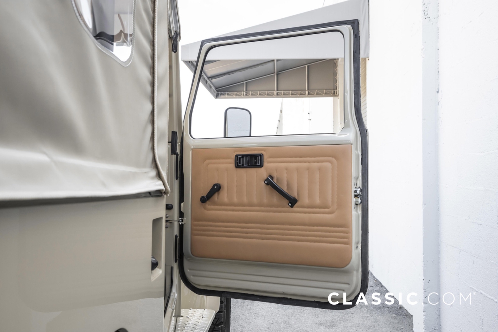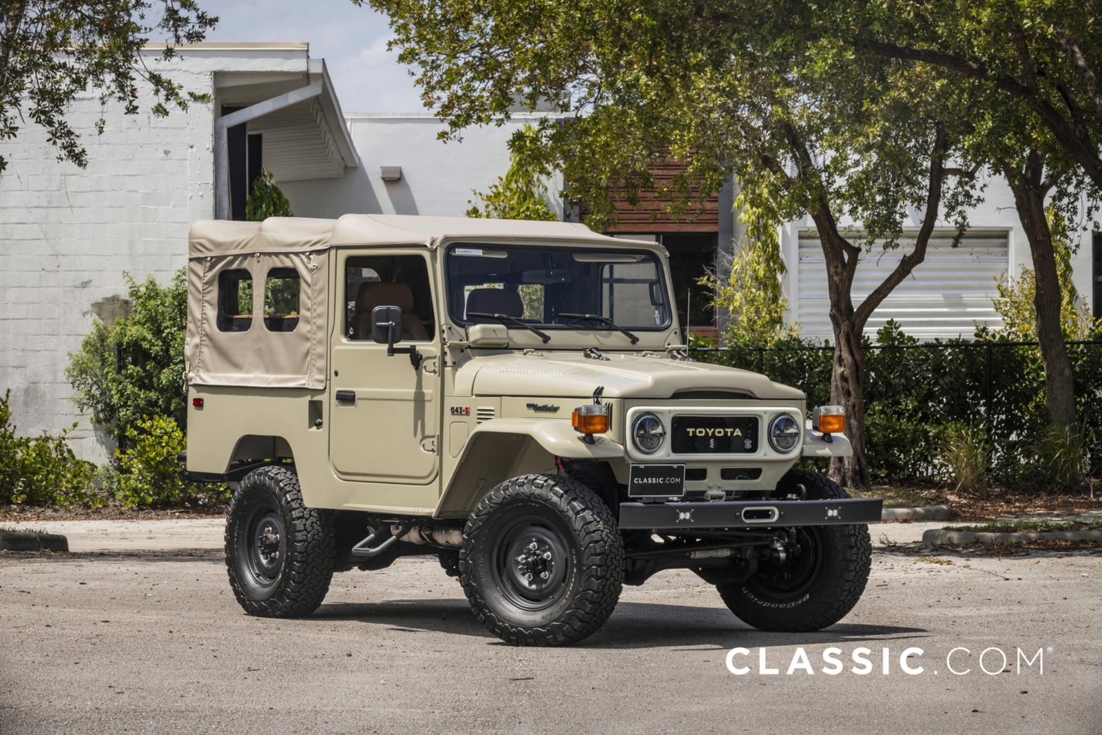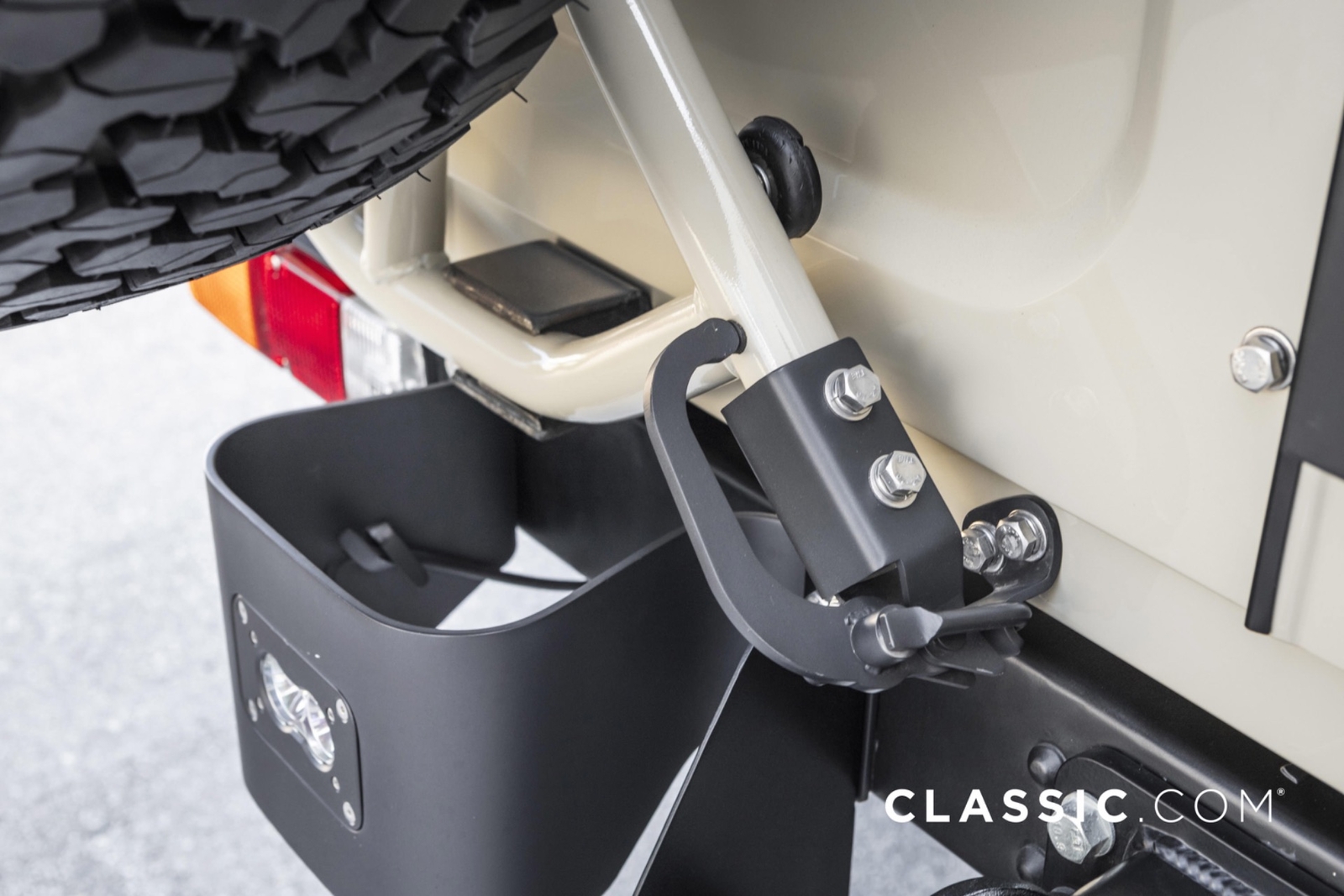 This custom 1980 Toyota Land Cruiser seamlessly blends timeless style with modern technology. This truck was originally a stock FJ43 that underwent a comprehensive custom build by The FJ Company in 2020-2021 and evolved into their G43-S Heritage model and now has just 1,890 km since that time. This transformation involved the integration of all new and modern mechanical components, propelling this classic into the contemporary era and enhancing its ride and capability. Power is created by a custom Toyota 4.0L V6 1GR-FE engine, with an optional Magnuson Supercharger, coupling to all four wheels through a robust five-speed manual transmission. The paint is a subtle yet captivating Beige (464) paired with brown leather Recaro seats that offer style and comfort.