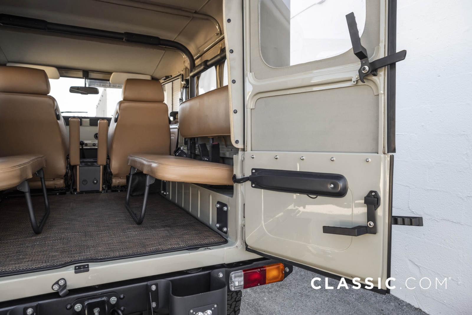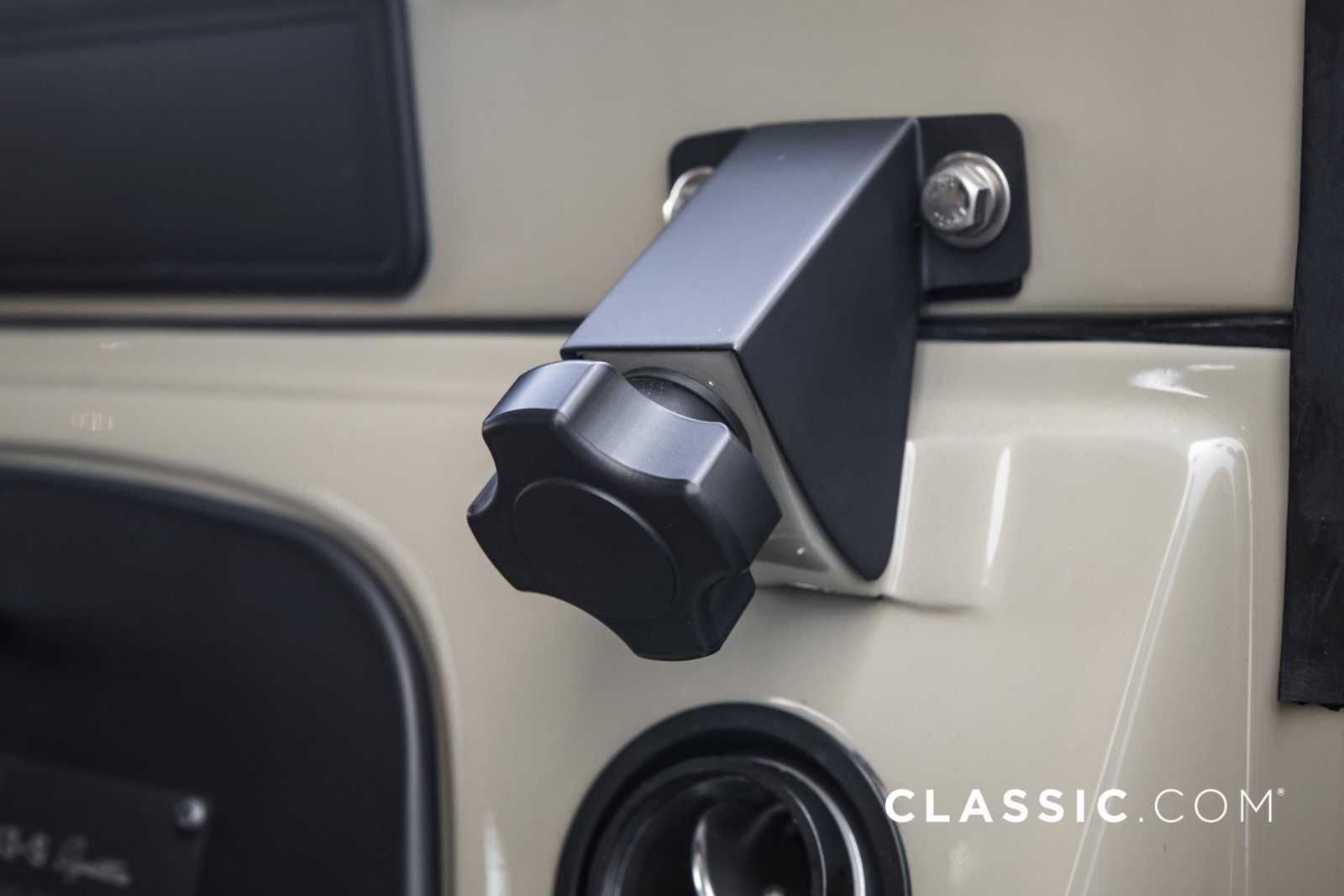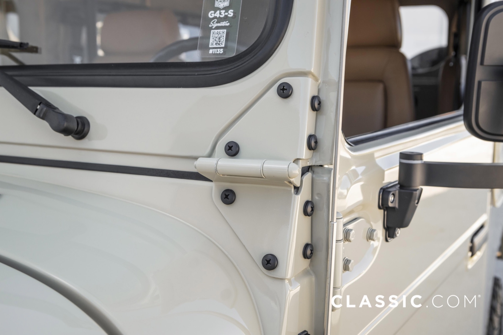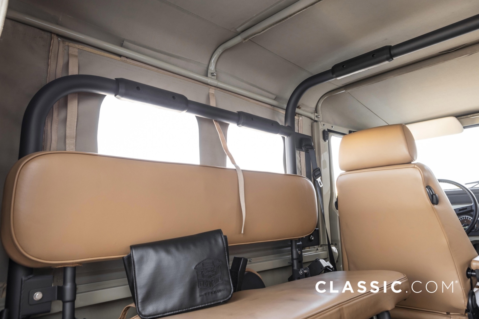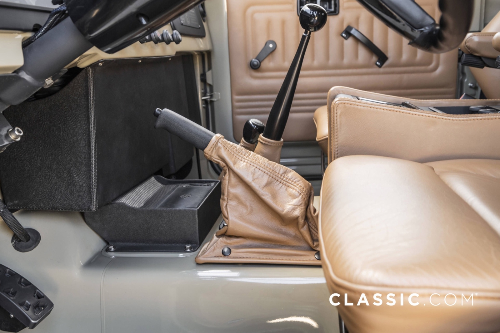 This custom 1980 Toyota Land Cruiser seamlessly blends timeless style with modern technology. This truck was originally a stock FJ43 that underwent a comprehensive custom build by The FJ Company in 2020-2021 and evolved into their G43-S Heritage model and now has just 1,890 km since that time. This transformation involved the integration of all new and modern mechanical components, propelling this classic into the contemporary era and enhancing its ride and capability. Power is created by a custom Toyota 4.0L V6 1GR-FE engine, with an optional Magnuson Supercharger, coupling to all four wheels through a robust five-speed manual transmission. The paint is a subtle yet captivating Beige (464) paired with brown leather Recaro seats that offer style and comfort.