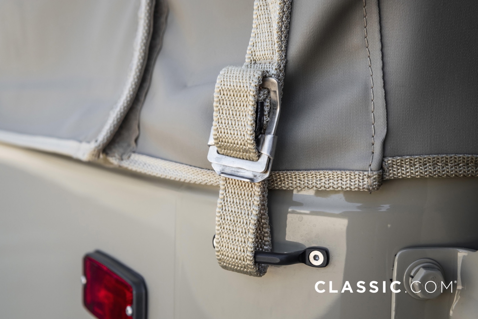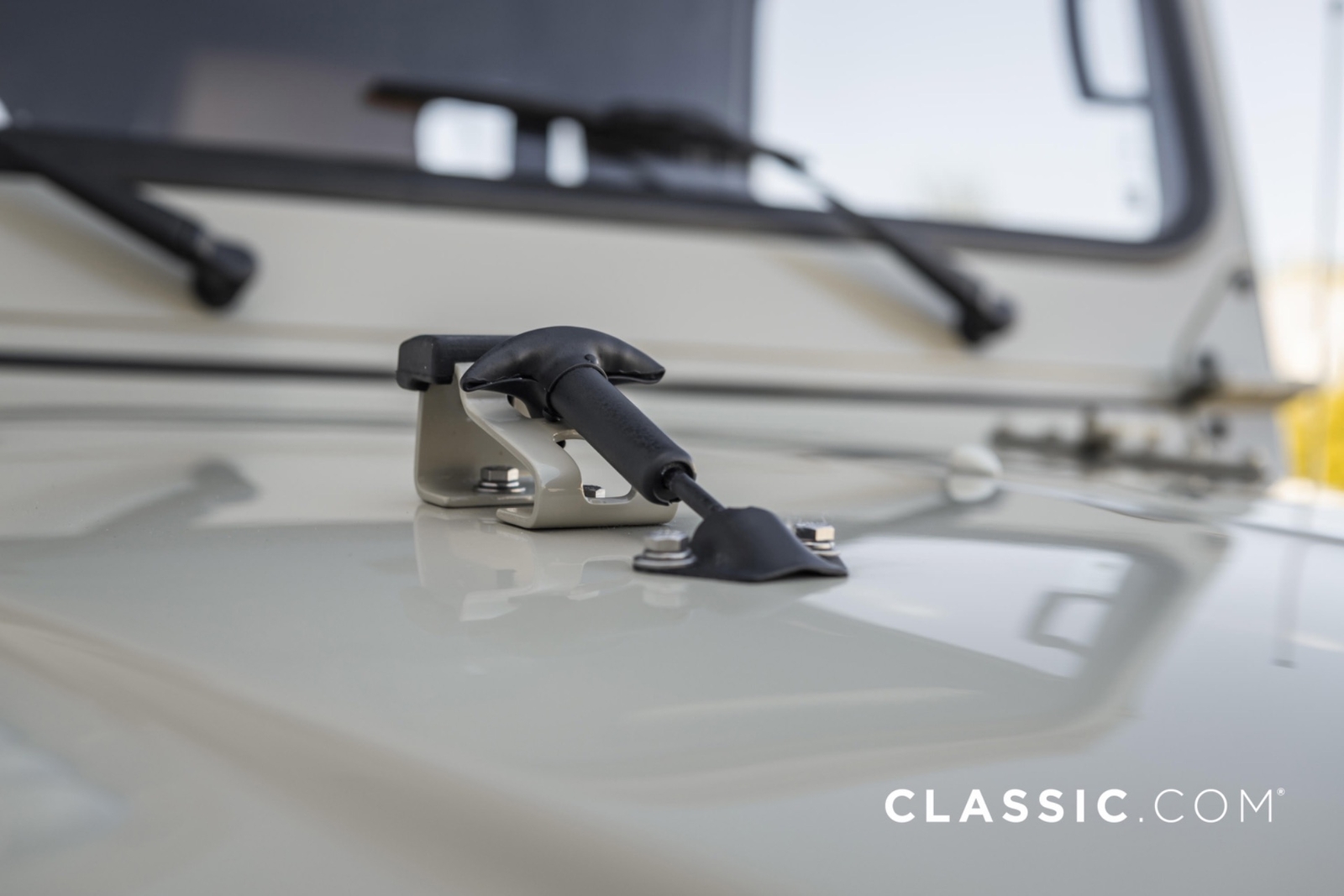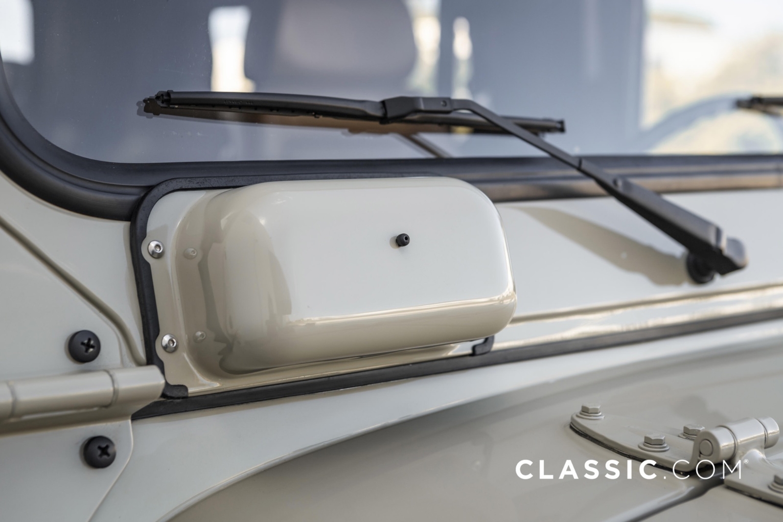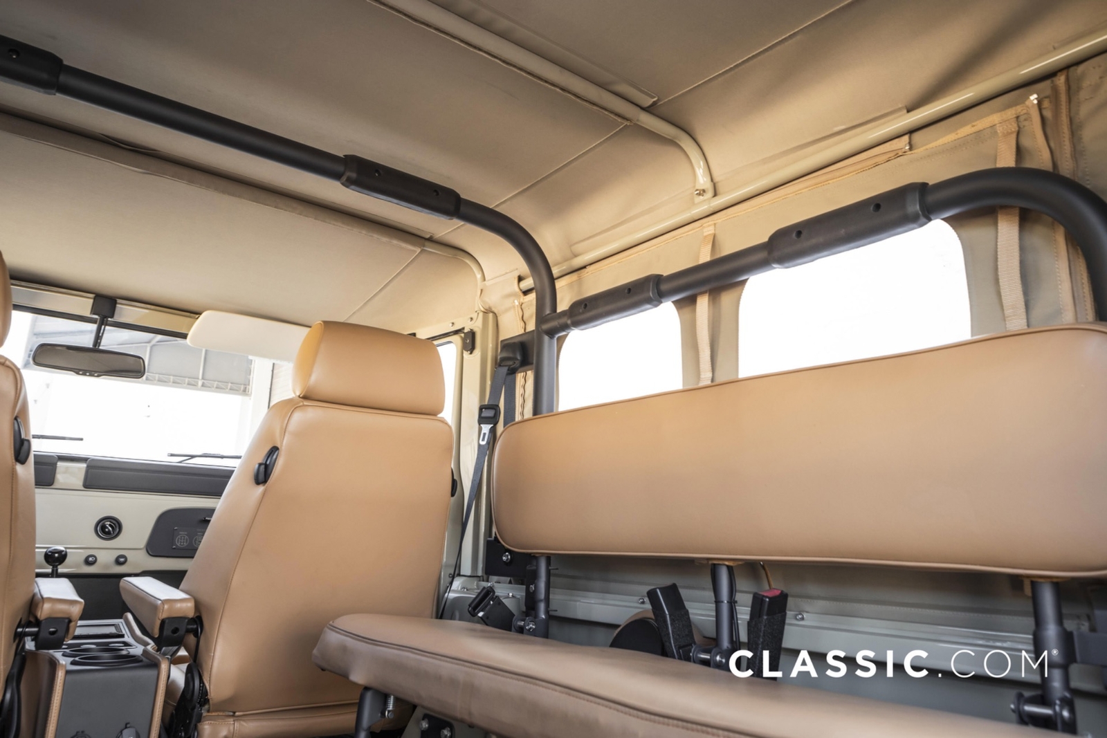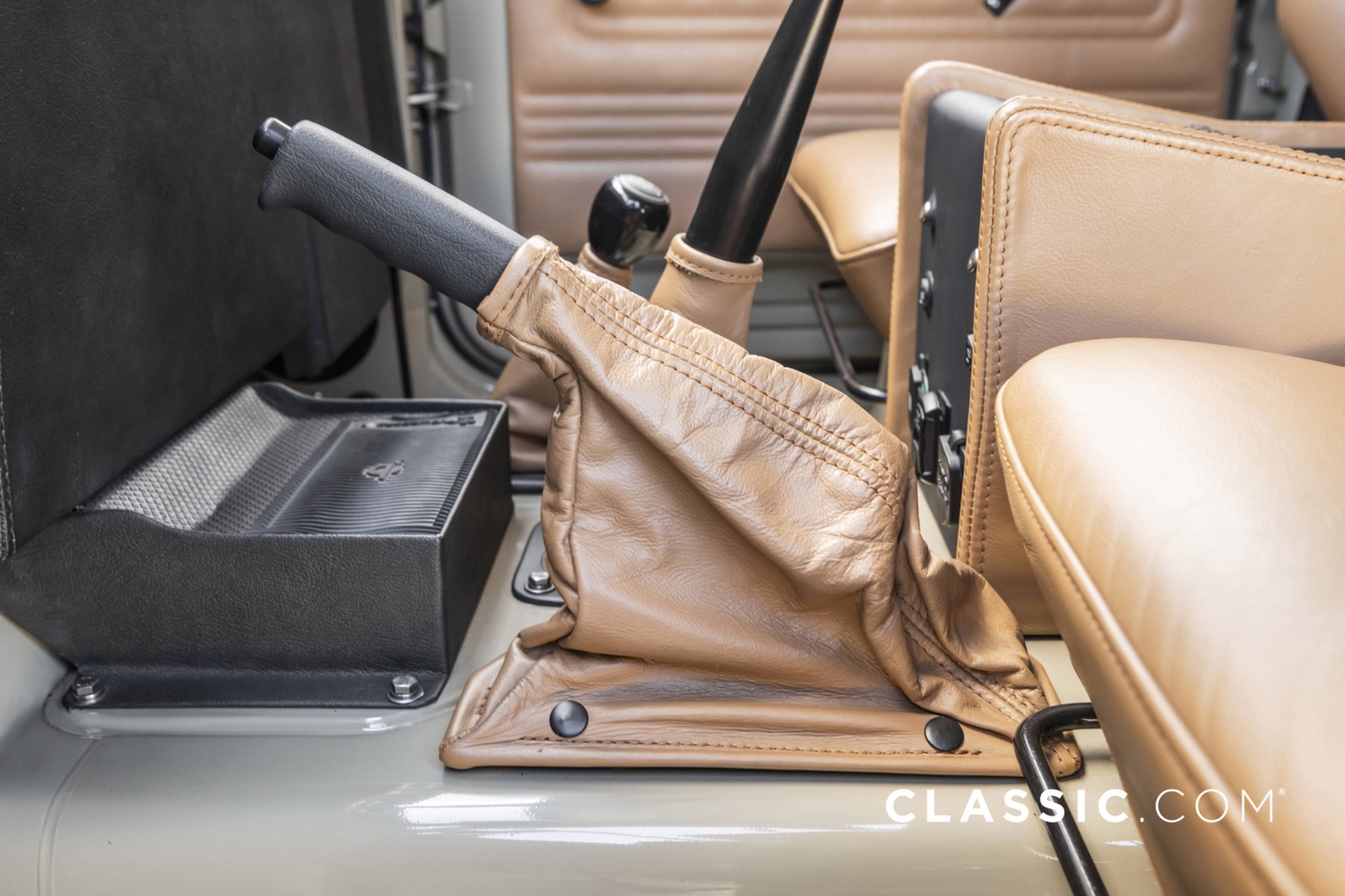 This custom 1980 Toyota Land Cruiser seamlessly blends timeless style with modern technology. This truck was originally a stock FJ43 that underwent a comprehensive custom build by The FJ Company in 2020-2021 and evolved into their G43-S Heritage model and now has just 1,890 km since that time. This transformation involved the integration of all new and modern mechanical components, propelling this classic into the contemporary era and enhancing its ride and capability. Power is created by a custom Toyota 4.0L V6 1GR-FE engine, with an optional Magnuson Supercharger, coupling to all four wheels through a robust five-speed manual transmission. The paint is a subtle yet captivating Beige (464) paired with brown leather Recaro seats that offer style and comfort.
