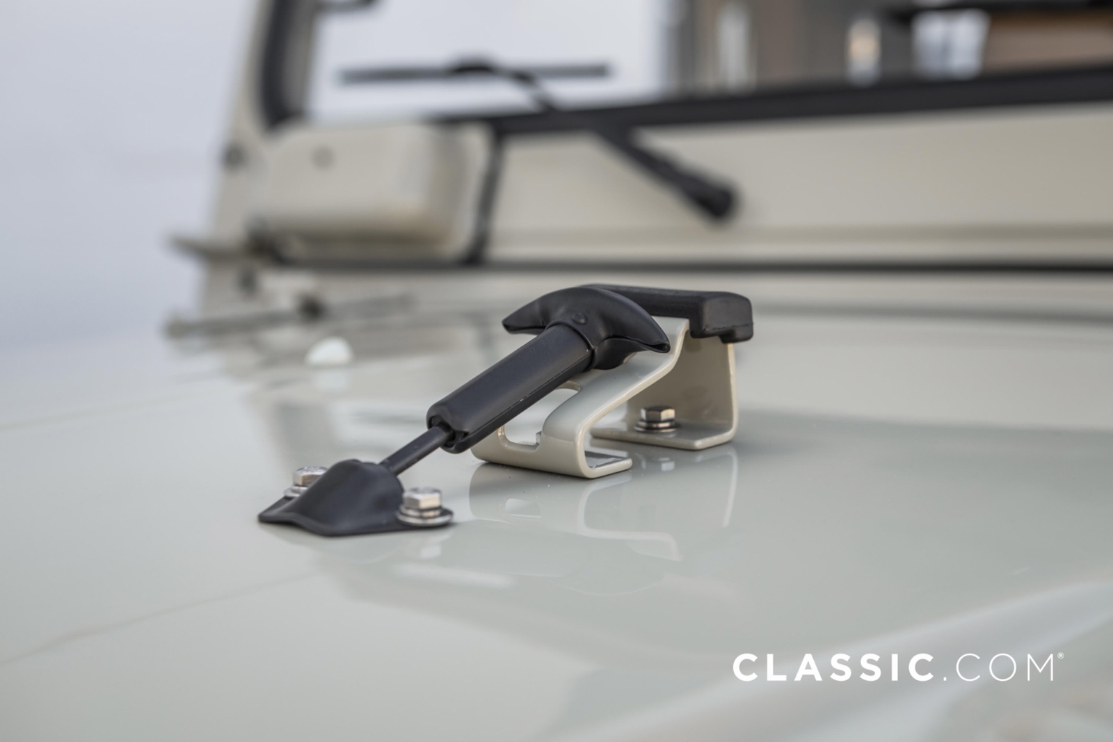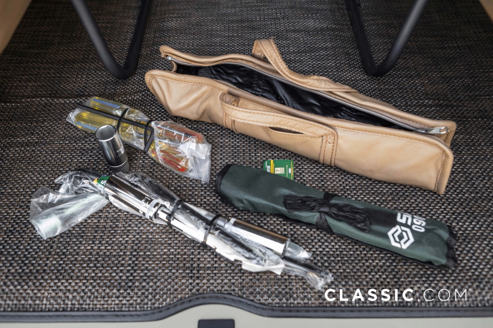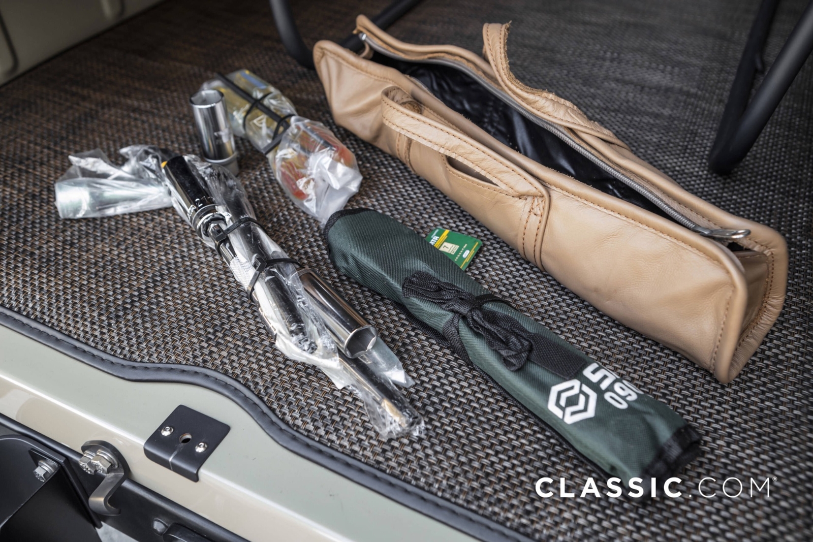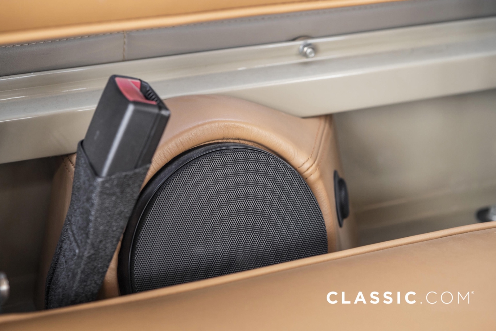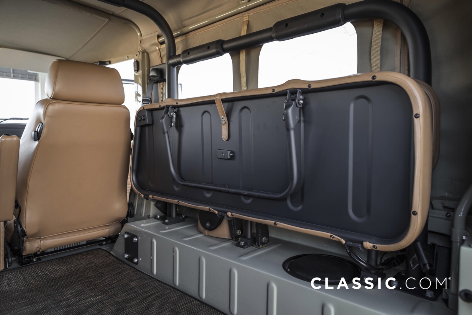 Inside, the vehicle boasts a Vintage Air HVAC system, retractable shoulder belts, and a backup camera, and includes a console-mounted Double-Din stereo equipped with CarPlay/AndroidAuto. Rear inward-facing benches are also covered in brown leather and provide plenty of room for passengers or fold when not in use. The result is a supremely capable custom Land Cruiser that feels equally at home at car shows and around town as it does in the mountains.