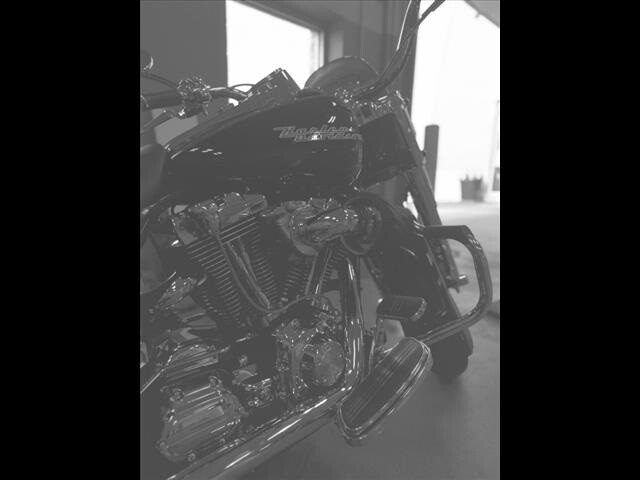 A little history: For 2005, the Road King Custom model makes its second appearance, and one year has done nothing to mellow its in-your-face style and attitude. When this machine first hit the streets, the riding public couldn't take its eyes off the minimalist swept-back chrome visor perched atop a set of pullback beach bars. Moving back, you'll find this custom bagger is dressed up right. Clean leather bags with hidden supports. Slash-cut mufflers. Electro-formed, chromed metal fuel tank emblems. Big, clean front and rear fenders. Rounding off the sweet look are streamlined footboards, passenger pegs, brake pedal, cast and chromed slotted alloy wheels and a tank-mounted stretch chrome console. Though the Road King Custom has much for the eye to see, it was built to see the country.
