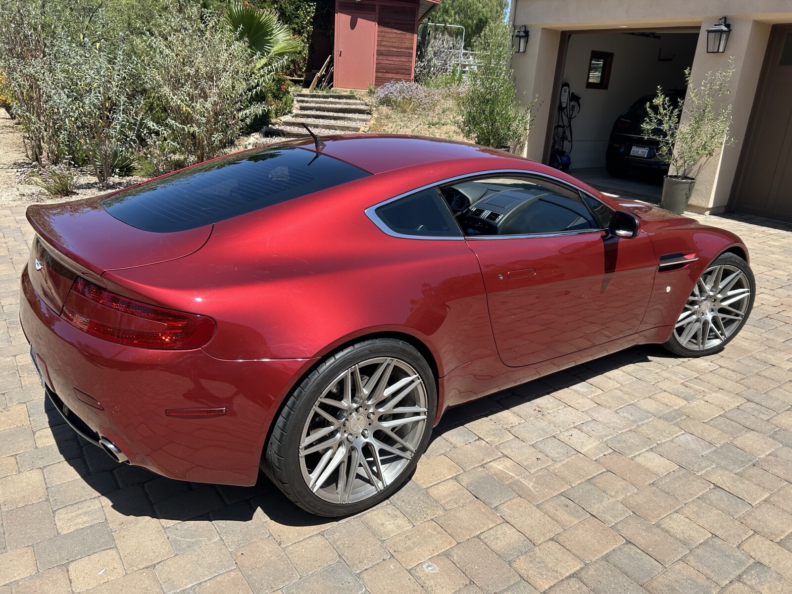 The car has Aston Martin's "Sportshift" automated 6-speed manual transmission, similar to Ferrari and Lamborghini. While not a true automatic transmission, the Sportshift changes gears for you in automatic mode, or you can change gears using the paddles in manual mode. So the car still has a clutch, it's just operated by the car. The original AM clutch was a single plate design with a heavy stock flywheel that tended to wear quickly. I had the clutch replaced with a Velocity AP twin-plate clutch and lightweight flywheel by Aston Martin San Diego for $10,000 in 2022 at 36,500 miles for smoother changing and better wear (will probably last the life of the car). They also replaced the transmission ASM hydraulic lines and gaskets at the same time. The car has upgraded wheels by Bojix Design with VerdeForm VFF01 wheels and Nitto NT555 G2 low profile tires. I have replaced the gas struts for the hood, hatchback and doors so all stay open. Clean vehicle history, no accidents or repairs. Paintwork is excellent. Interior is gray leather with red stitching in beautiful condition. AM car cover included. Shown at the San Diego British Car Club Annual Meeting in 2023 for Aston Martin's 110-year anniversary. Car has always been in Southern California. Front lower control arms and seat heater/coolers replaced under NHTSA recalls in 2010 and 2014.