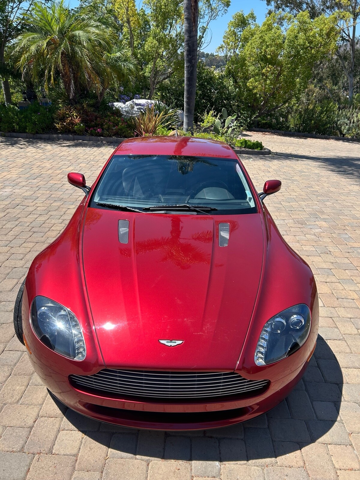 I am selling my beautiful 2007 Toro Red Aston Martin Vantage V8. The Aston Martin is Britain's answer to Ferrari and Lamborghini. The V8 Vantage was introduced in 2003 under Ford's ownership as a two-seat, two-door coupe with a bonded aluminum structure for strength and lightness. In 2004 Aston Martin started producing their own engines in Cologne, Germany, and the 4.3-litre quad-cam 32-valve V8 produces 380 bhp at 7,300 rpm and 409 Nm torque at 5,000 rpm. Acceleration of 0-60 mph in 4.8 secs with top speed of 175 mph. The engine is a dry-sump design allowing it to be mounted lower in the frame for better center of gravity and superior handling.