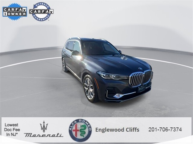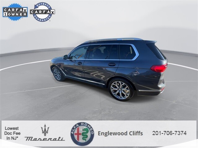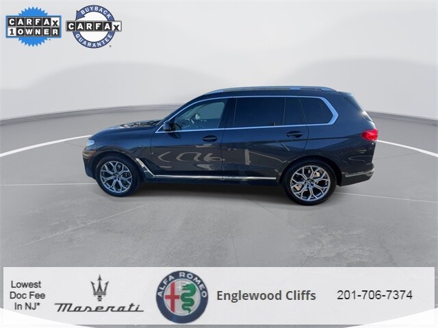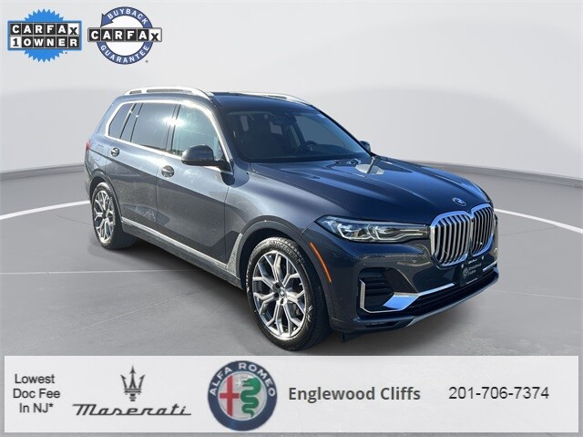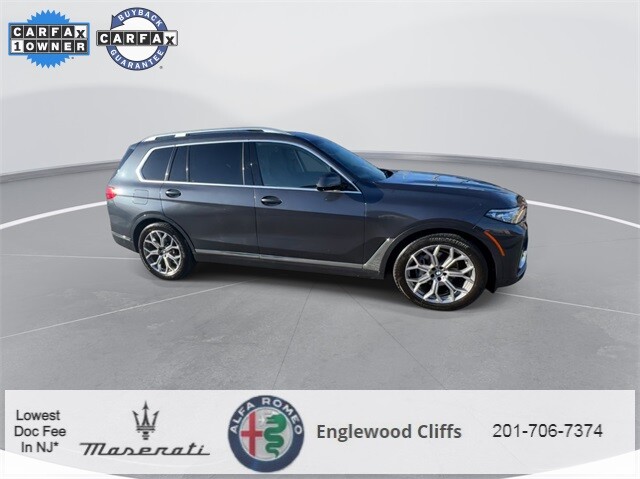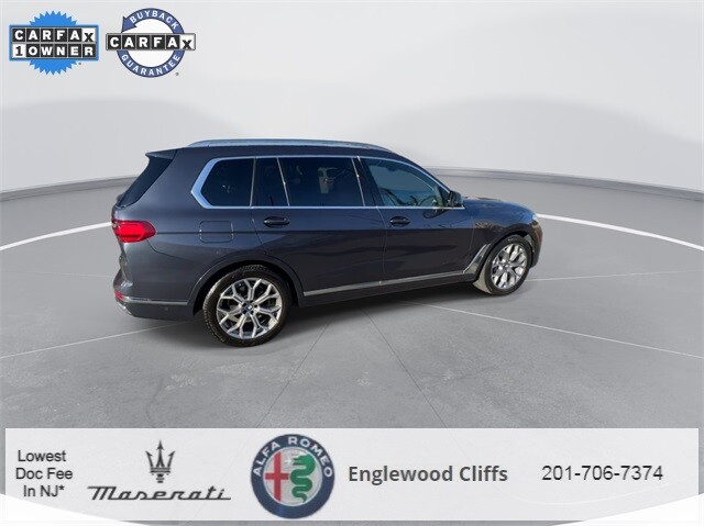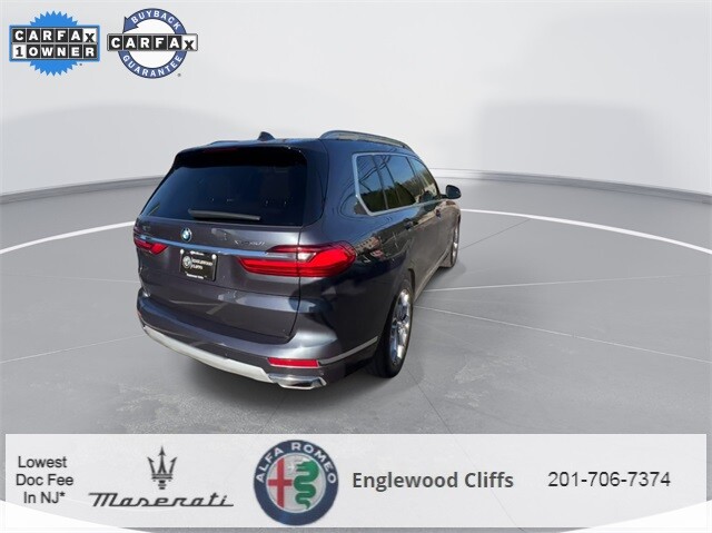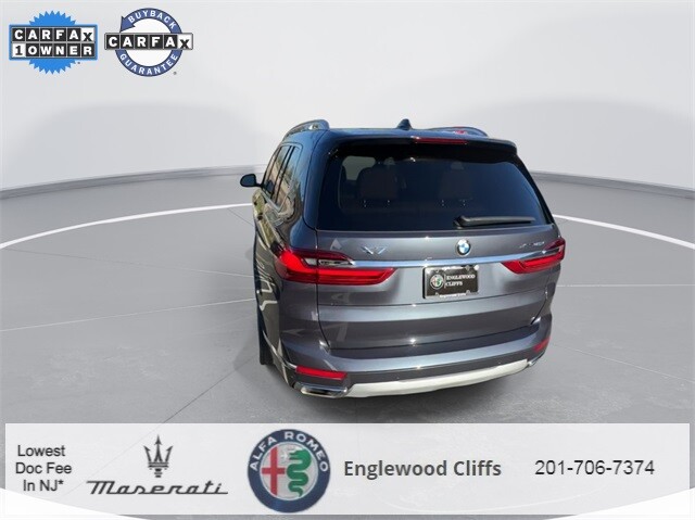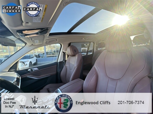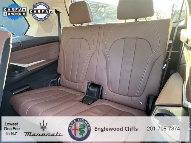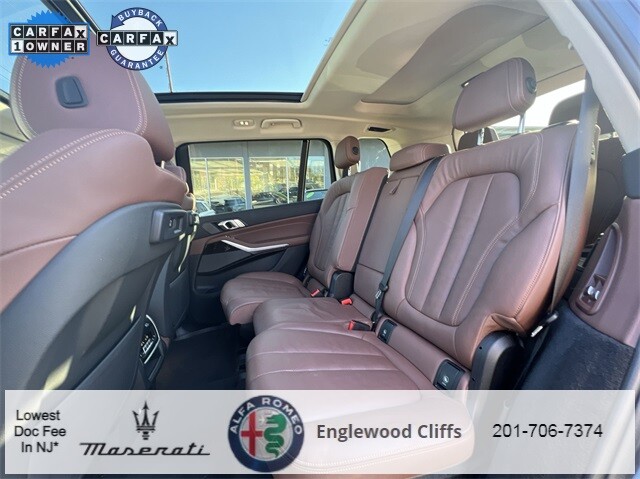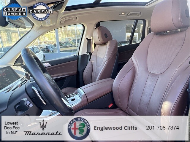 This X7 xDrive40i is nicely equipped with Cold Weather Package (5-Zone Automatic Climate Control and Front & Rear Heated Seats), Connected Package Pro, Parking Assistance Package (Drive Recorder, Parking Assistant Plus, Rear-View Camera, and Surround View w/3D View), Premium Package (DISC) (Gesture Control, harman/kardon Surround Sound System, Head-Up Display, Rear Electric Side Window Shades, and Soft-Close Automatic Doors), AM/FM radio: SiriusXM with 360L, Apple CarPlay & Android Auto Compatibility, Auto High-beam Headlights, Auto tilt-away steering wheel, Auto-dimming door mirrors, Auto-dimming Rear-View mirror, Auto-leveling suspension, Automatic temperature control, Brake assist, Compass, Electronic Stability Control, Exterior Parking Camera Rear, Four wheel independent suspension, Front dual zone A/C, Fully automatic headlights, Head restraints memory, Heated door mirrors, Heated Sport Seats, Heated steering wheel, Hi-Fi Sound System, Illuminated entry, Live Cockpit Pro w/Navi, Lumbar Support, Memory seat, Navigation System, Outside temperature display, Panic alarm, Power door mirrors, Power driver seat, Power Front Seats, Power moonroof, Power passenger seat, Power steering, Power windows, Radio data system, Rain sensing wipers, Rear air conditioning, Rear dual zone A/C, Rear window defroster, Rear window wiper, Reclining 3rd row seat, Remote keyless entry, Security system, SiriusXM w/360L, Speed control, Speed-sensing steering, Steering wheel memory, Steering wheel mounted audio controls, Traction control, Turn signal indicator mirrors, 10 Speakers, 3.64 Axle Ratio, 3rd row seats: split-bench, 4-Wheel Disc Brakes, ABS brakes, Air Conditioning, Alloy wheels, AM/FM Stereo, Apple CarPlay Compatibility, BMW Assist eCall, BMW TeleServices, Bumpers: body-color, ConnectedDrive Services, Delay-off headlights, Driver door bin, Driver vanity mirror, Dual front impact airbags, Dual front side impact airbags, Emergency communication system: BMW Assist eCall, Front anti-roll bar, Front Bucket Seats, Front Center Armrest, Front fog lights, Front reading lights, Garage door transmitter, Genuine wood console insert, Genuine wood dashboard insert, Genuine wood door panel insert, Heated front seats, Knee airbag, Leather Shift Knob, Low tire pressure warning, Occupant sensing airbag, Overhead airbag, Passenger door bin, Passenger vanity mirror, Power adjustable front head restraints, Rear anti-roll bar,