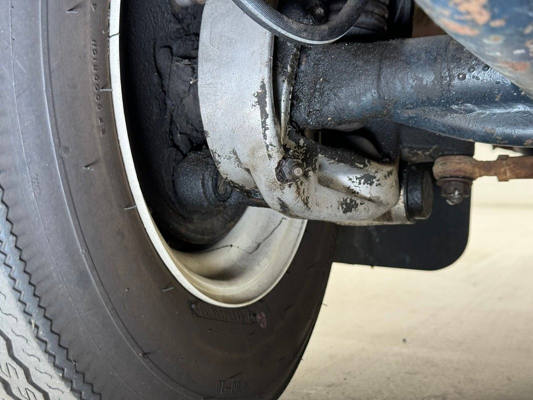 Too small for our lift we can peek underneath and we see driver quality condition with numerous areas of surface rust but nothing of major concern. Road grime and grease by the wheels is not totally unexpected and easily remedied. This little baby BMW has 4-wheel drum brakes, leading arm and coil spring suspension in front, quarter elliptical leaf spring on the narrow back.