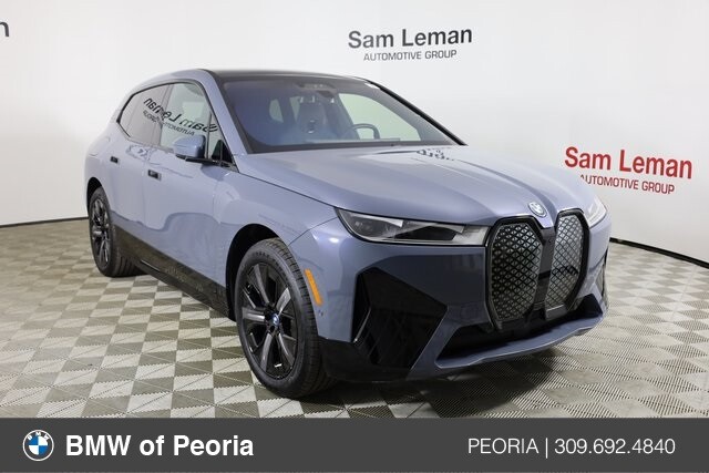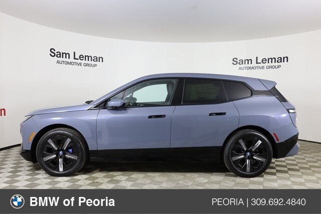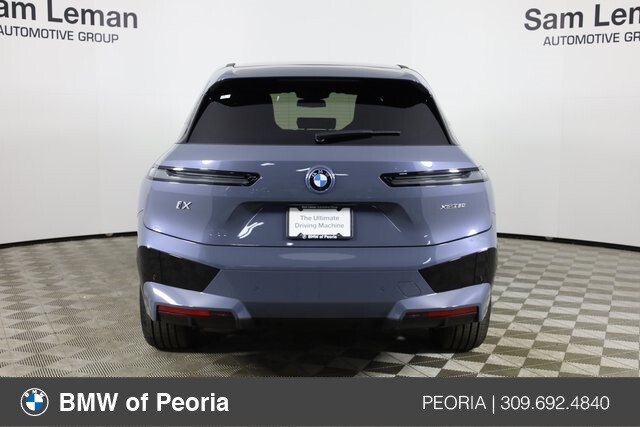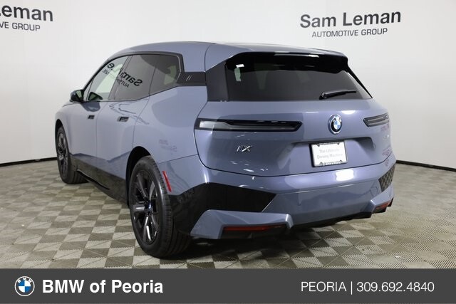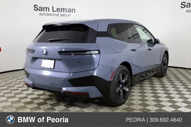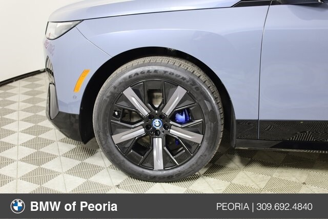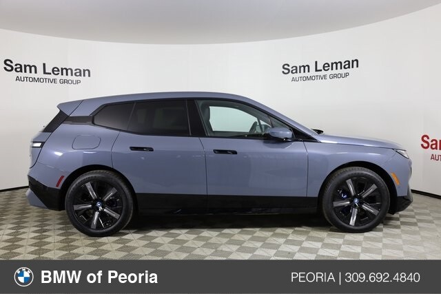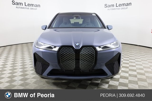 Storm Bay Metallic 2024 BMW iX xDrive50 equipped with All-Wheel Drive / AWD, Premium Package, Driving Assistance Professional Package, Sport Package, Harmon Kardon Surround Sound, Navigation / GPS, Panoramic Sunroof / Moonroof, Side and Top View Backup Camera, Heated Seats, Heated Steering Wheel, 21 Rims, Multi-contour seats, Adaptive Full LED Lights, Park Distance Control, Active Blind Spot Detection, Lane Departure Warning System, Head-up Display, Active Driving Assistant, Active Cruise Control, Connected Package Pro, Live Cockpit Pro, Gesture Control, Apple CarPlay, All Weather Floor Mats, Wheel Locks, FREE 36 Months/36,000 Miles Maintenance, and much more!!