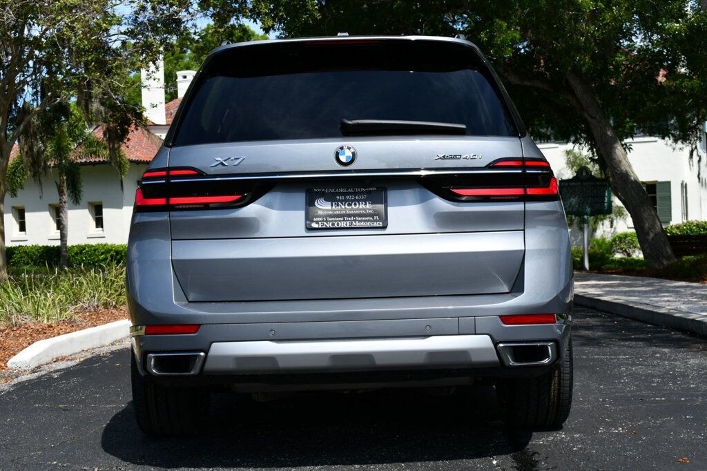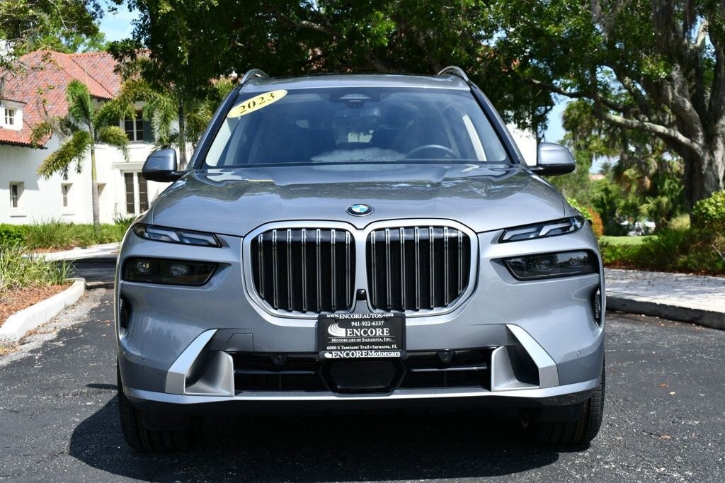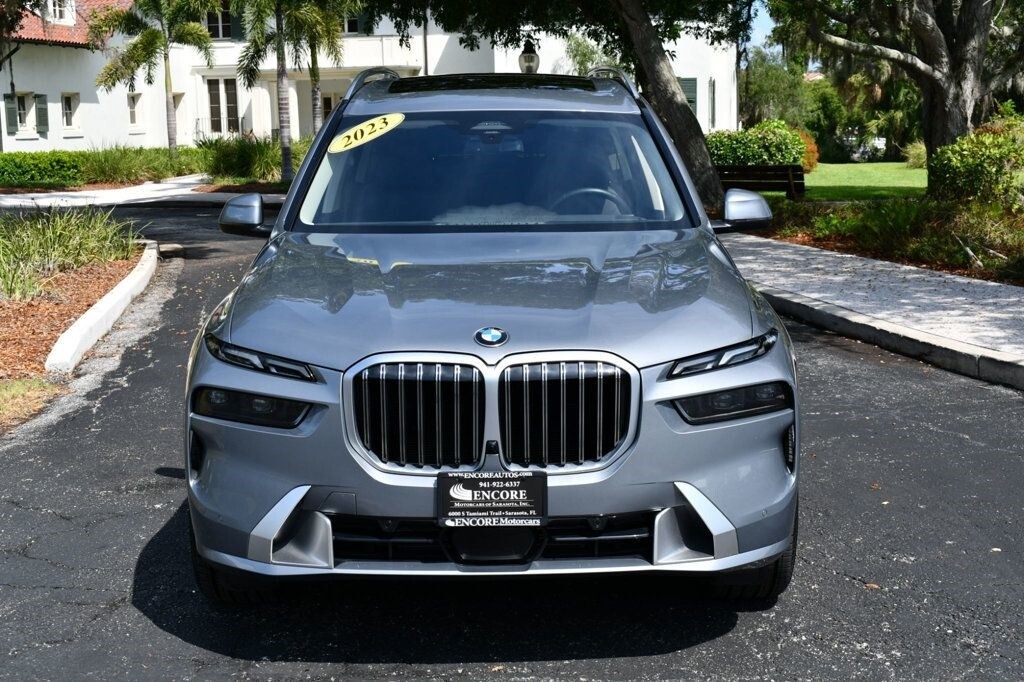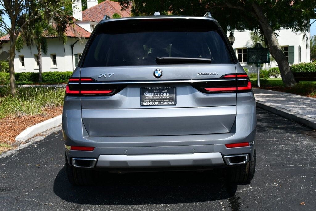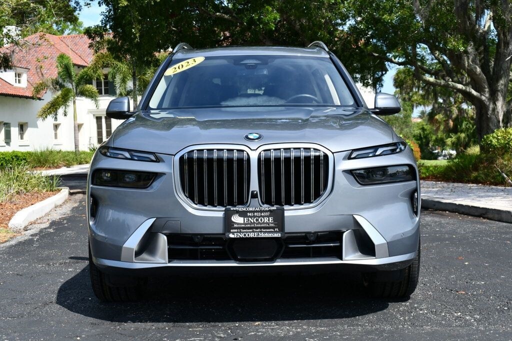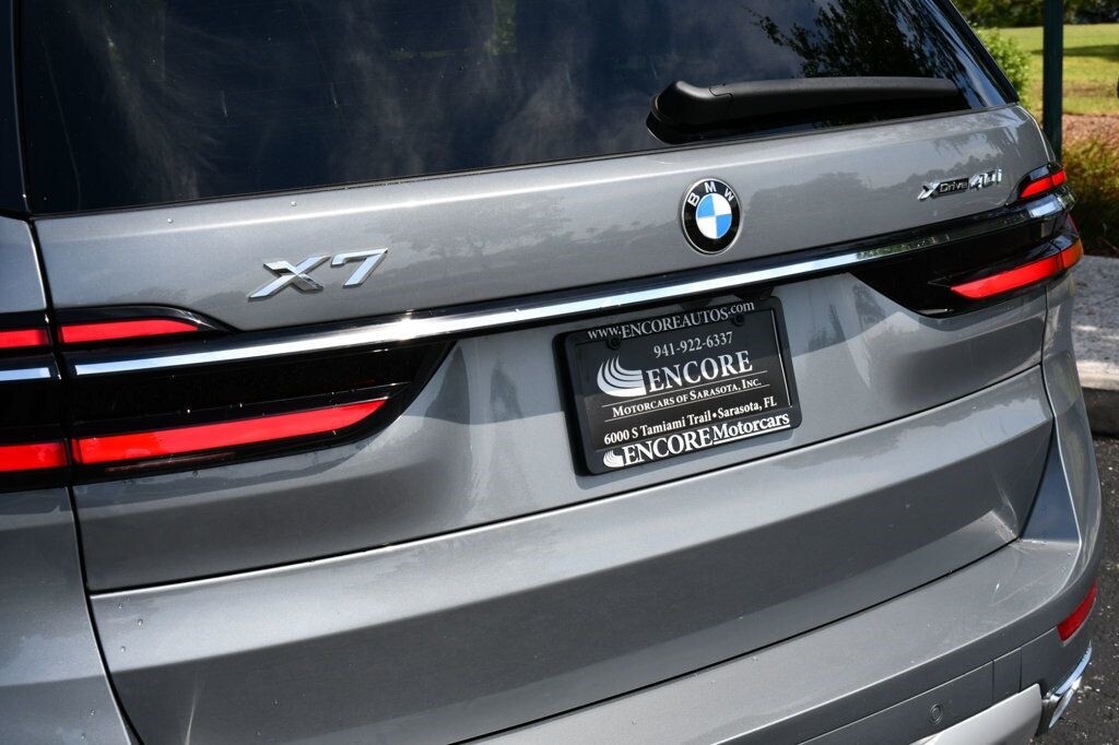 This 2023 BMW X7 4dr xDrive40i Sports Activity Vehicle with Climate Comfort Package features a 3.0L STRAIGHT 6 CYLINDER 6cyl Gasoline engine. It is equipped with a 8 Speed Automatic transmission. The vehicle is Skyscraper Grey Metallic with a Black Leatherette interior. It is offered with the remaining factory warranty. - Air Conditioning, Climate Control, Dual Zone Climate Control, Cruise Control, Tinted Windows, Power Steering, Power Windows, Power Door Locks, Power Mirrors, Leather Steering Wheel, Power Drivers Seat, Power Passenger Seat, Memory Seat Position, Rear Air Conditioning, Wood Trim, Clock, Tachometer, Digital Info Center, Homelink System, Tilt Steering Wheel, Telescoping Steering Wheel, Steering Wheel Radio Controls, Driver Airbag, Passenger Airbag, Side Airbags, Keyless Entry, Security System, Traction Control, Rear Defogger, Intermittent Wipers, AM/FM, Anti-Theft, Sport Package, Leatherette Interior Surface, 3rd Row Seating, Adaptive headlights, Blind Spot Monitor, Bluetooth, Center Arm Rest, Center Console, Child Proof Door Locks, Collision Avoidance System, Cup Holders, Daytime Running Lights, Forward Collision Warning, Front AC Seats, Front Heated Seats, Heads Up Display, Heated Mirrors, Heated Steering Wheel, Lane Departure Warning, Navigation System, Panoramic Roof, Power Brakes, Power Lift Gate, Premium Alloy Wheels, Premium Sound, Rain Sensing Wipers, Rear Heated Seats , Rear Spoiler, Rear Spoiler, Rear Wipers, Remote Trunk Lid, Reverse Camera, Roll Stability Control, Side Curtain Airbags, Sliding Rear Window, Tire Pressure Monitor, Vanity Mirrors -