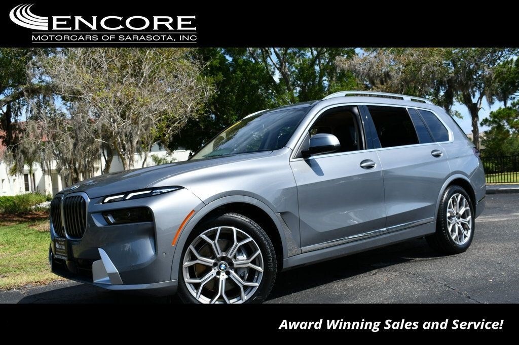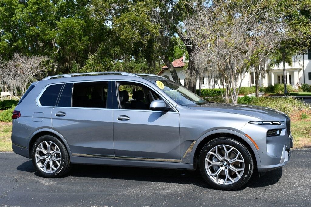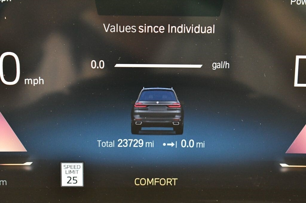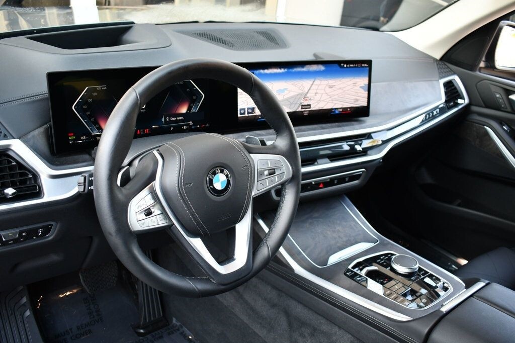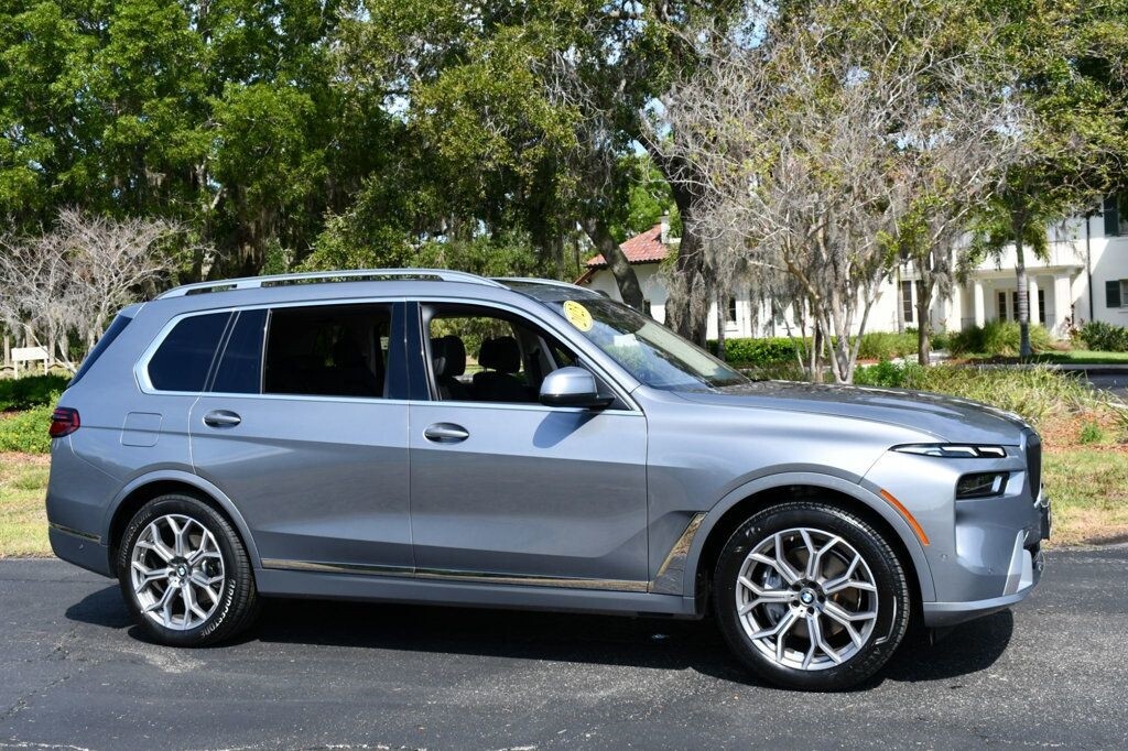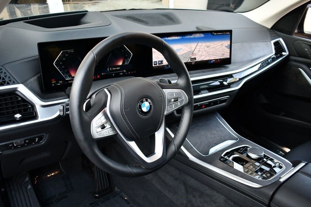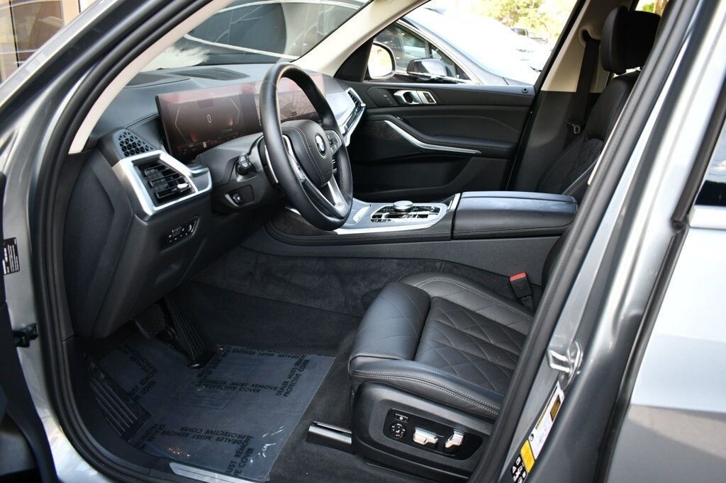 This 2023 BMW X7 4dr xDrive40i Sports Activity Vehicle with Climate Comfort Package features a 3.0L STRAIGHT 6 CYLINDER 6cyl Gasoline engine. It is equipped with a 8 Speed Automatic transmission. The vehicle is Skyscraper Grey Metallic with a Black Leatherette interior. It is offered with the remaining factory warranty. - Air Conditioning, Climate Control, Dual Zone Climate Control, Cruise Control, Tinted Windows, Power Steering, Power Windows, Power Door Locks, Power Mirrors, Leather Steering Wheel, Power Drivers Seat, Power Passenger Seat, Memory Seat Position, Rear Air Conditioning, Wood Trim, Clock, Tachometer, Digital Info Center, Homelink System, Tilt Steering Wheel, Telescoping Steering Wheel, Steering Wheel Radio Controls, Driver Airbag, Passenger Airbag, Side Airbags, Keyless Entry, Security System, Traction Control, Rear Defogger, Intermittent Wipers, AM/FM, Anti-Theft, Sport Package, Leatherette Interior Surface, 3rd Row Seating, Adaptive headlights, Blind Spot Monitor, Bluetooth, Center Arm Rest, Center Console, Child Proof Door Locks, Collision Avoidance System, Cup Holders, Daytime Running Lights, Forward Collision Warning, Front AC Seats, Front Heated Seats, Heads Up Display, Heated Mirrors, Heated Steering Wheel, Lane Departure Warning, Navigation System, Panoramic Roof, Power Brakes, Power Lift Gate, Premium Alloy Wheels, Premium Sound, Rain Sensing Wipers, Rear Heated Seats , Rear Spoiler, Rear Spoiler, Rear Wipers, Remote Trunk Lid, Reverse Camera, Roll Stability Control, Side Curtain Airbags, Sliding Rear Window, Tire Pressure Monitor, Vanity Mirrors -