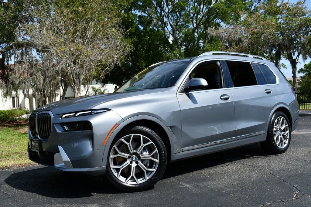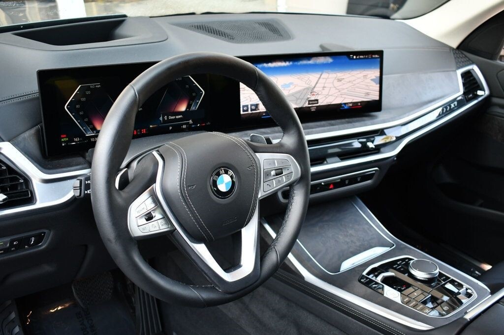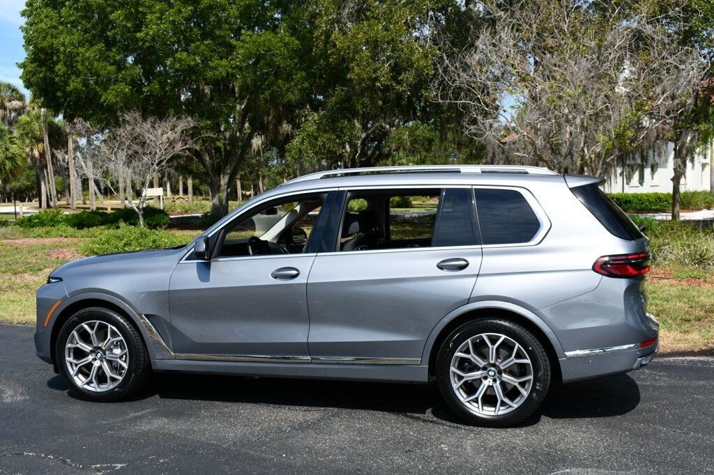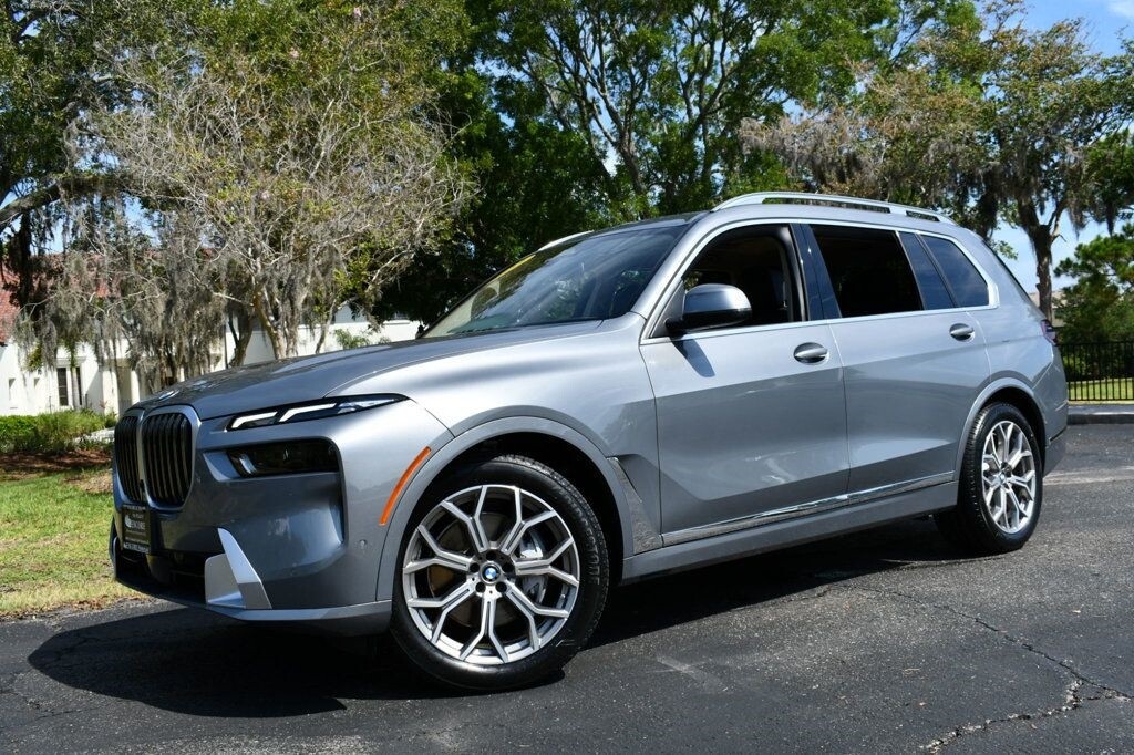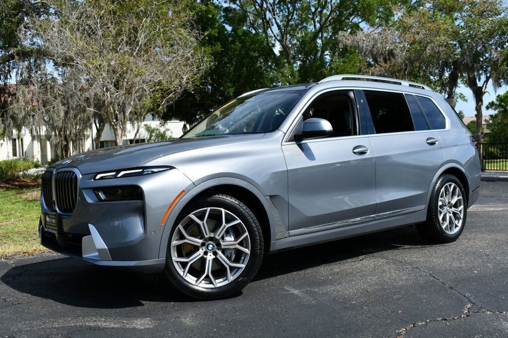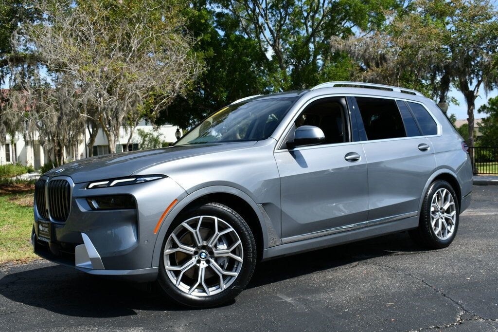 This 2023 BMW X7 4dr xDrive40i Sports Activity Vehicle with Climate Comfort Package features a 3.0L STRAIGHT 6 CYLINDER 6cyl Gasoline engine. It is equipped with a 8 Speed Automatic transmission. The vehicle is Skyscraper Grey Metallic with a Black Leatherette interior. It is offered with the remaining factory warranty. - Air Conditioning, Climate Control, Dual Zone Climate Control, Cruise Control, Tinted Windows, Power Steering, Power Windows, Power Door Locks, Power Mirrors, Leather Steering Wheel, Power Drivers Seat, Power Passenger Seat, Memory Seat Position, Rear Air Conditioning, Wood Trim, Clock, Tachometer, Digital Info Center, Homelink System, Tilt Steering Wheel, Telescoping Steering Wheel, Steering Wheel Radio Controls, Driver Airbag, Passenger Airbag, Side Airbags, Keyless Entry, Security System, Traction Control, Rear Defogger, Intermittent Wipers, AM/FM, Anti-Theft, Sport Package, Leatherette Interior Surface, 3rd Row Seating, Adaptive headlights, Blind Spot Monitor, Bluetooth, Center Arm Rest, Center Console, Child Proof Door Locks, Collision Avoidance System, Cup Holders, Daytime Running Lights, Forward Collision Warning, Front AC Seats, Front Heated Seats, Heads Up Display, Heated Mirrors, Heated Steering Wheel, Lane Departure Warning, Navigation System, Panoramic Roof, Power Brakes, Power Lift Gate, Premium Alloy Wheels, Premium Sound, Rain Sensing Wipers, Rear Heated Seats , Rear Spoiler, Rear Spoiler, Rear Wipers, Remote Trunk Lid, Reverse Camera, Roll Stability Control, Side Curtain Airbags, Sliding Rear Window, Tire Pressure Monitor, Vanity Mirrors -