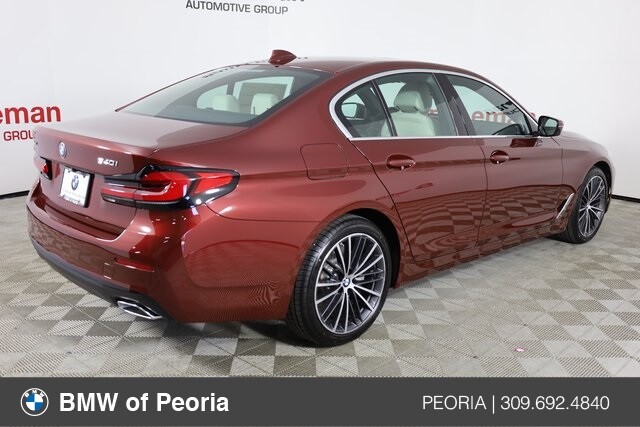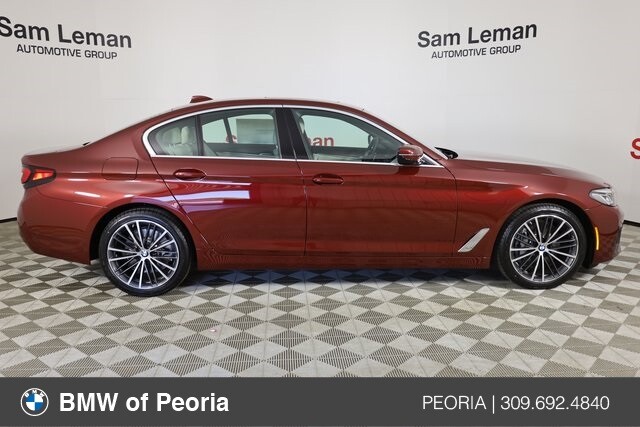 Aventurin Red Metallic 2023 BMW 5 Series 540i xDrive equipped with Ivory White Dakota Leather Upholstery, Navigation / GPS, All-Wheel Drive / AWD, Premium Package, Harmon Kardon Surround Sound, Sunroof / Moonroof, Rear View / Backup Camera, Heated Seats, Heated Steering Wheel, 19 Rims, LED Headlights, Park Distance Control, Active Blind Spot Detection, Lane Departure Warning System, Head-up Display, Wireless Charging, Remote Engine Start, Remote Keyless Entry, Rain Sensing Wipers, Hands Free Bluetooth and USB Audio Connection, FREE 36 Months/36,000 Miles Maintenance, and much more!!