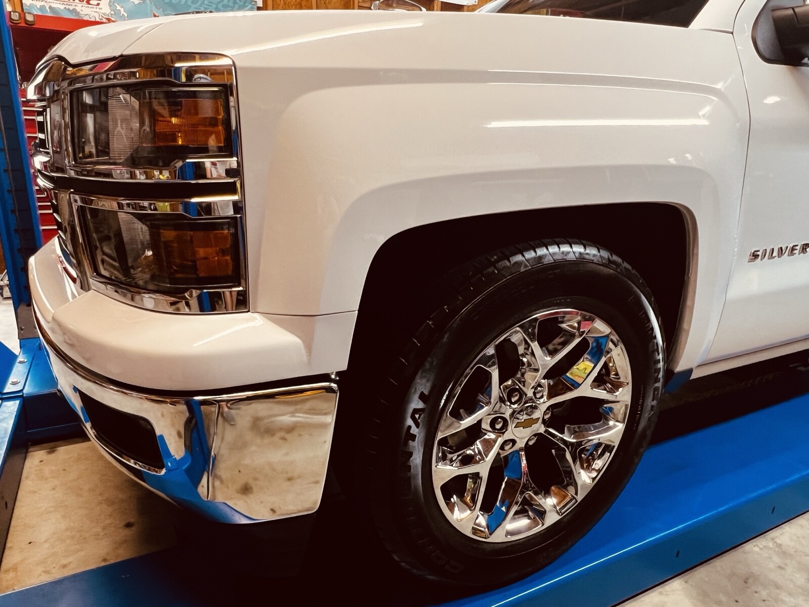 I have lowered the truck with all the right parts. The rear has McGauphys 2” dropped leaf springs and 2” rear shackles for a total of 4” in the rear. Also used were McGauphys dropped rear shocks. It rides and handles just like it did before it was lowered. Also installed were 2” drop spindles on the front, and then had it aligned as well. There was nothing else modified. NO C-Notch. The wheels are 20 inch Chrome “Snowflake “ wheels and the tires are Continental.