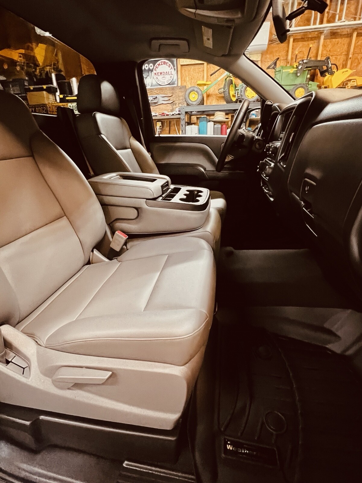 WeatherTech floor mats, rear window defogger, split bench seats. The rest of the truck is super clean but the interior is dang near flawless. You truly have to see it in person to believe just how clean it is on the inside.