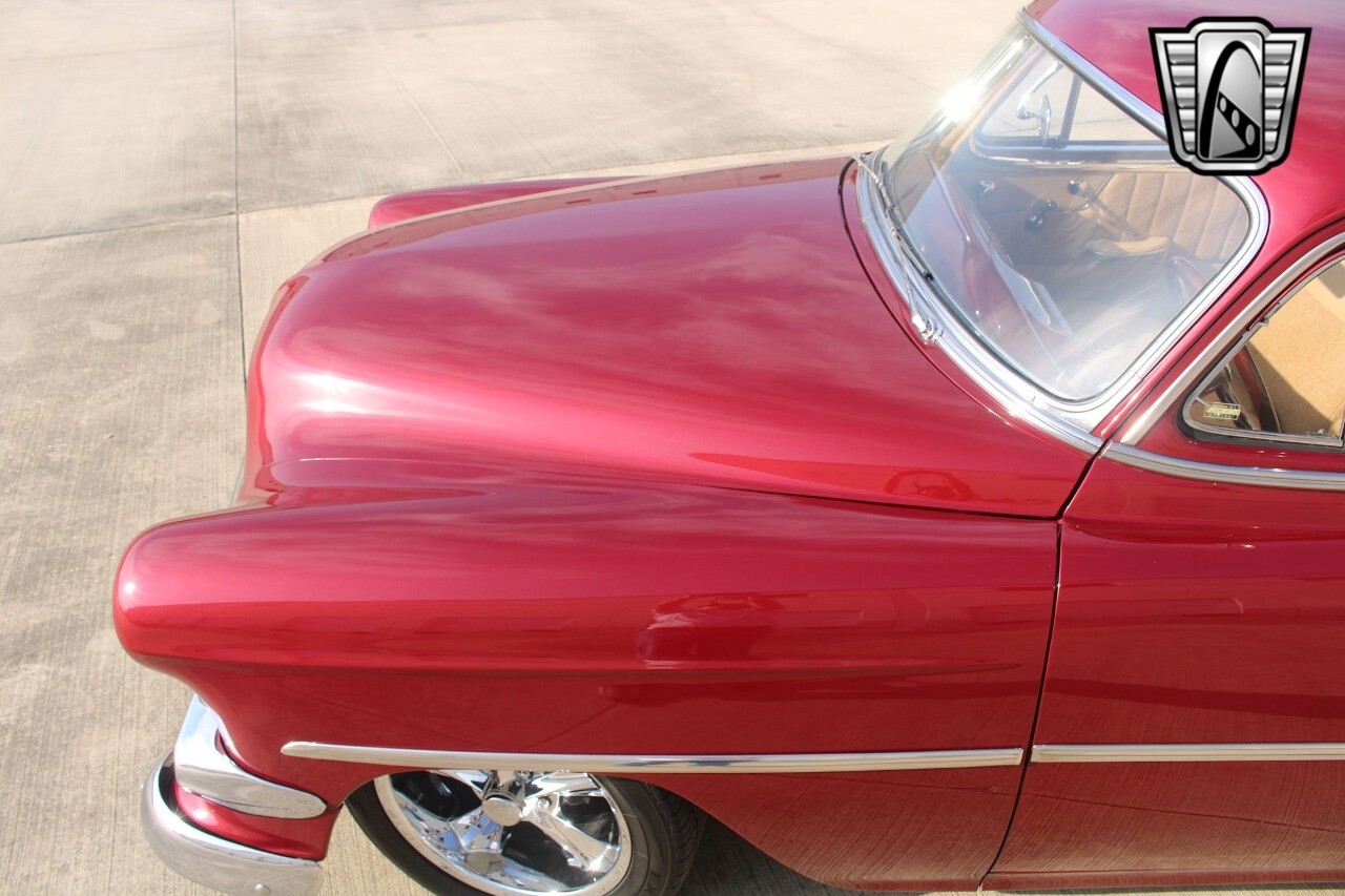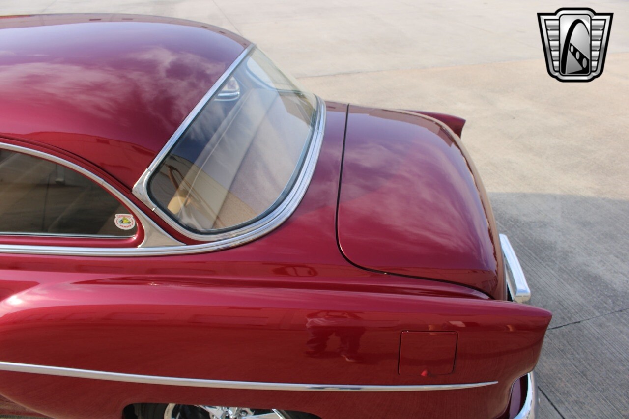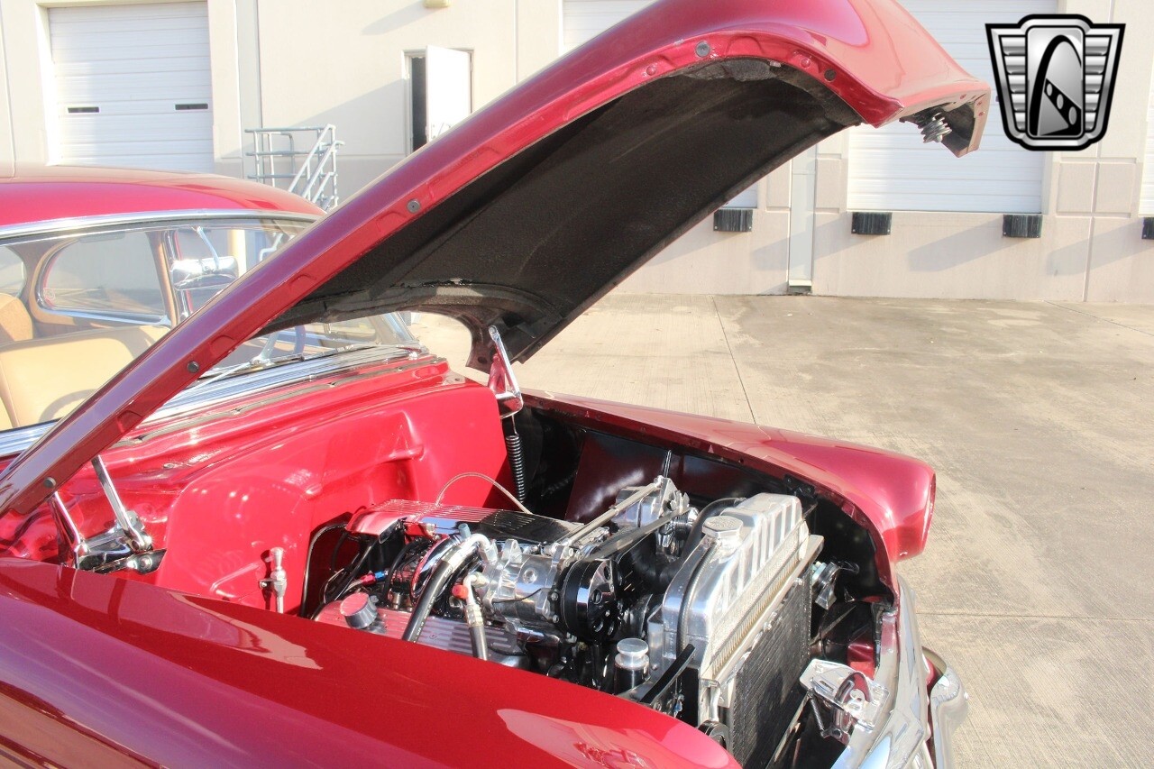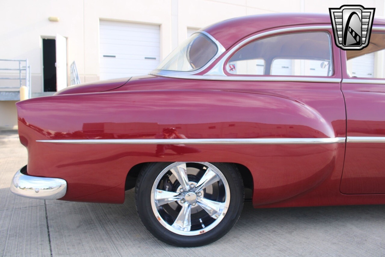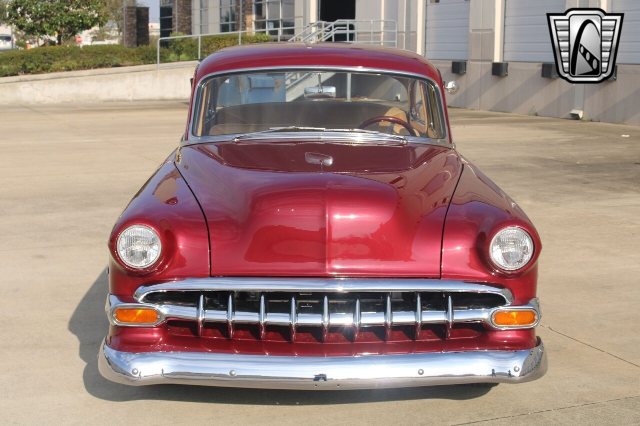 Gateway Classic Cars Houston Showroom is excited to offer this one of a kind custom 1954 Chevrolet 210 for sale. This sleek ride has many custom touches and packs quite a punch, too! The first thing one notices is the luxurious House of Kolors' 2-stage urethane "Kandy Burgundy" paint (code KBC06), which is just beautiful in bright light. It was applied after the headlights and taillights were frenched, blocking and decking the hood, shaving the firewall, door handles and trunk locks, and adding door & trunk poppers (with emergency backup release), and the intensive prep labor shows in the result! The chrome trim will blind you if the sun hits it just right, too! The build was done to order in 2007 in Michigan (builder unknown), and was enhanced by its current owner, who purchased it from its first "post-build" owner in 2015. Since purchasing it, both the front and rear suspension were replaced with upgraded components and powder coated. In the front, it now features a Mustang II steering rack, tubular upper control arms and Wilwood disc brakes with multi-piston calipers. Out back, it has an adjustable 4-link rear with polished QA1 coilovers, a 9-inch Ford third member (with 3.73:1 gears and limited slip diff), and Wilwood disc brakes with multi-piston calipers. Under the hood is a freshly upgraded GM ZZ4 Crate 350 CID V8, which has been bored .030", along with being fully balanced: so it's now a 355 CID V8. That mighty mouse is topped by a polished Street & Performance upper and lower intake, with Tuned Port Injection, which feeds the air/fuel mix into the ported and polished aluminum heads. A set of ceramic coated shorty headers funnel the exhaust into the Flowmaster muffler-equipped dual exhaust, which really provide for a nice, muscular sound. A massive polished BeCool aluminum radiator with twin electric fans keeps the small block cooled very effectively. Behind the 355 CID V8 is a fresh 700R4 4-speed automatic, which was built to handle up to 600 HP/600 TQ, so it's more than up to the task of getting the power to the rear via the custom-built driveshaft. Inside, the clean looking tan interior features vinyl-trimmed cloth bench seating for both front and rear passengers, with seatbelts for up to 4 occupants. The glove box is hiding a large LCD screen-equipped entertainment system, so you'll not have to worry about giving up your favorite cruisin' jams! The driver gets the pleasure of viewing a custom set of VDO gauges, through the wood-rimmed billet aluminum steering wheel atop the polished iDidit steering column. The VDO gauges provide a vintage look, but modern tech behind them. Everyone inside will enjoy the cold Vintage Air A/C system, as well. A Lokar shifter falls easily to hand for the driver, and not only looks cool, but provides easy gear selection. The interior chrome surfaces are just as bright as the exterior chrome, so you may need to wear your sunglasses at night, too. [ omitted ].