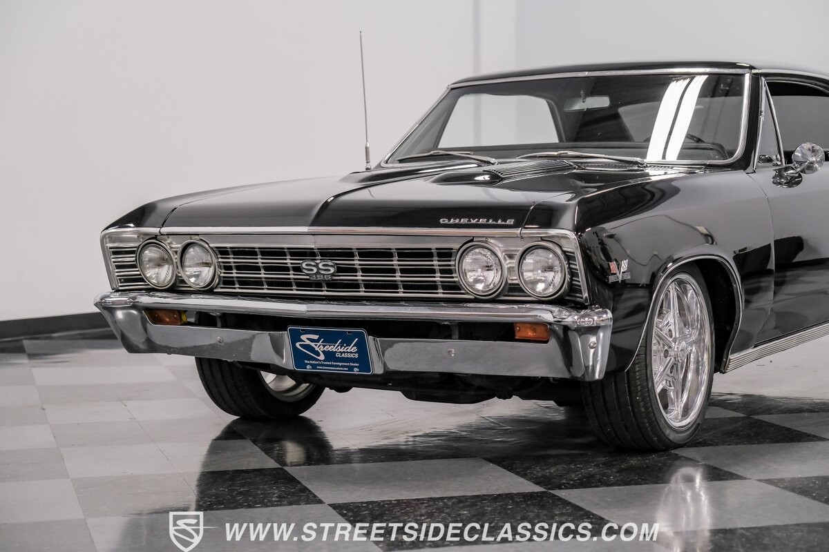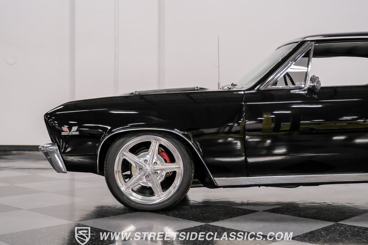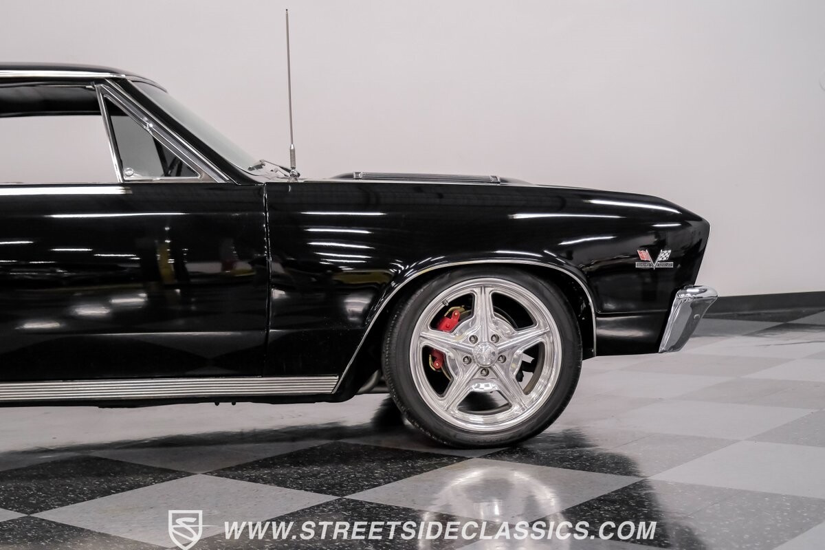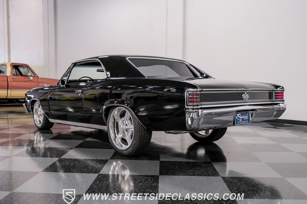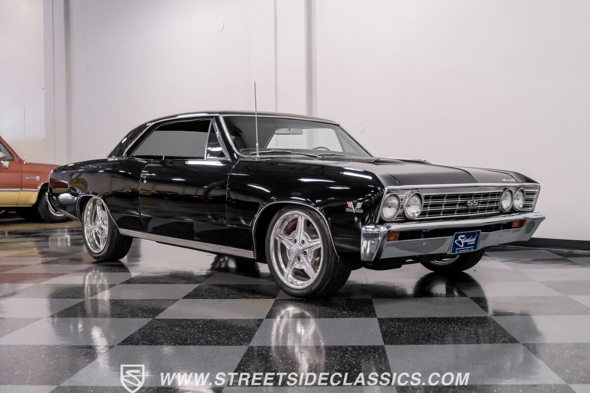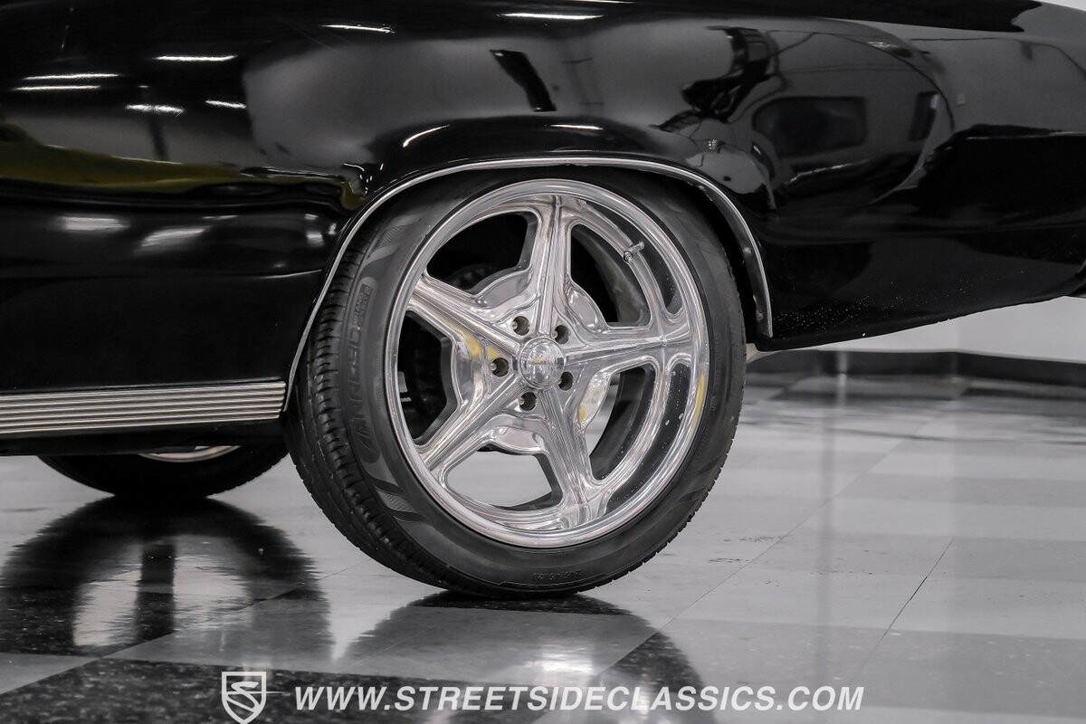 Draped in a glossy black coat, this 1967 Chevrolet Chevelle SS 396 is a true embodiment of American muscle. The chrome accents, like a perfect tie on a sharp suit, add just the right amount of flash to this classic beauty. Rolling on a set of 18" Billet Specialties wheels up front and 20" in the rear, this Chevelle has a stance that screams "I mean business." The lowered suspension gives it an aggressive, ready-to-pounce look that's sure to draw envious glances wherever it goes.