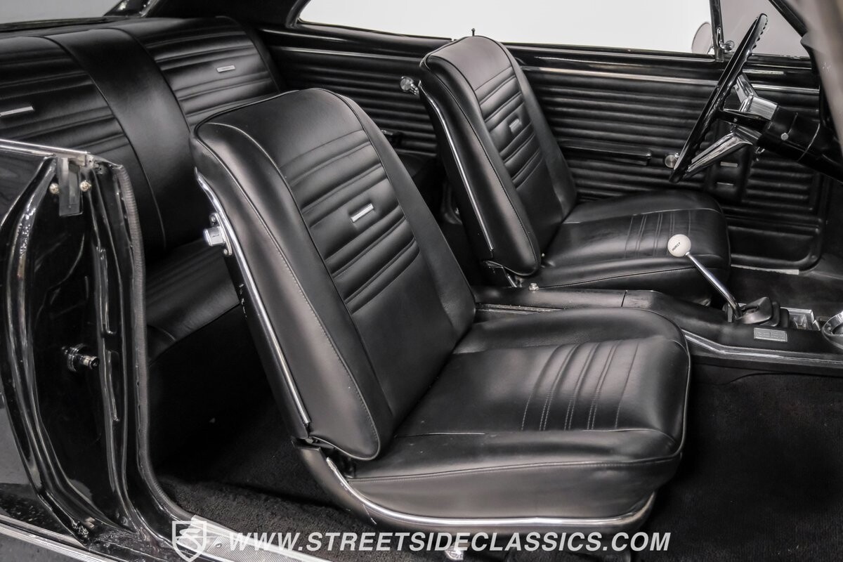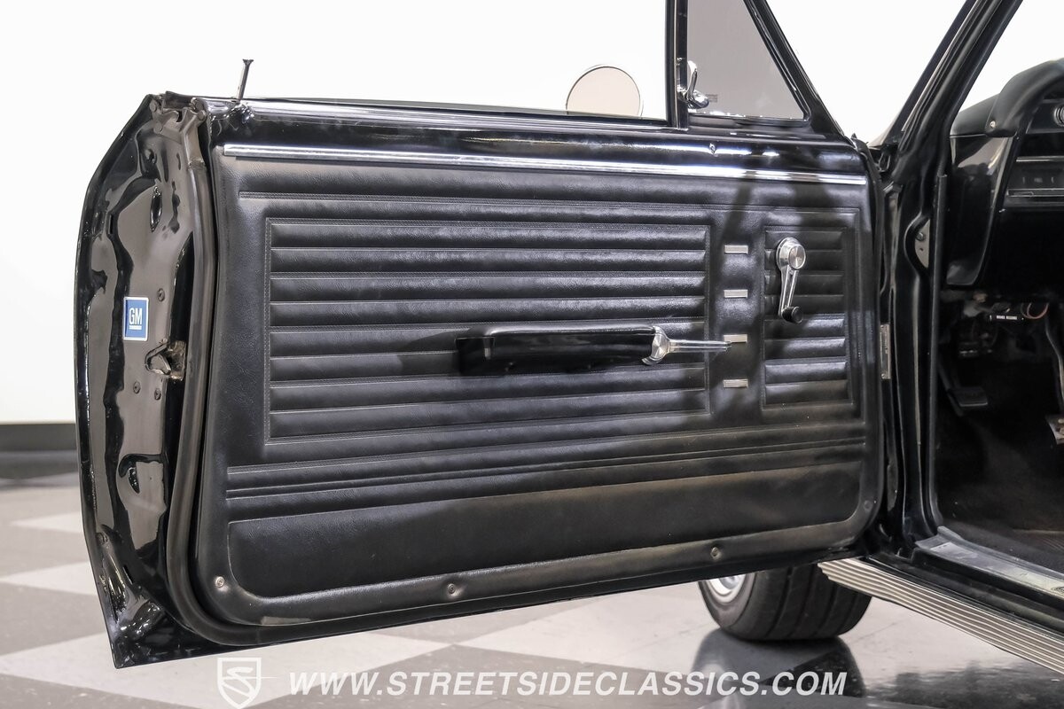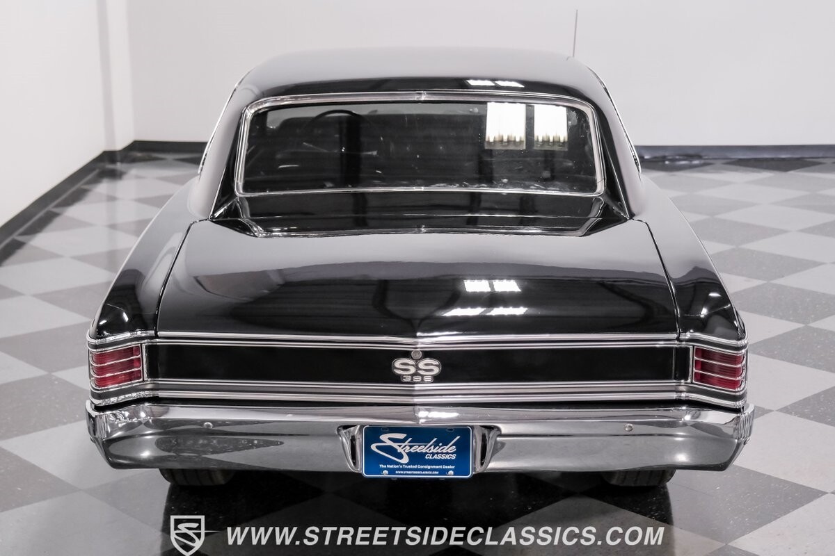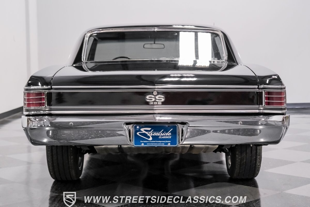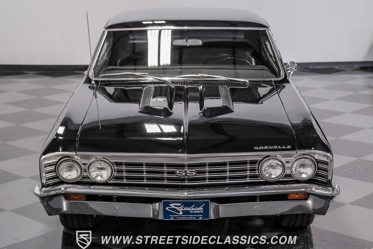 Draped in a glossy black coat, this 1967 Chevrolet Chevelle SS 396 is a true embodiment of American muscle. The chrome accents, like a perfect tie on a sharp suit, add just the right amount of flash to this classic beauty. Rolling on a set of 18" Billet Specialties wheels up front and 20" in the rear, this Chevelle has a stance that screams "I mean business." The lowered suspension gives it an aggressive, ready-to-pounce look that's sure to draw envious glances wherever it goes.