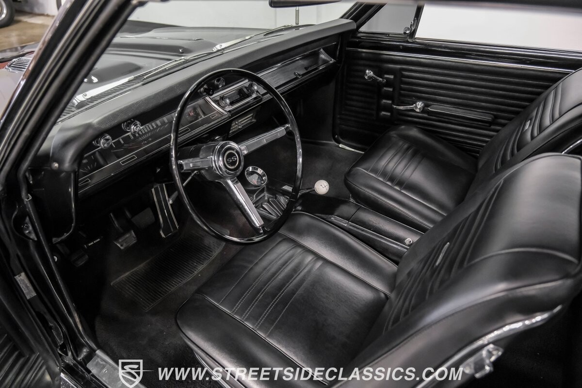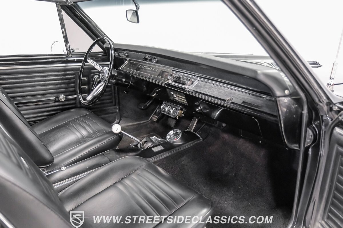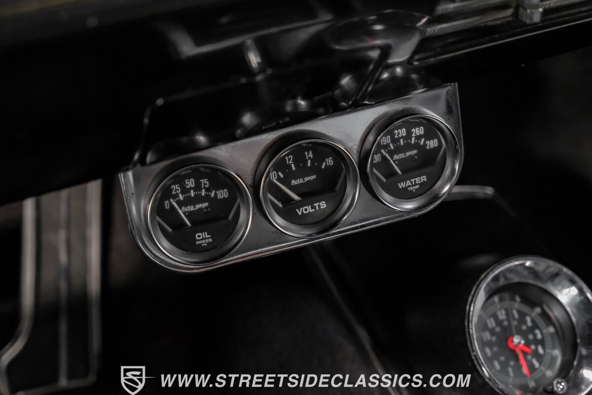 Inside, the black vinyl bucket seats with console invite you to settle in for a thrilling ride. The interior maintains the classic style that made the Chevelle an icon. The floor shifter puts the power at your fingertips, ready to unleash the beast within. The dash, with its array of gauges, keeps you informed of the car's vital signs as you cruise down the road.