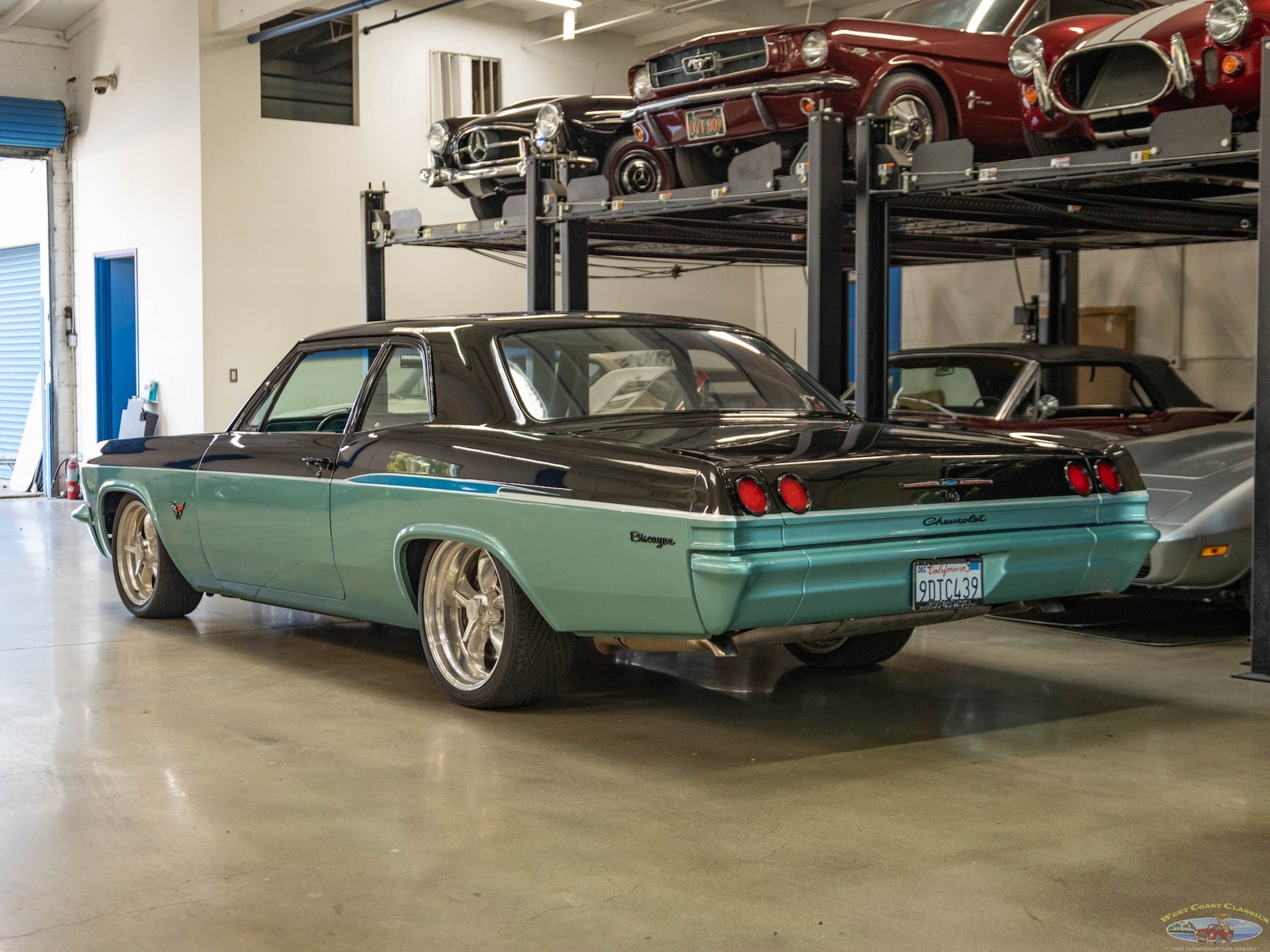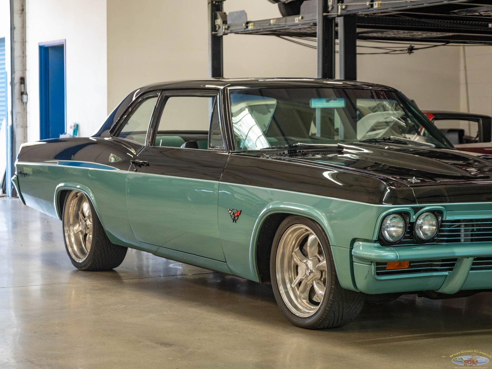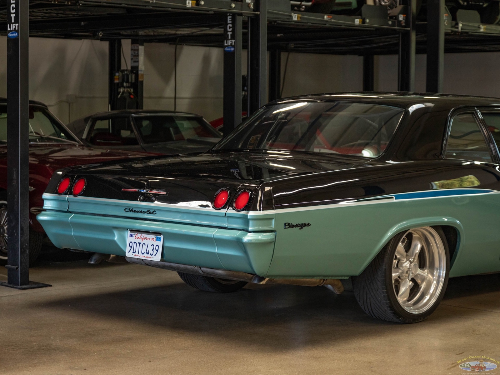 West Coast Classics are proud to present this 1965 Chevrolet Biscayne which is finished in a two-tone 'Turquoise over Black' custom paint color with a matching two-tone tweed and vinyl interior and formerly owned by NASCAR driver and Hall of Fame Inductee Dale Earnhardt Jr being offered for sale with a preserved title from Dale Earnhardt Jrs ownership and a copy of the July 2000 Super Chevrolet showcasing the vehicle on the cover. While owned by Dale Earnhardt Jr. this car was featured in a interview with renown American DJ/record producer and Ford Motor Company design customizer 'Funkmaster Flex' conducted with Earnhardt Jr's collection.
