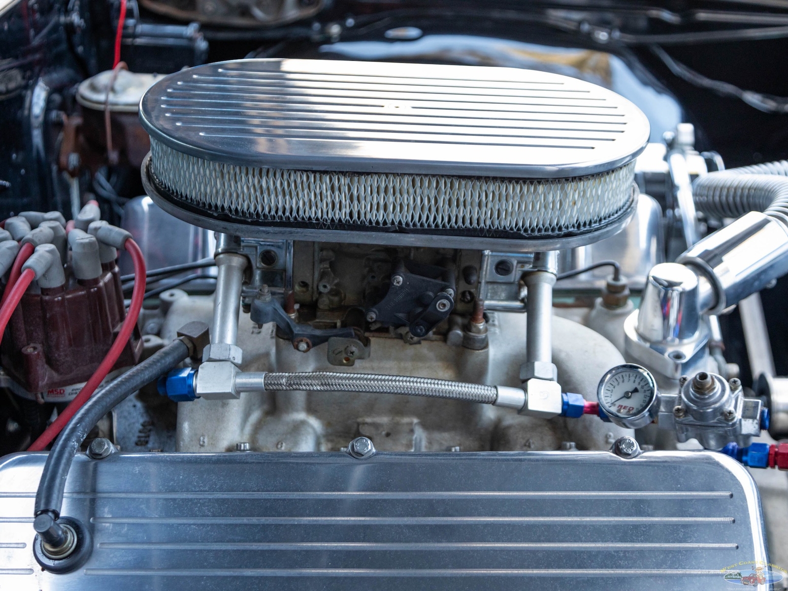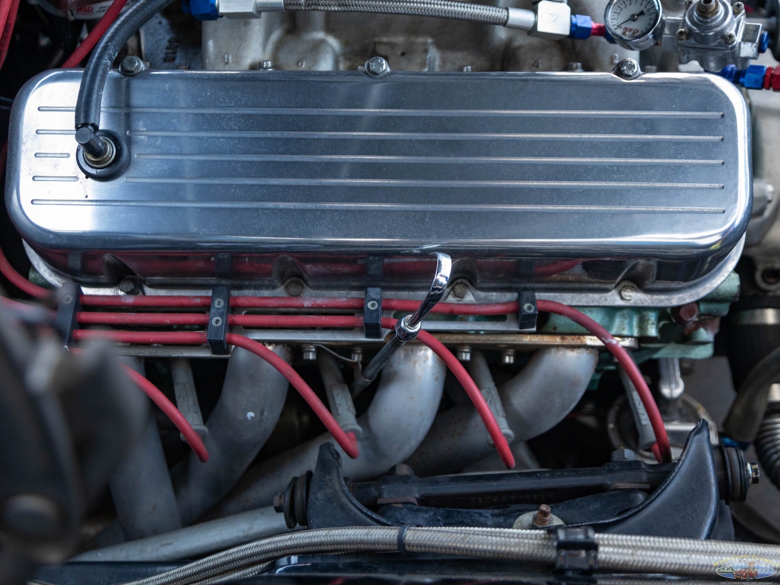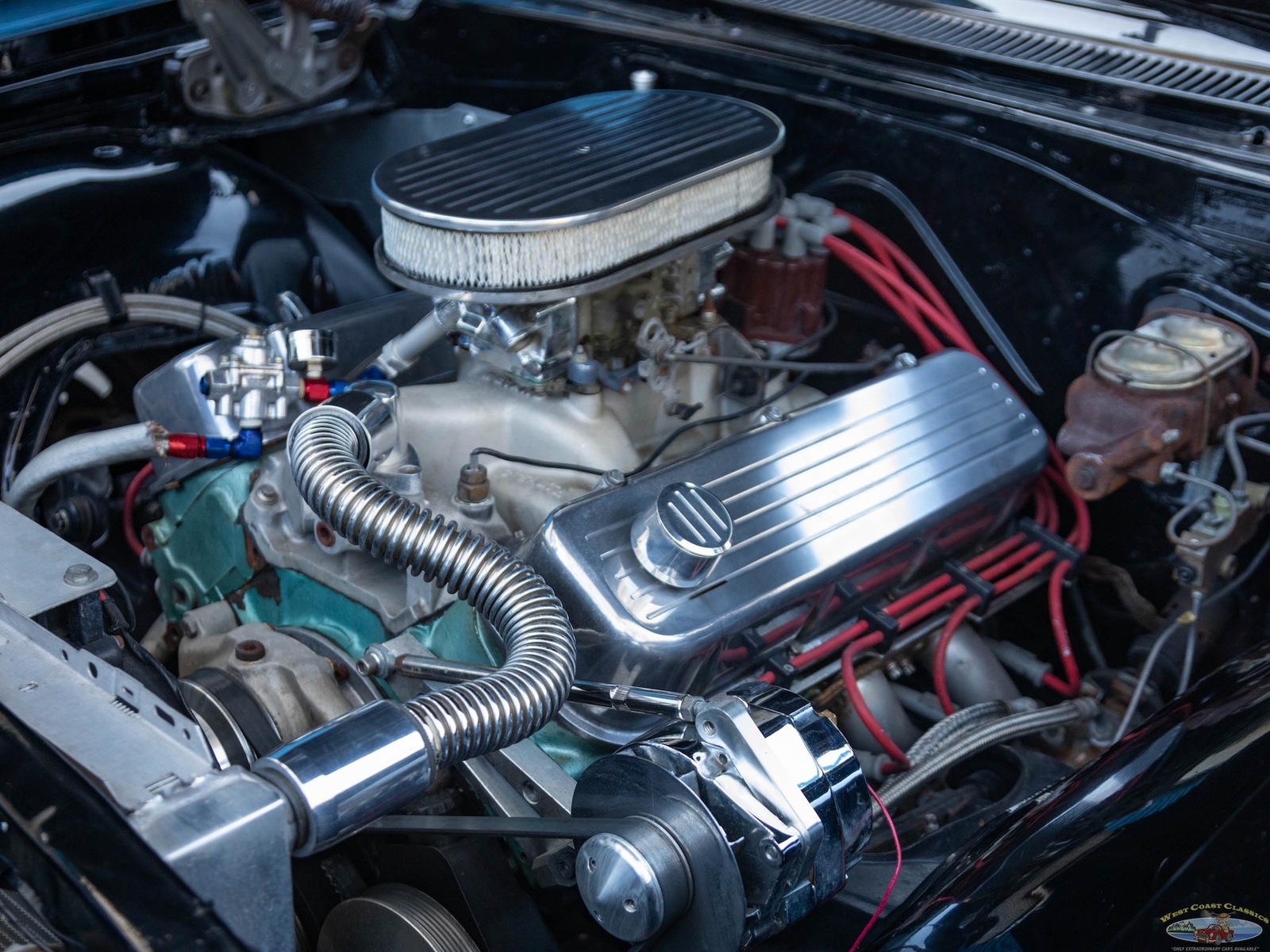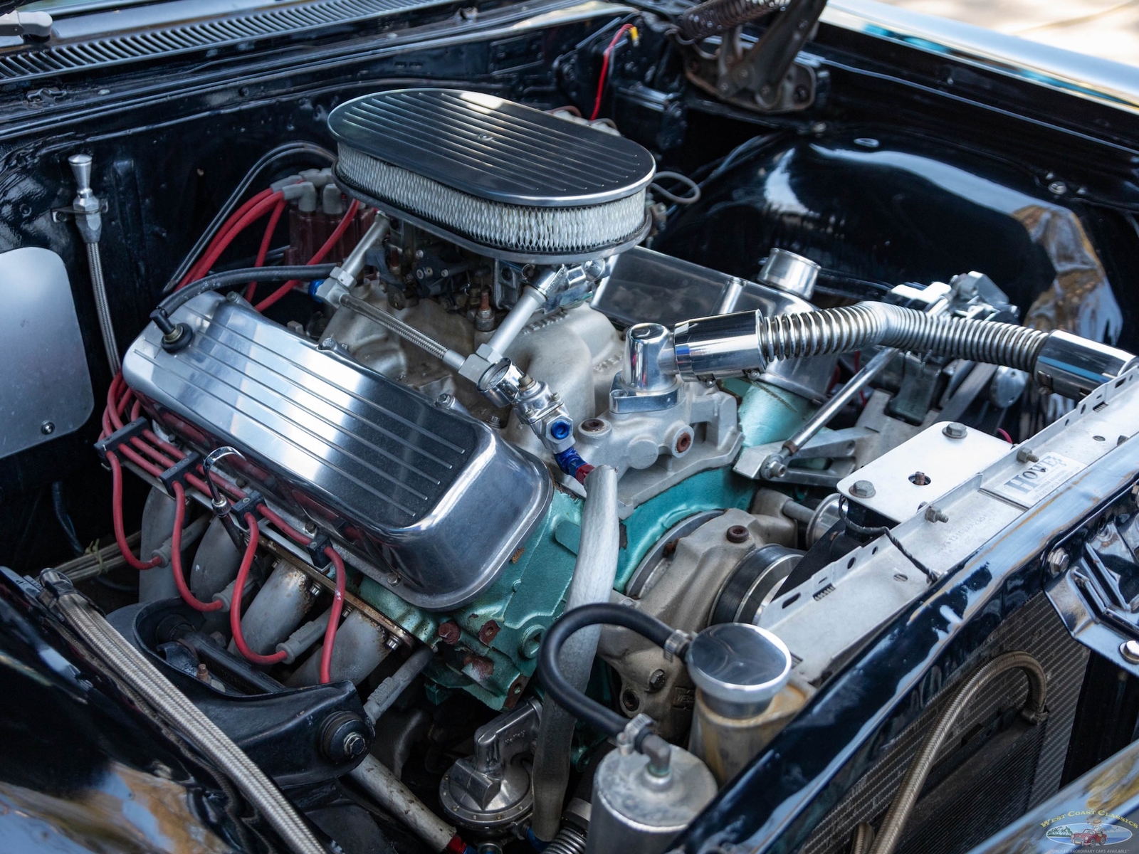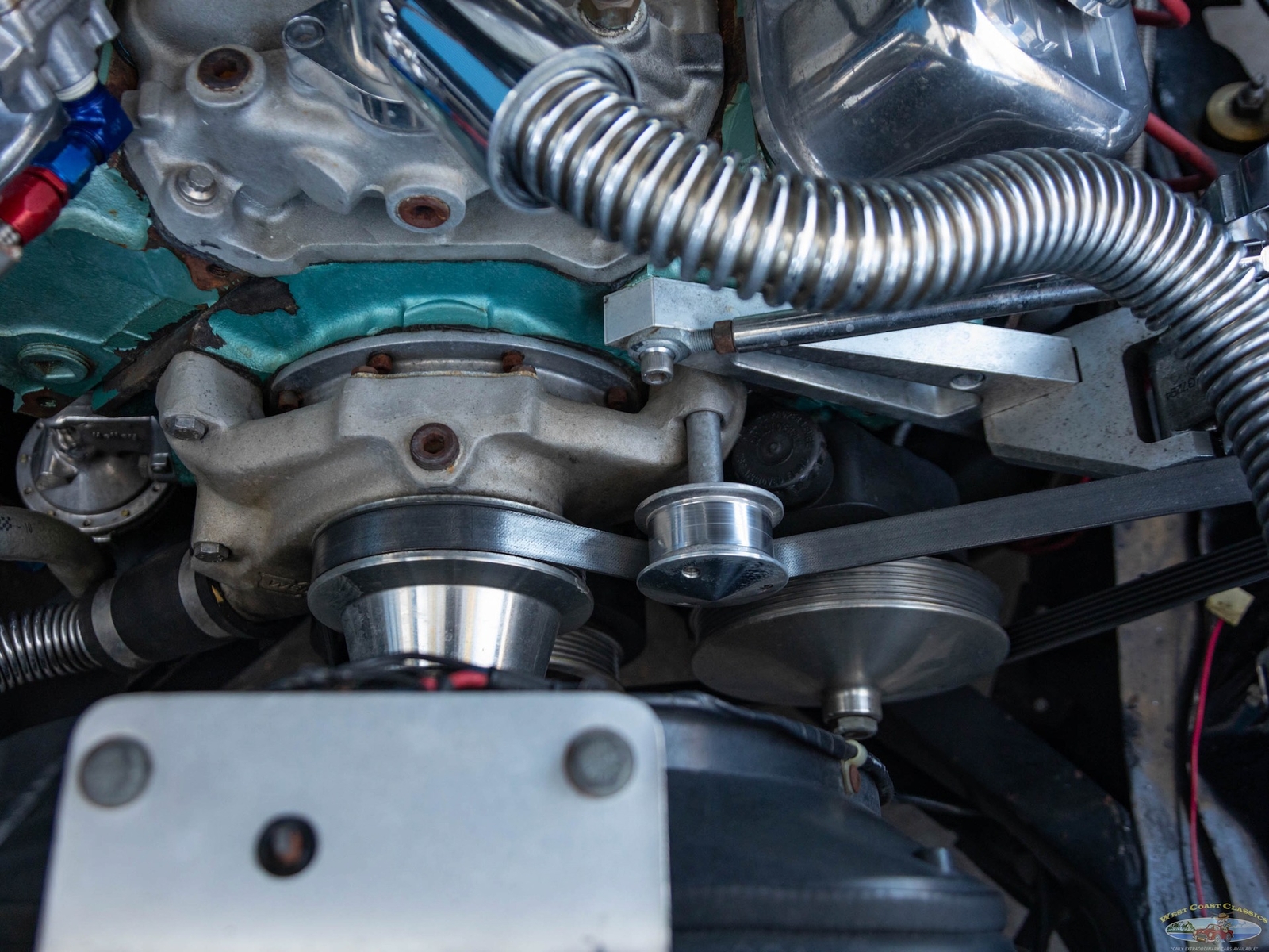 The Biscayne is powered by a 454ci Chevrolet V8 bored .060 over and equipped with Weiand Stealth high-rise intake manifold, Holley 650cfm carburetor, MSD ignition, and cast iron heads with roller rockers. Cooling is provided by a Howe Racing aluminum radiator with electric fans and the exhaust system features a set of Hooker competition headers with 3" stainless pipes and resonators. A billet aluminum air cleaner has been installed along with billet valve covers, transmission dipstick, and serpentine pulleys with chrome alternator. A 700R4 automatic overdrive transmission with shift kit and 3000rpm stall converter transfers the power to a 12-bolt rear with a 4.56:1 posi-traction differential. Recent service work includes an oil change and tune-up.