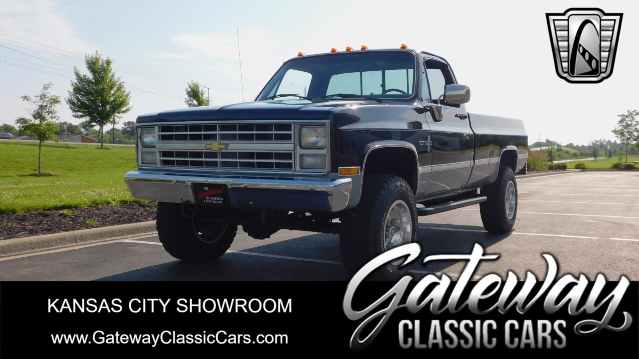 Introducing the 1985 Chevrolet K20 Scottsdale, a classic pickup that combines rugged capability with timeless style. This model boasts a striking black exterior that exudes a commanding presence on the road. Step inside to find a comfortable and stylish black and gray cloth interior, offering a welcoming cabin for both driver and passengers.