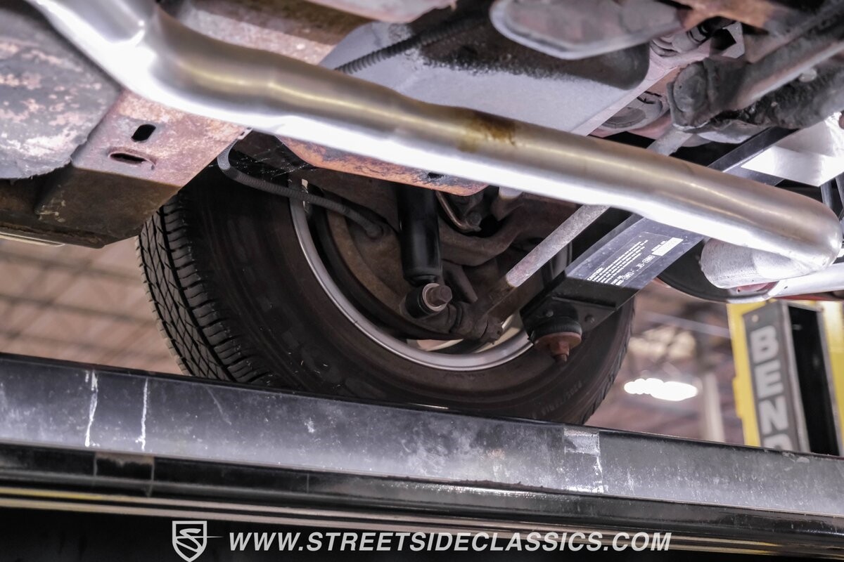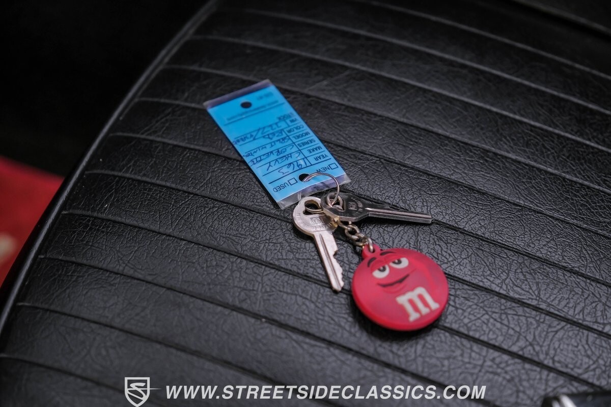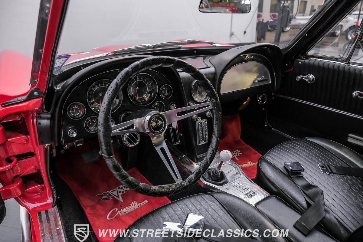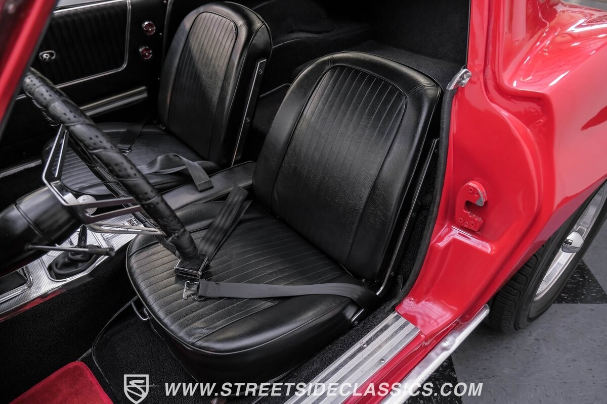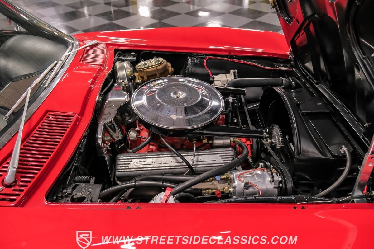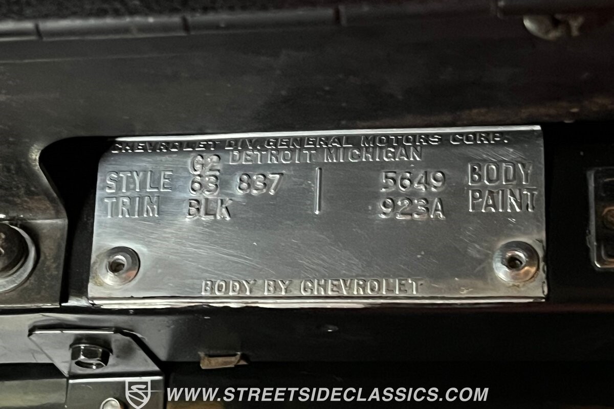 Inside, black vinyl upholstery captures classic Corvette spirit. Power windows, an uncommon luxury for the era, enhance the driving experience. The cockpit centers around sculpted bucket seats and a purposeful console. A Hurst shifter awaits action, while Classic Air A/C maintains comfort without compromising authenticity.