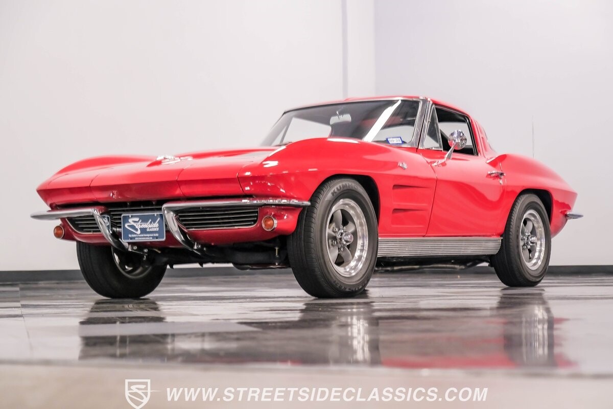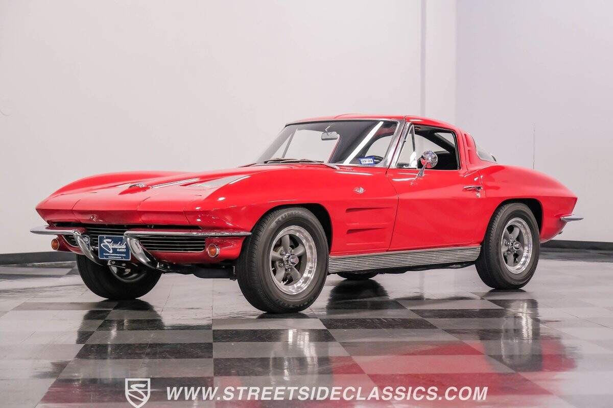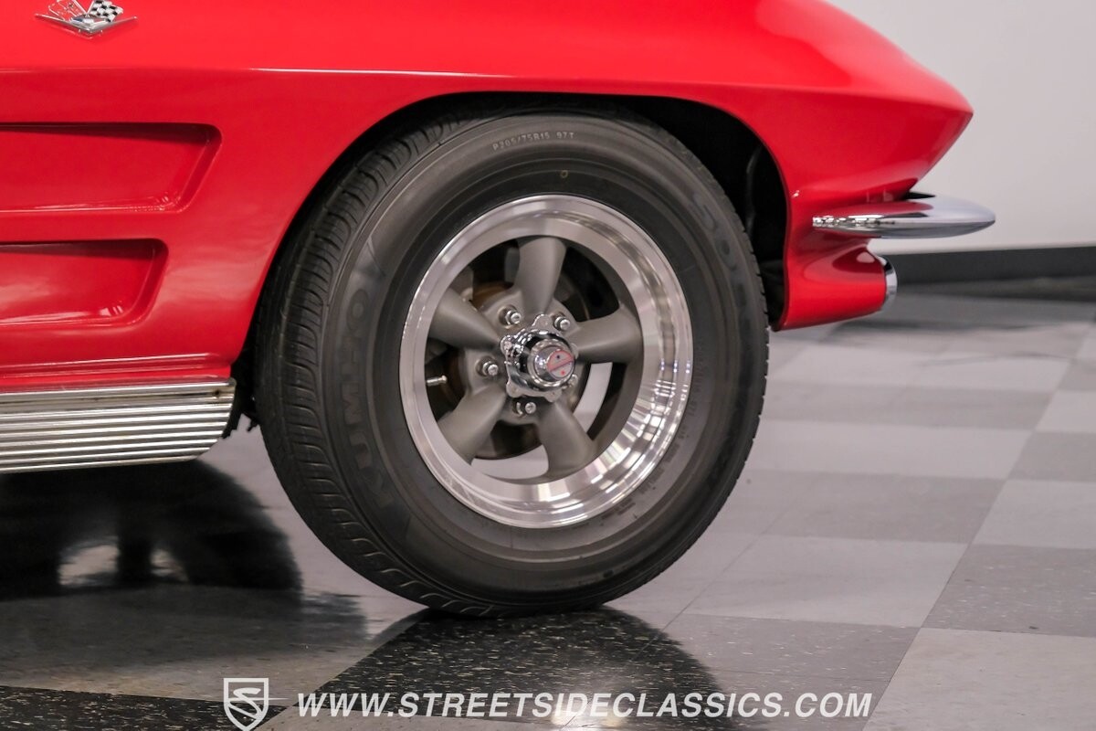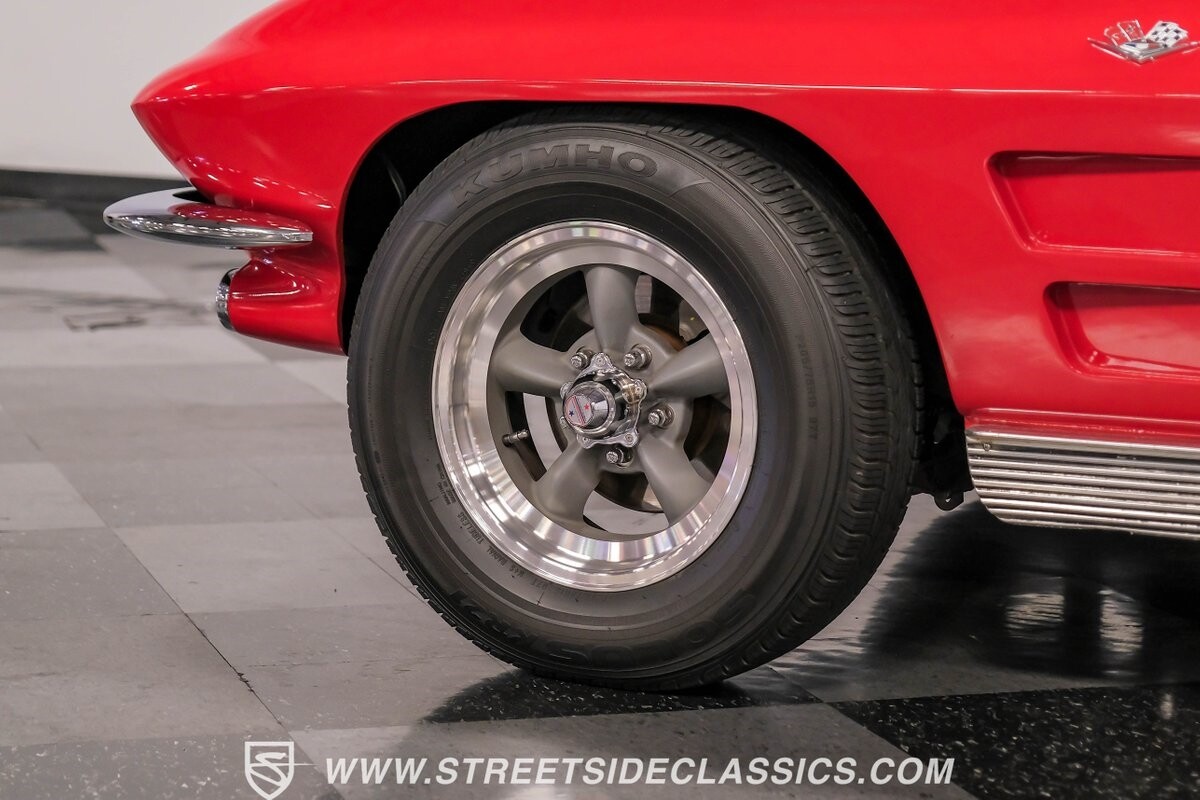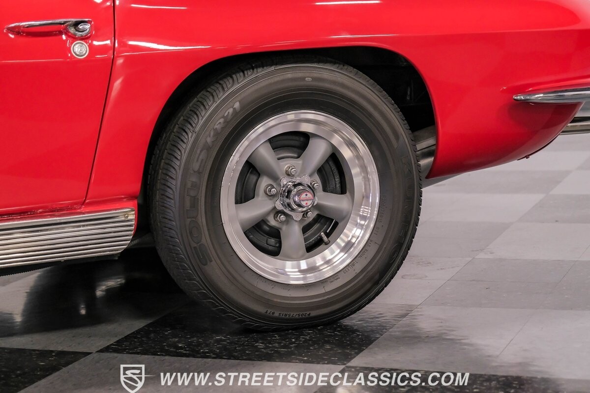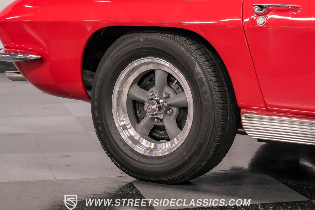 The 1963 Chevrolet Corvette Split-Window coupe exemplifies American automotive innovation. Draped in Riverside Red, this Sting Ray showcases the revolutionary aerodynamics that changed sports car design forever. The iconic split rear window, a single-year feature, defines its unforgettable profile. American Racing 15-inch wheels wrapped in 205/75R15 Kumho tires provide a performance-ready stance. Gleaming chrome accents complement the vivid paintwork, creating a bold visual impact.