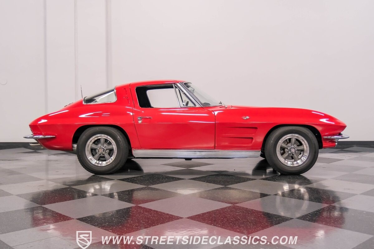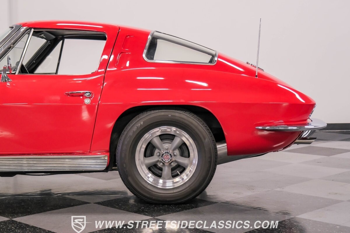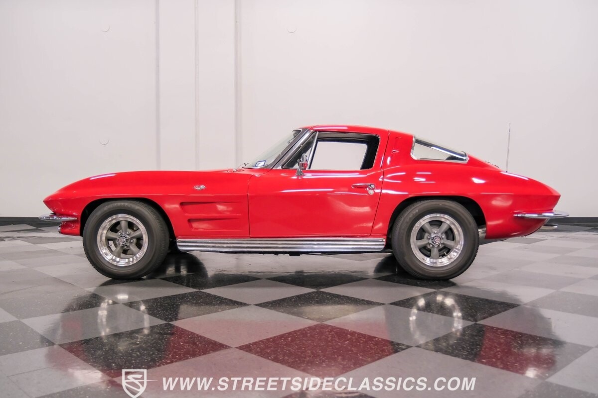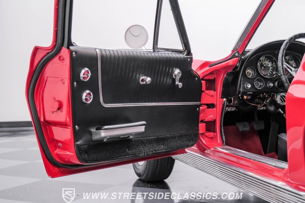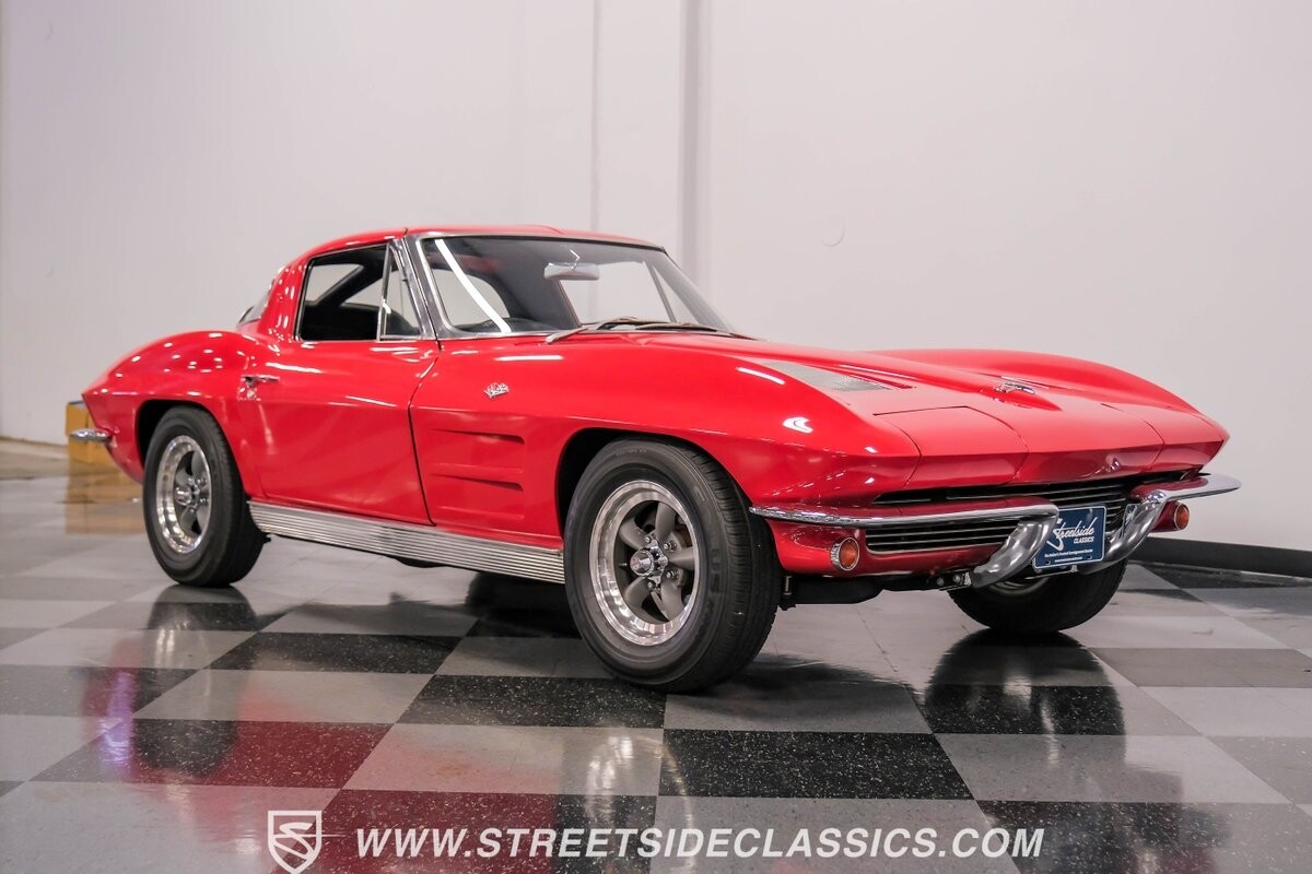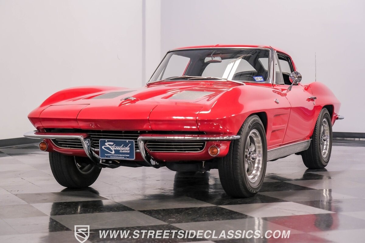 The 1963 Chevrolet Corvette Split-Window coupe exemplifies American automotive innovation. Draped in Riverside Red, this Sting Ray showcases the revolutionary aerodynamics that changed sports car design forever. The iconic split rear window, a single-year feature, defines its unforgettable profile. American Racing 15-inch wheels wrapped in 205/75R15 Kumho tires provide a performance-ready stance. Gleaming chrome accents complement the vivid paintwork, creating a bold visual impact.