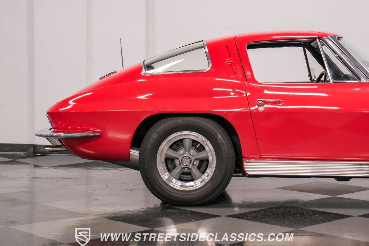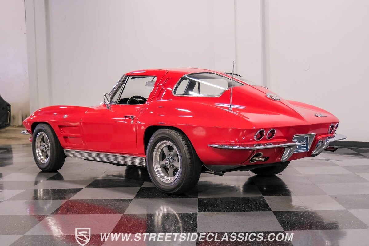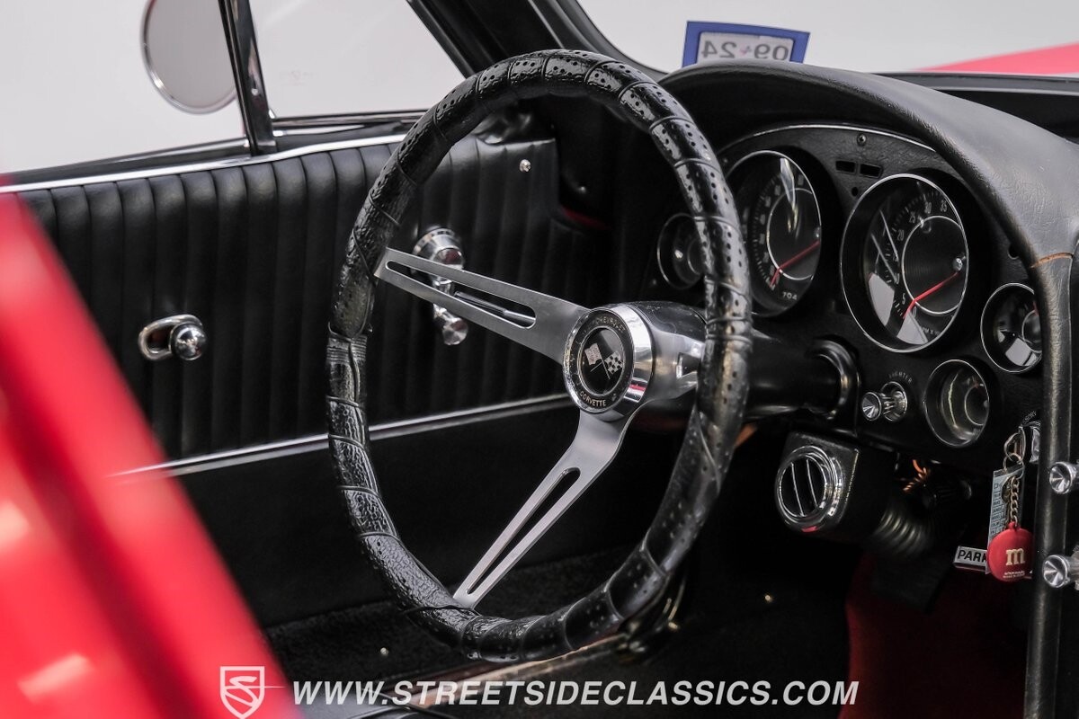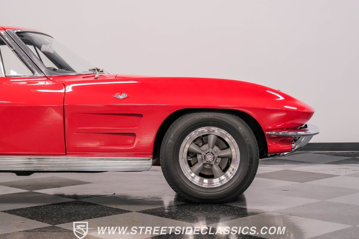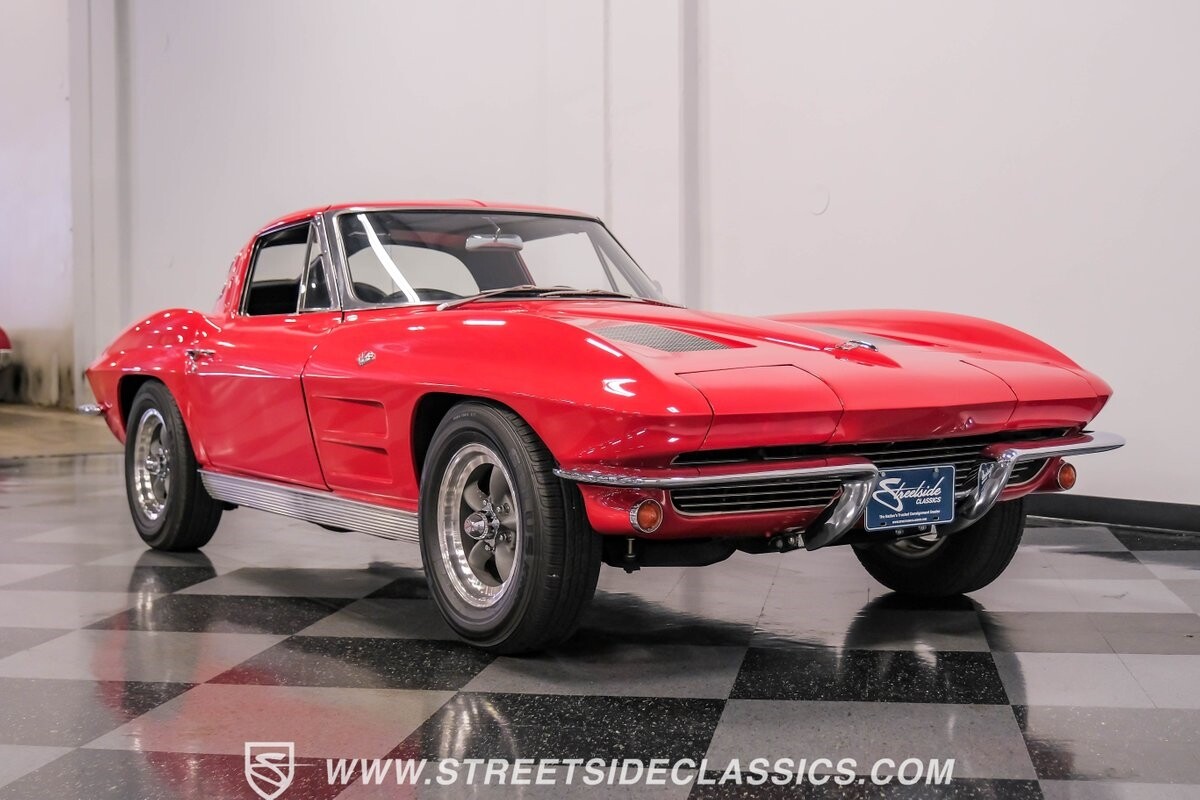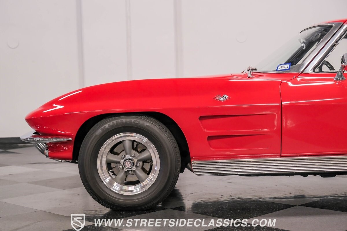 The 1963 Chevrolet Corvette Split-Window coupe exemplifies American automotive innovation. Draped in Riverside Red, this Sting Ray showcases the revolutionary aerodynamics that changed sports car design forever. The iconic split rear window, a single-year feature, defines its unforgettable profile. American Racing 15-inch wheels wrapped in 205/75R15 Kumho tires provide a performance-ready stance. Gleaming chrome accents complement the vivid paintwork, creating a bold visual impact.