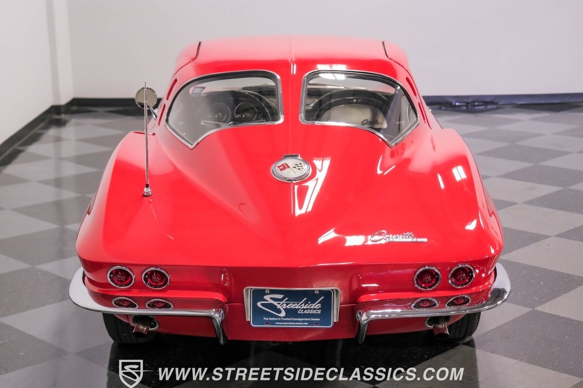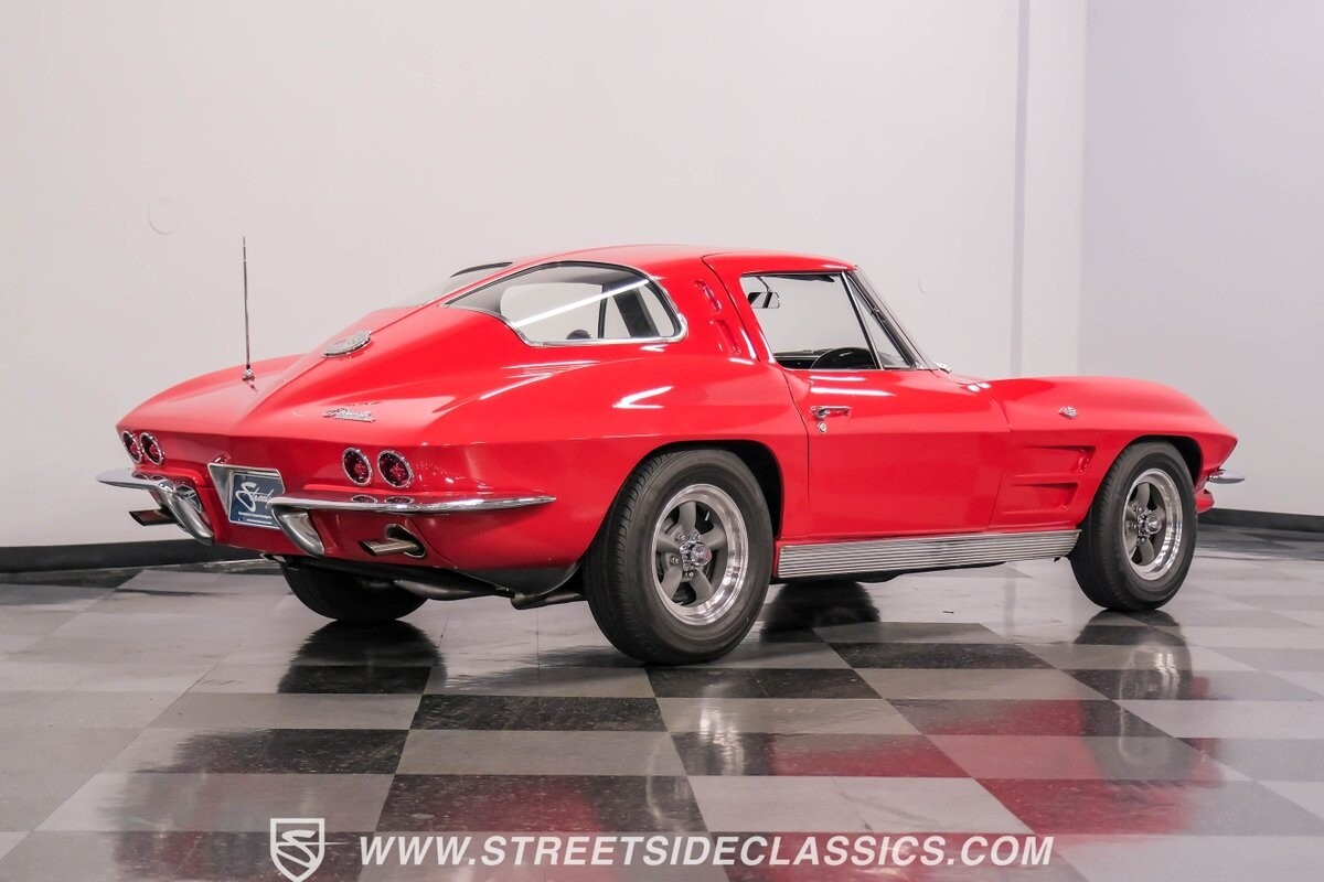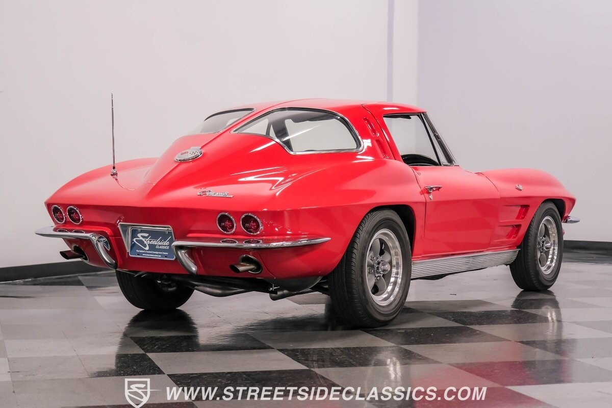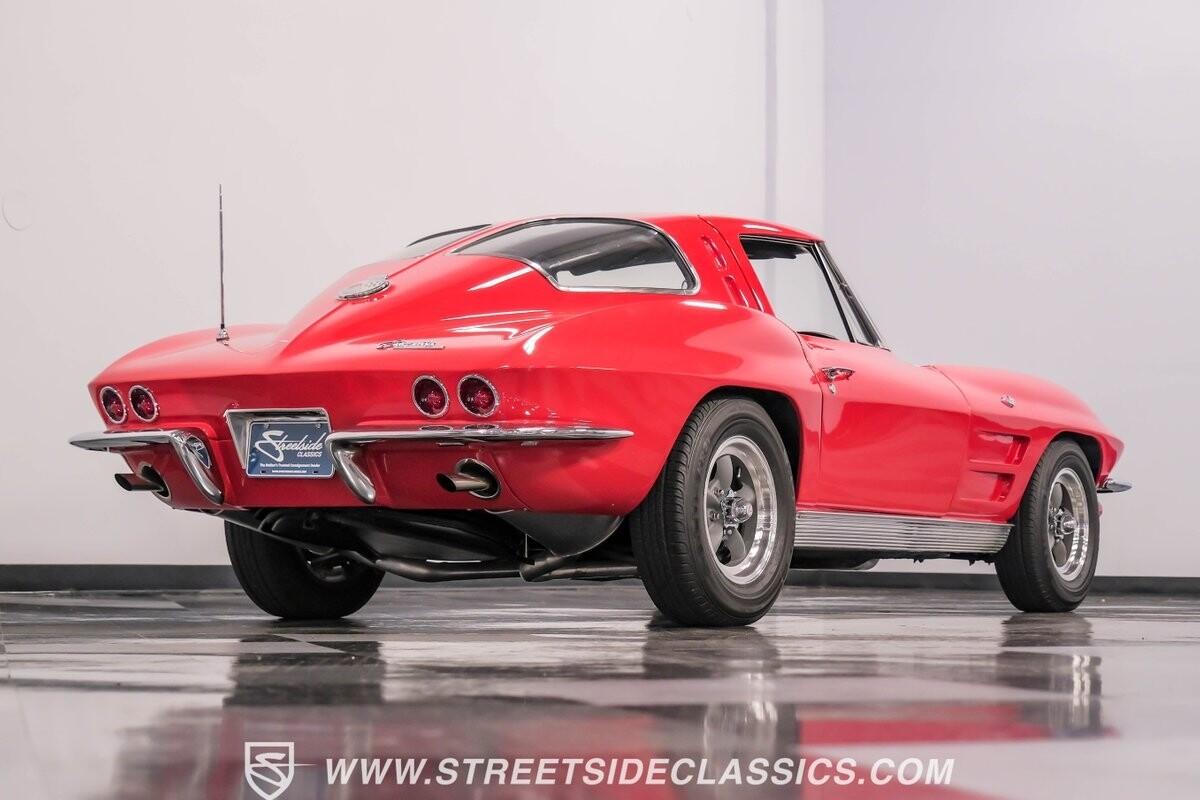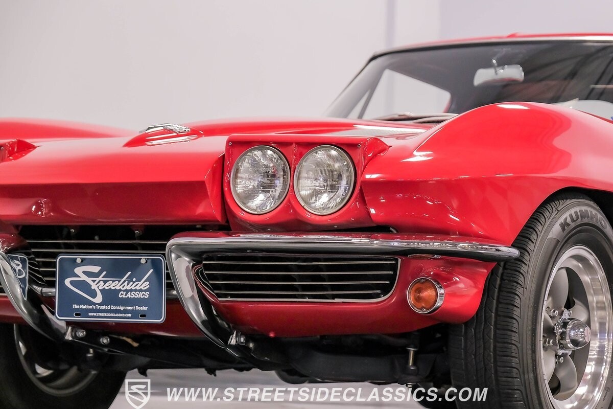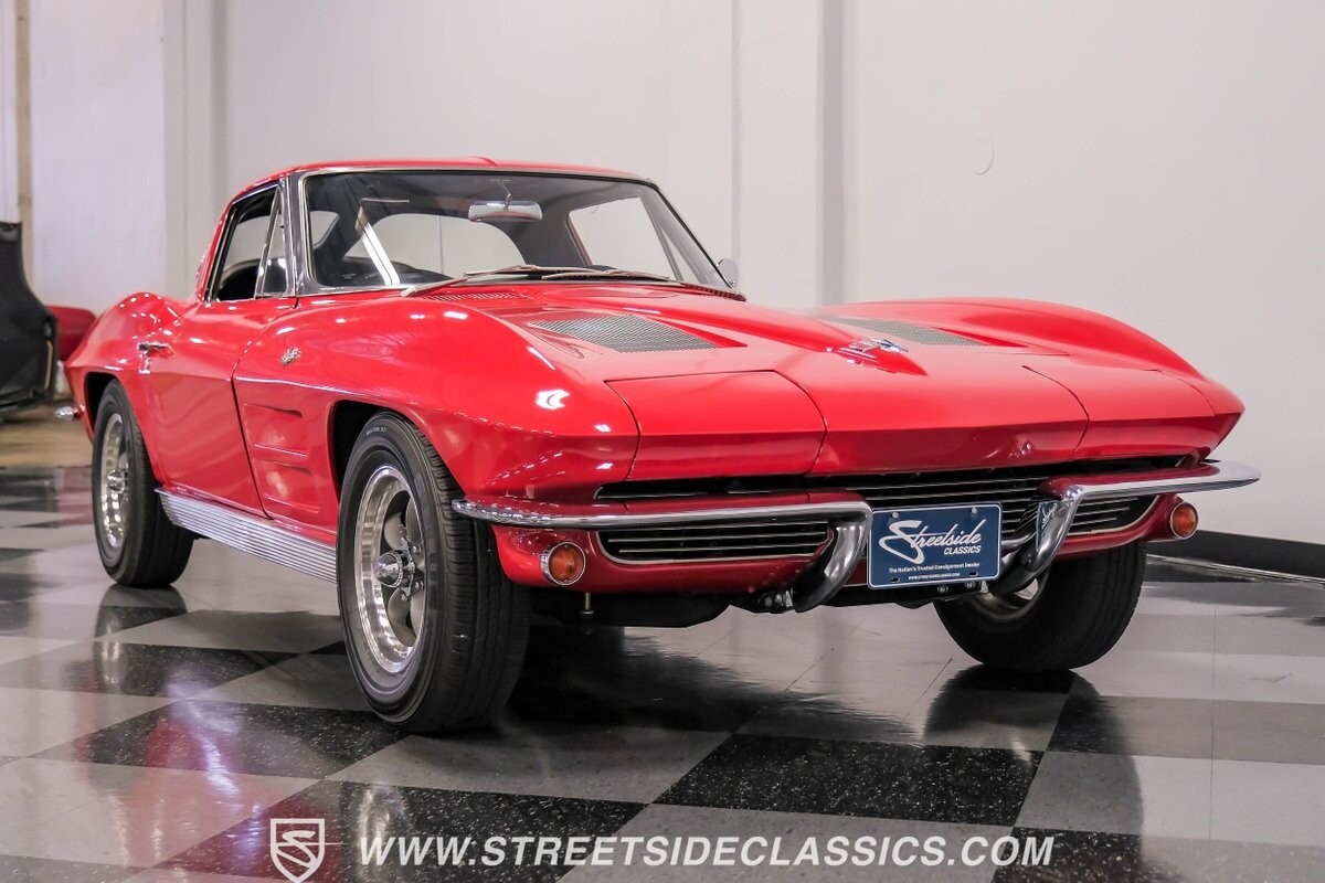 The 1963 Chevrolet Corvette Split-Window coupe exemplifies American automotive innovation. Draped in Riverside Red, this Sting Ray showcases the revolutionary aerodynamics that changed sports car design forever. The iconic split rear window, a single-year feature, defines its unforgettable profile. American Racing 15-inch wheels wrapped in 205/75R15 Kumho tires provide a performance-ready stance. Gleaming chrome accents complement the vivid paintwork, creating a bold visual impact.