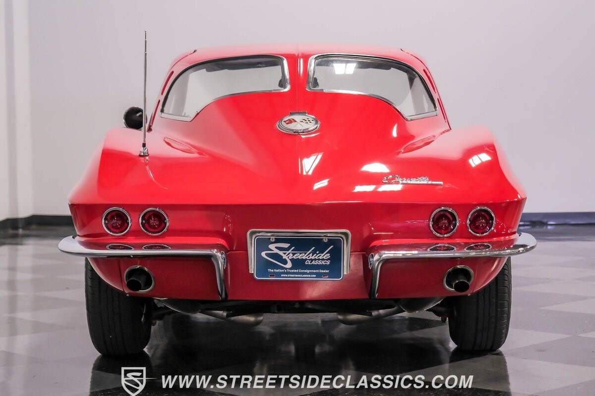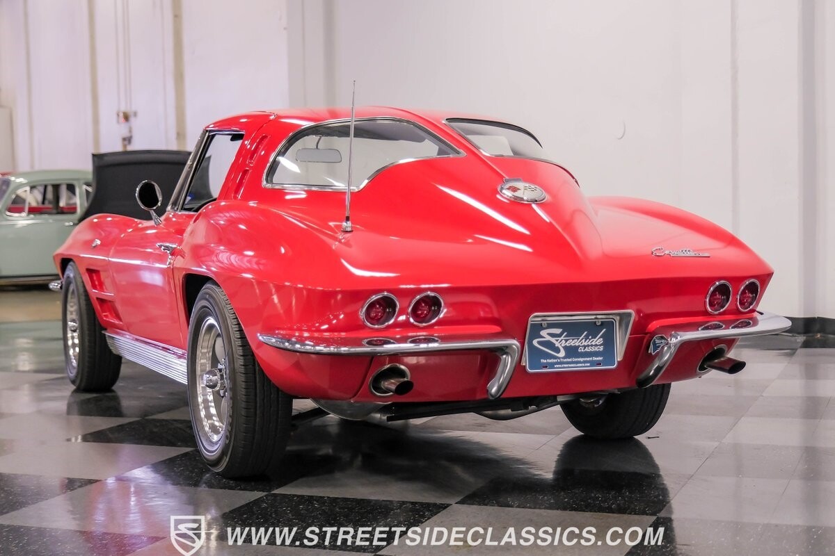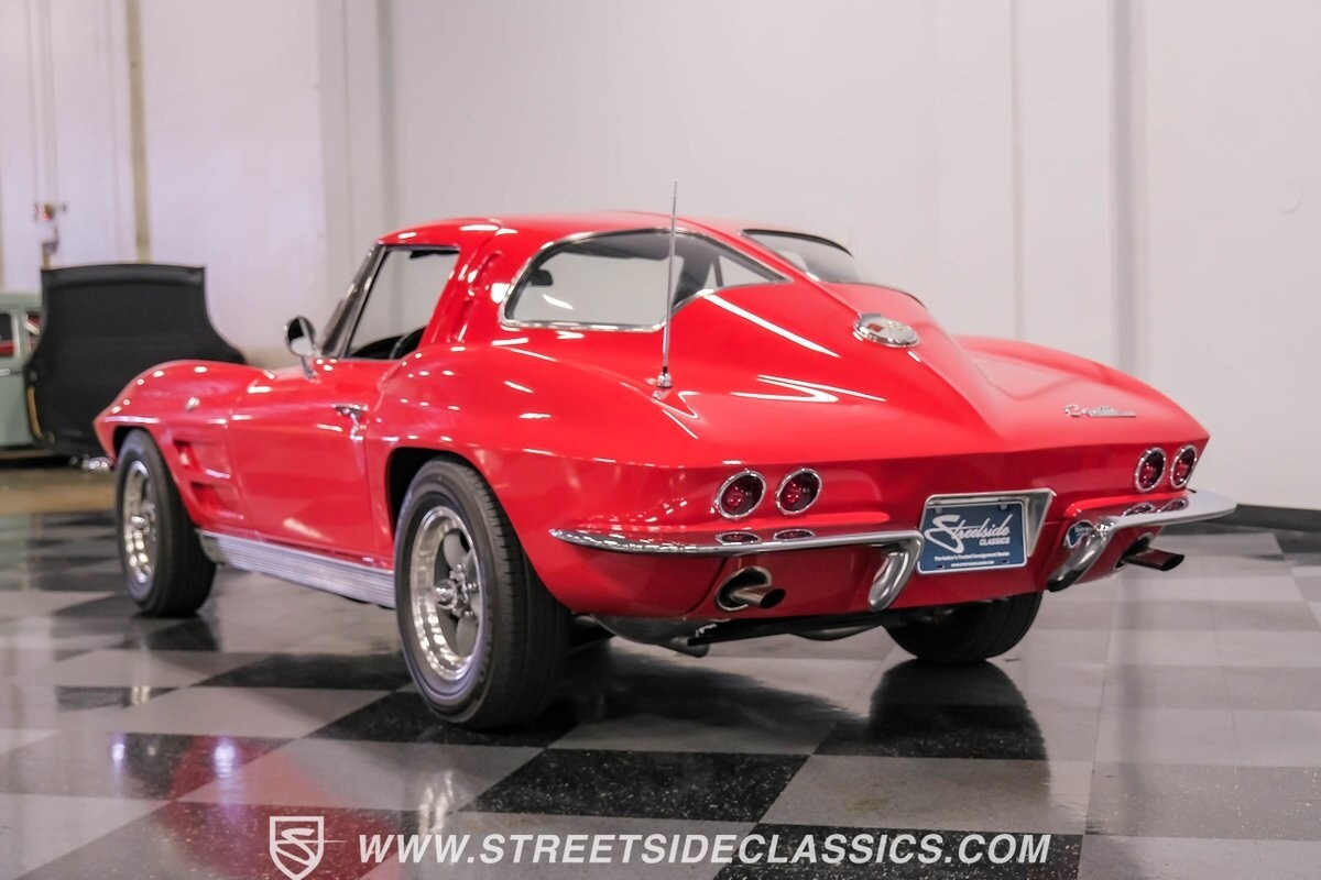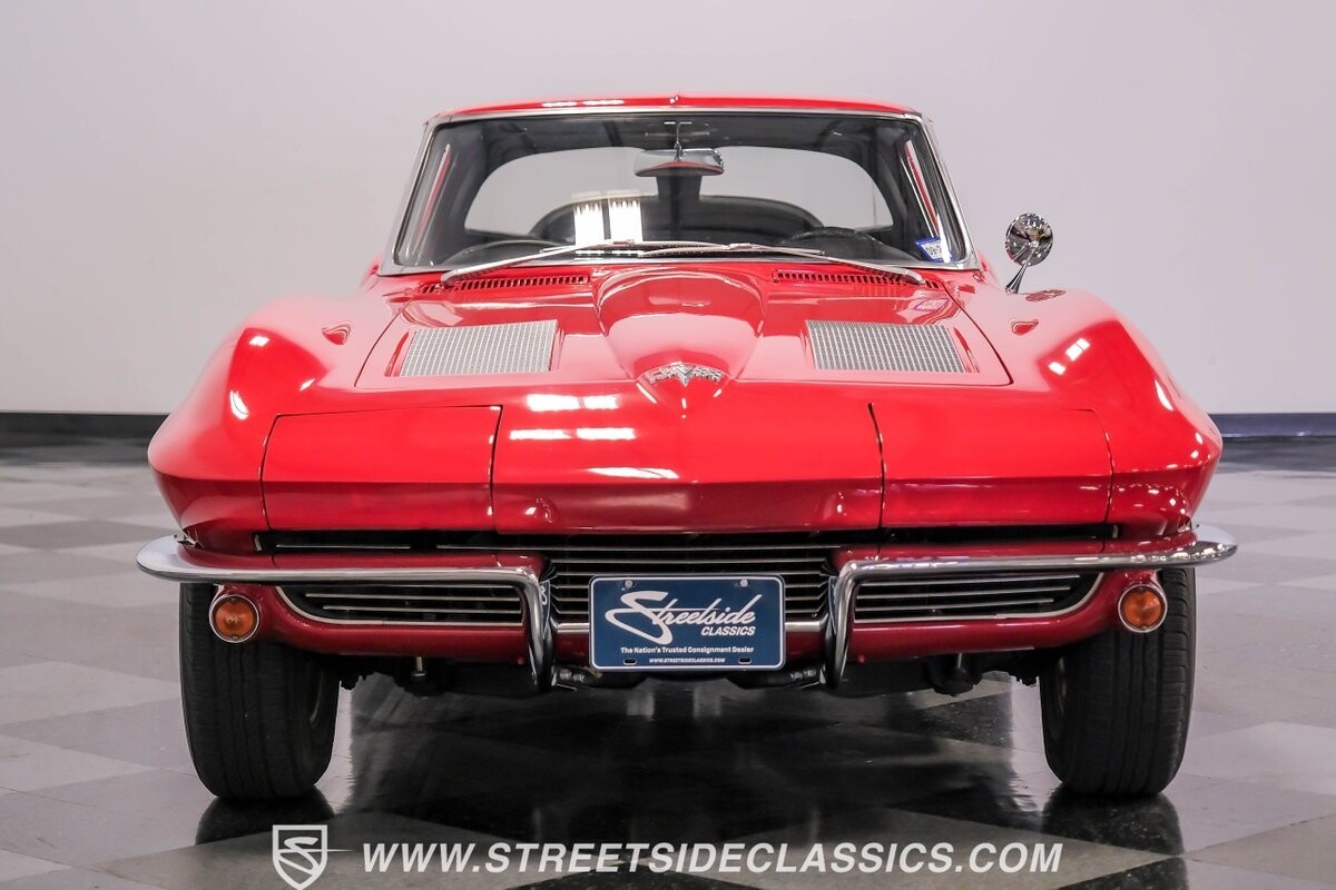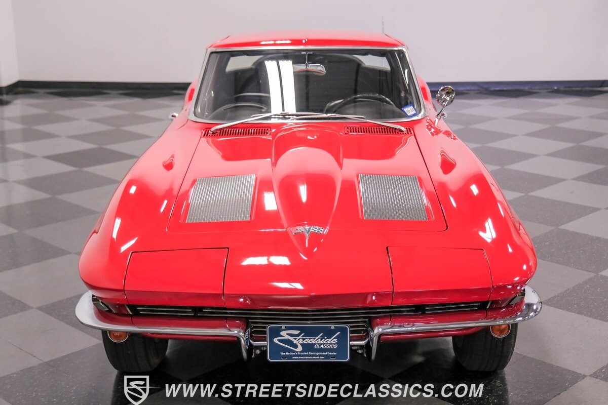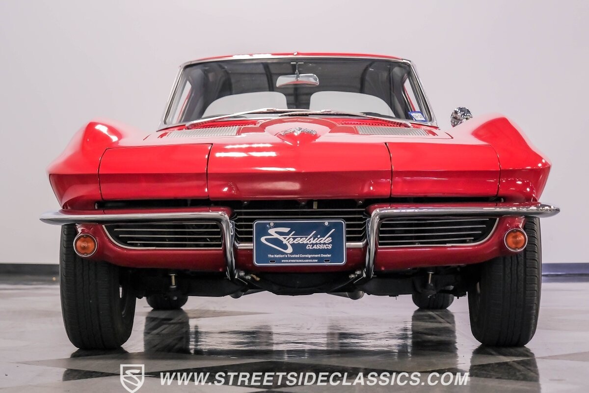 The 1963 Chevrolet Corvette Split-Window coupe exemplifies American automotive innovation. Draped in Riverside Red, this Sting Ray showcases the revolutionary aerodynamics that changed sports car design forever. The iconic split rear window, a single-year feature, defines its unforgettable profile. American Racing 15-inch wheels wrapped in 205/75R15 Kumho tires provide a performance-ready stance. Gleaming chrome accents complement the vivid paintwork, creating a bold visual impact.