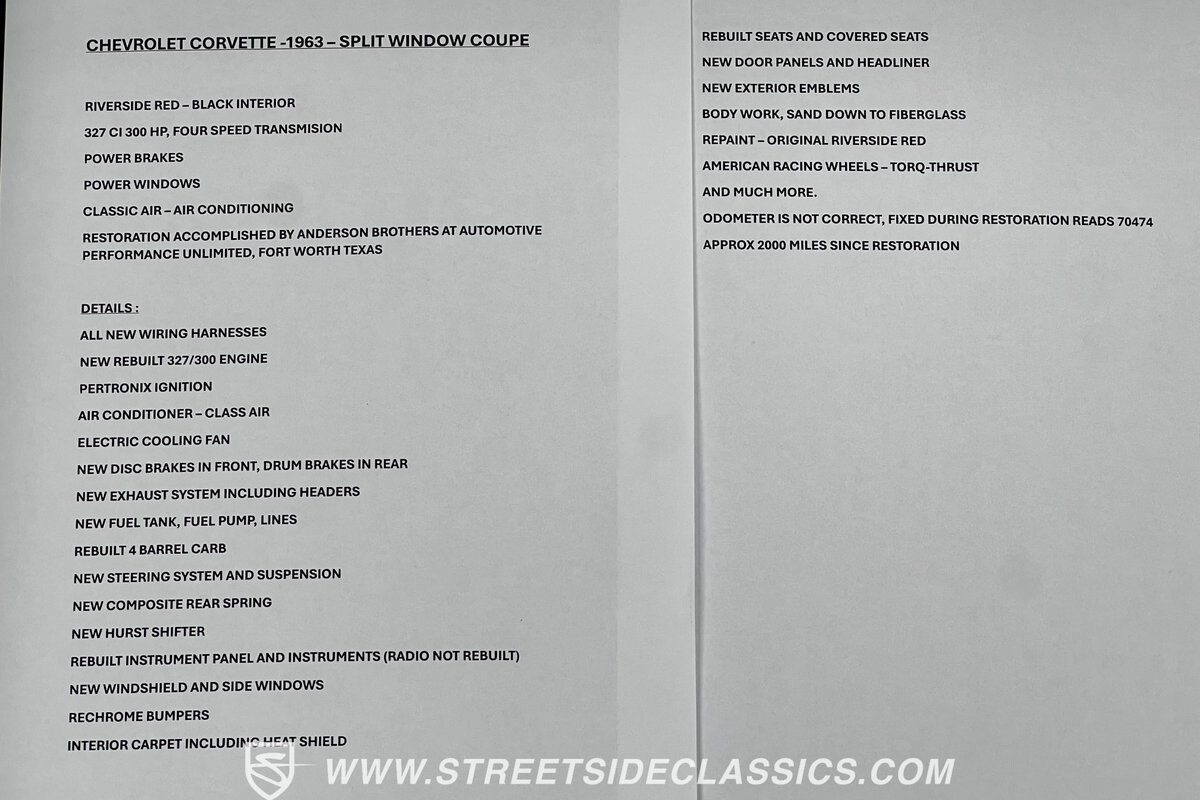 This 1963 Chevrolet Corvette Split-Window represents the pinnacle of American performance art. Its Riverside Red finish, thunderous V8, and driver-focused interior create an automotive experience that's pure excitement. Call today!