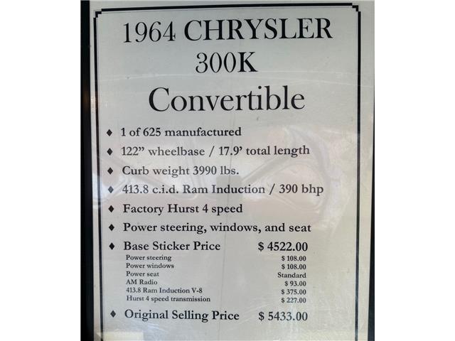 1964 Chrysler 300K Convertible- 413 CID- Dual Four Barrel Cross Ram Induct - 4sp