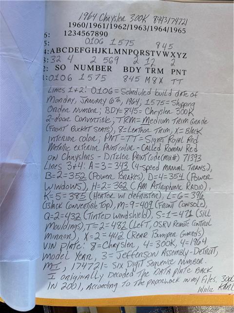 1964 Chrysler 300K Convertible- 413 CID- Dual Four Barrel Cross Ram Induction- 4 Speed (1 0f 87 300K Convertibles built, and 1 of [?] 4-speeds)