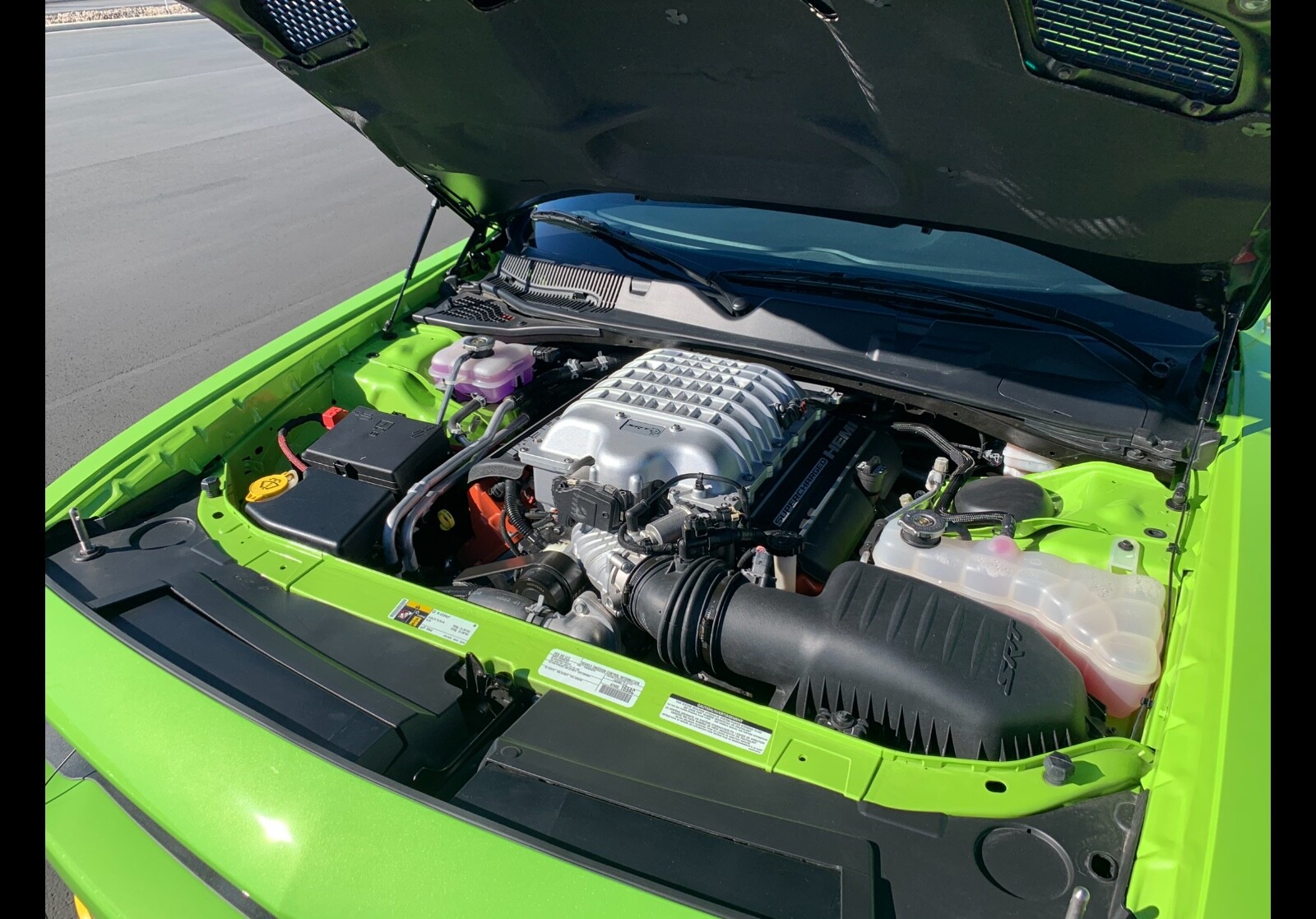 2015 dodge Challenger SRT hellcat automatic sublime green. This car has been stored in a climate control garage since the day it was new only used for occasional drives in the summer months. I have all the original paperwork for the car, including the floor mats still in the trunk in the original bag original seat covers hang tags books manuals.All the other documents to go with the car. The car is located South Dakota. I am not interested in trades or listing the car with brokers. I am the owner of the car payment by wire transfer preferred method of payment. Please feel free to contact me with any questions. Phone conversation would be much quicker and much easier to answer any at all questions you may have. I am happy to assist with shipping, but I am unable to lineup a shipping company for you. This is a private sale. Not a dealer. There is also an escrow company located in my town if you need to use one. Car is as new. No pets, no food and no smoking. The AAR Stripes are professionally applied and are removable.
